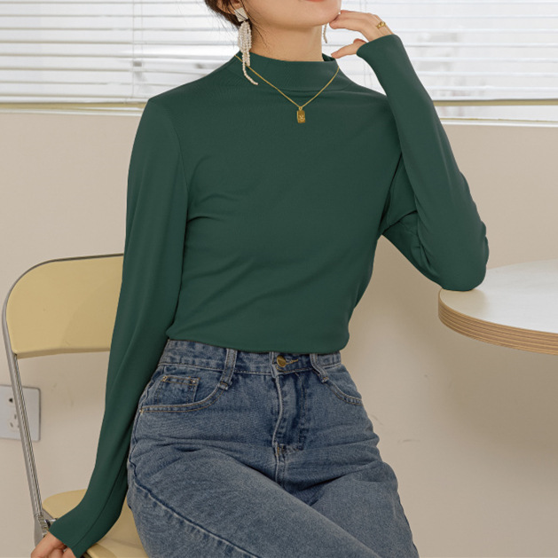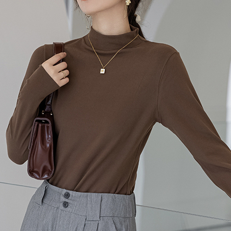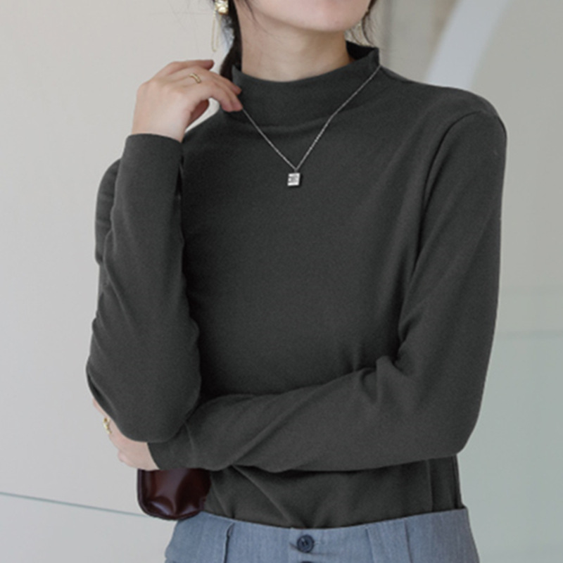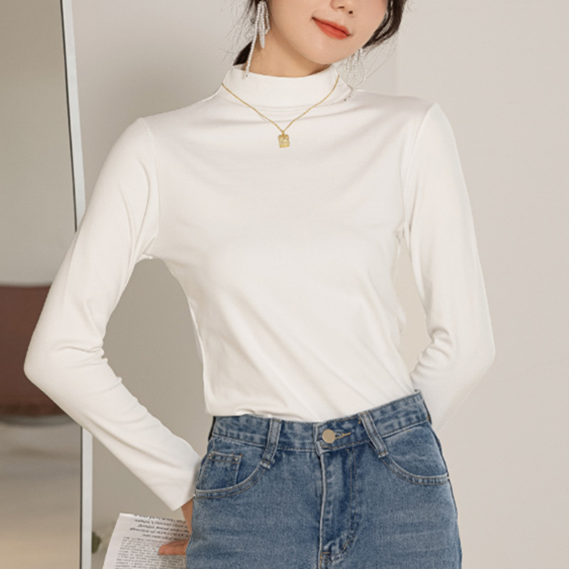 여자 높은 칼라 양면 벨벳베이스 셔츠 가을과 겨울 기모 두꺼운 내부 브러시 반 하이 칼라 따뜻한 탑스토어 가기