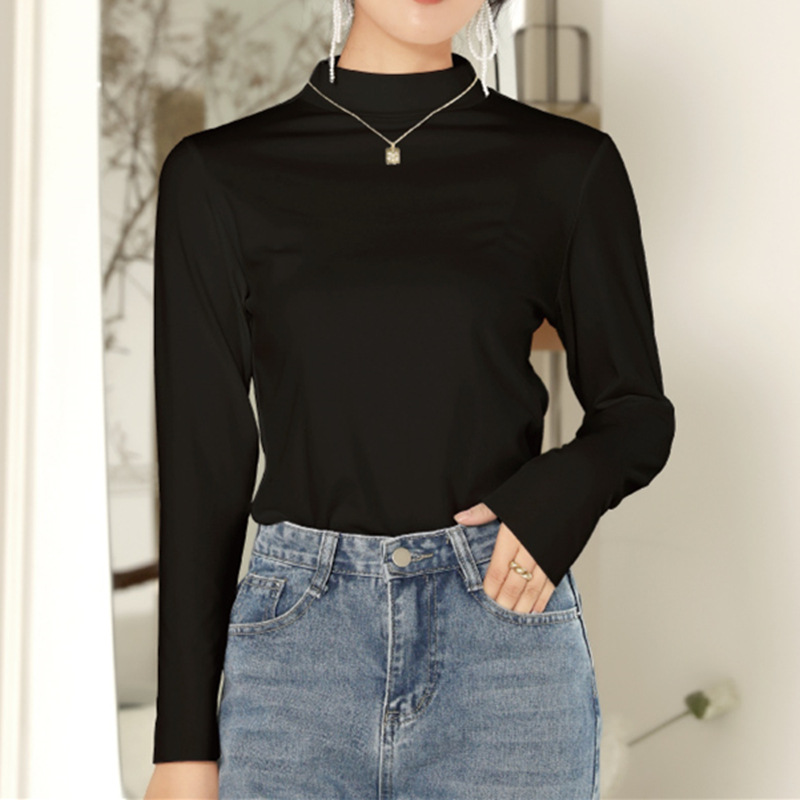 여자 높은 칼라 양면 벨벳베이스 셔츠 가을과 겨울 기모 두꺼운 내부 브러시 반 하이 칼라 따뜻한 탑