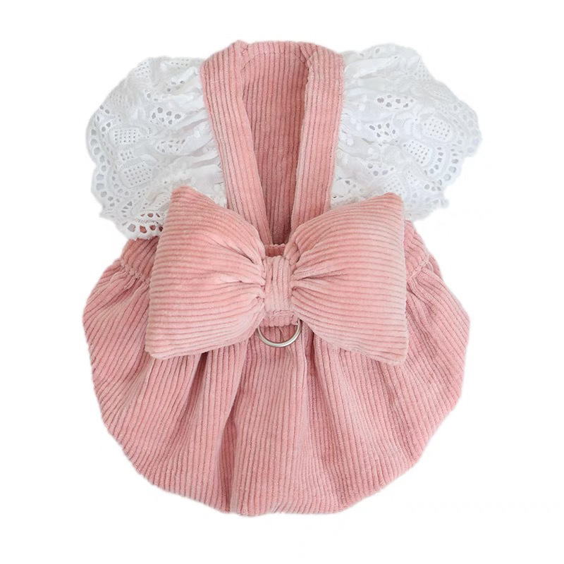 애완 동물 옷 가을과 겨울 새로운 코듀로이 호박 원피스 견인 버클 테디 베어 개 고양이 따뜻한 레이스 원피스