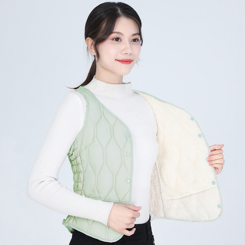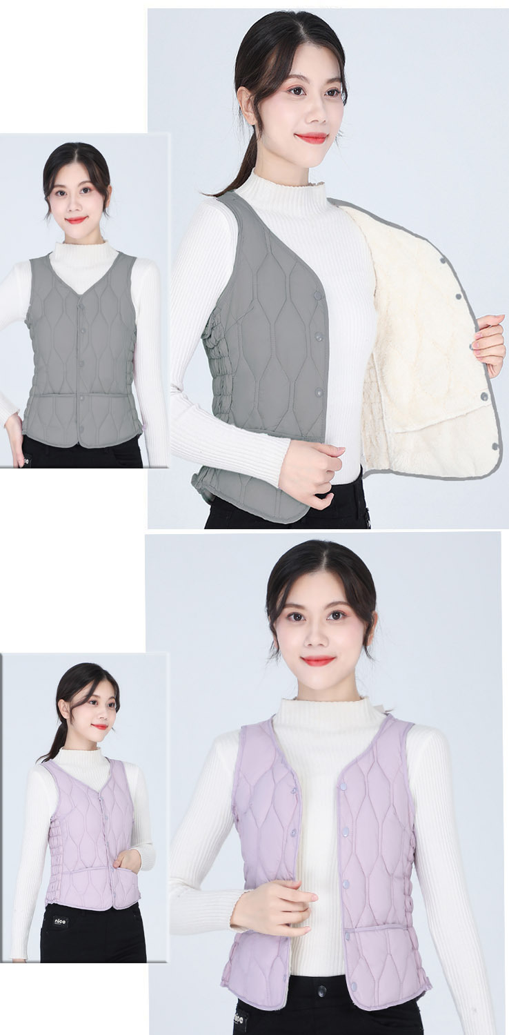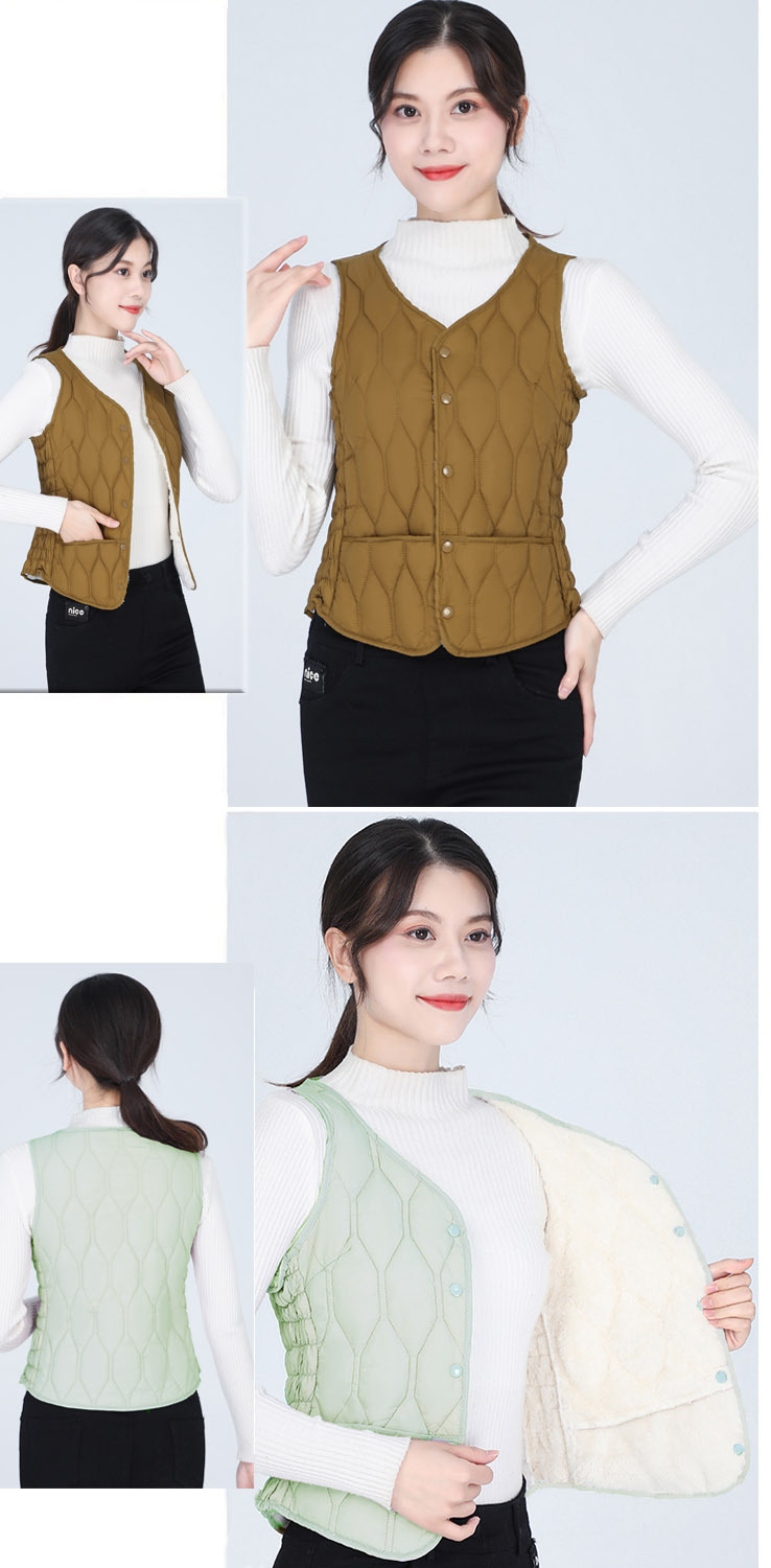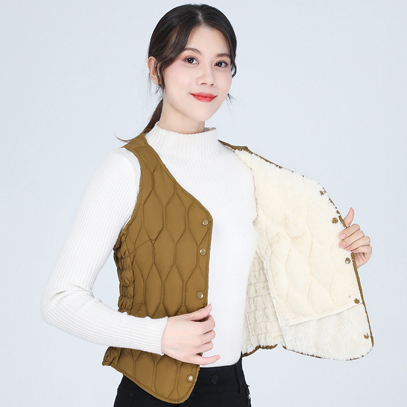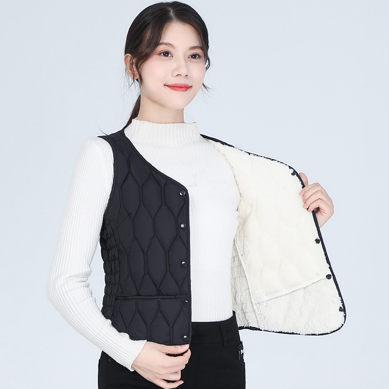 겨울 다운 코튼 조끼 여자 짧은 2024 새로운 기모 두꺼운 플러스 사이즈 라이너 슬림 핏 내복 따뜻한 조끼스토어 가기