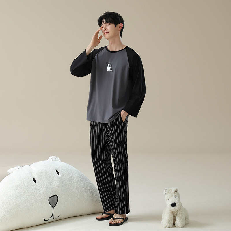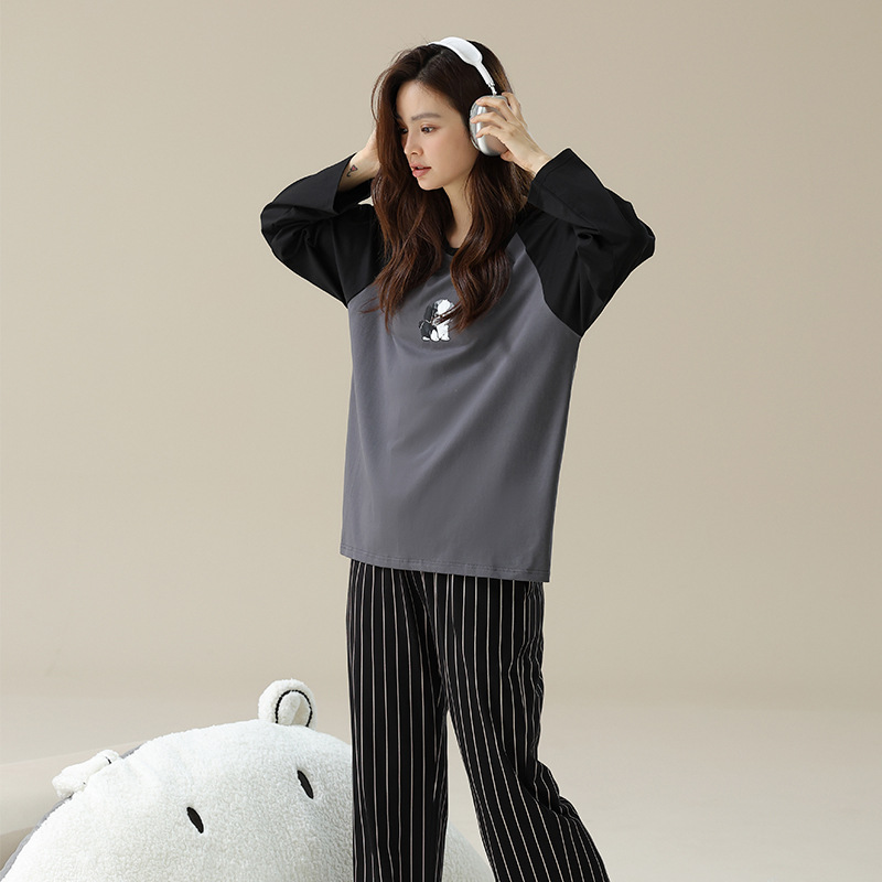 [항균 · 항진드기] 봄 · 가을 커플 긴팔 홈 의류 세트 면 여성 잠옷 만화 남성 잠옷스토어 가기