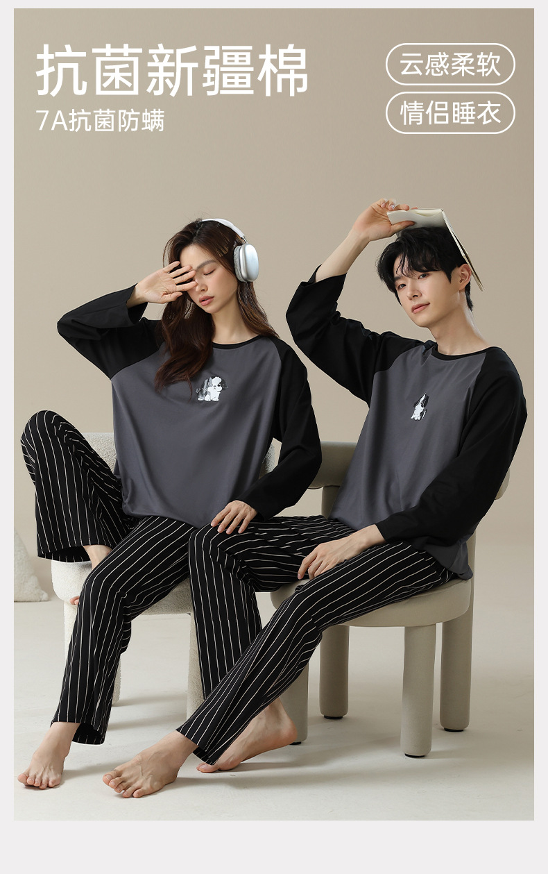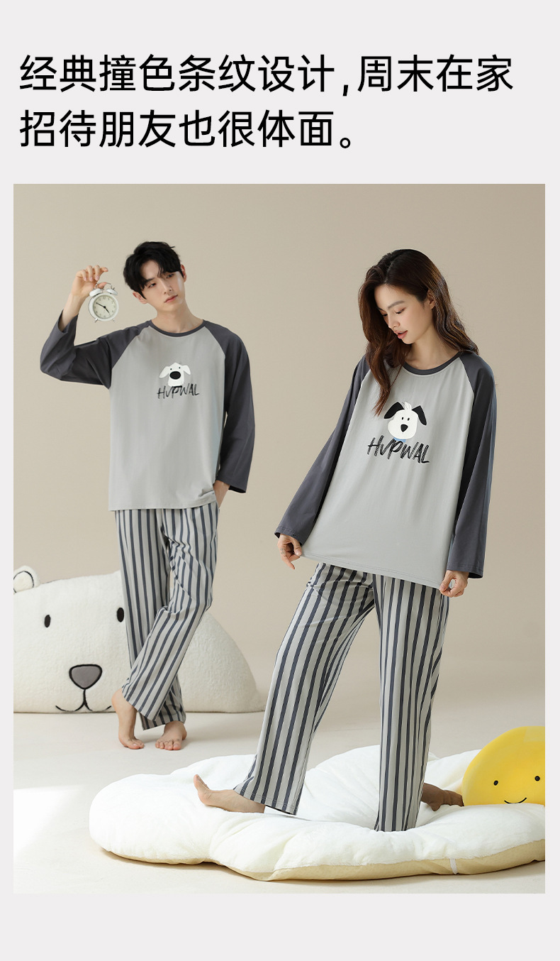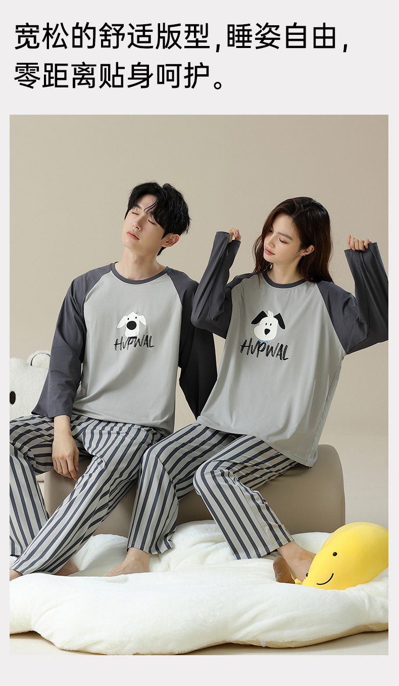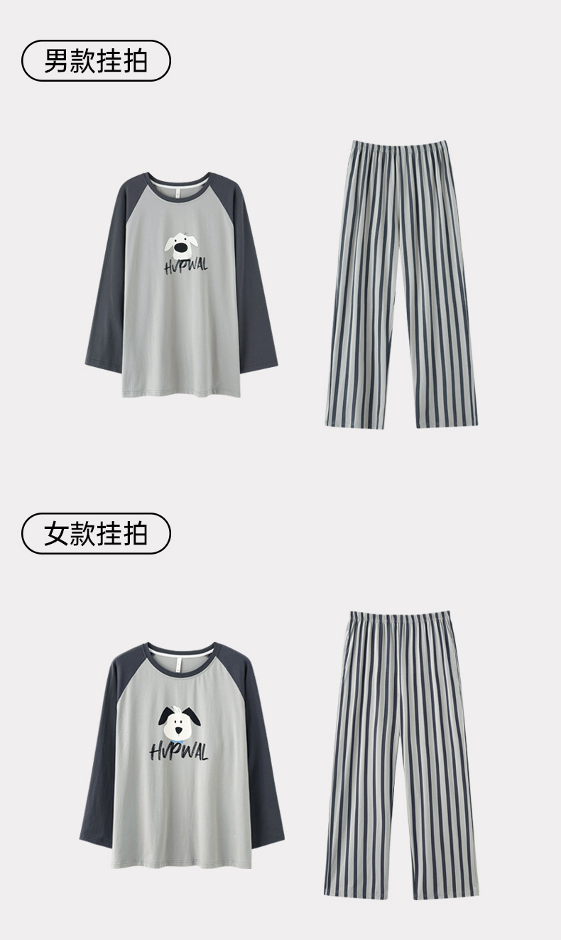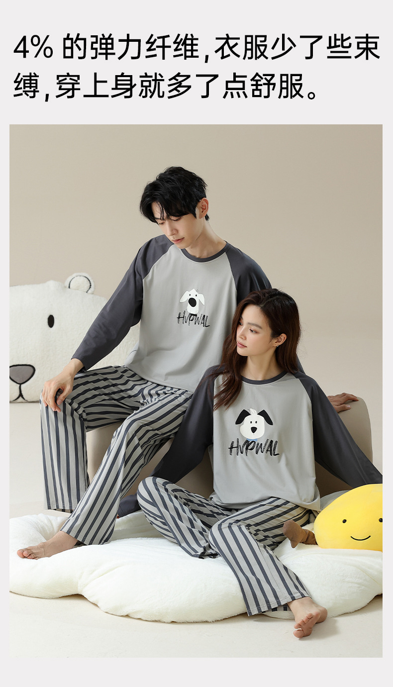【抗菌防螨】春秋季情侣睡衣纯棉长袖男套装女式奶狗家居服可外穿