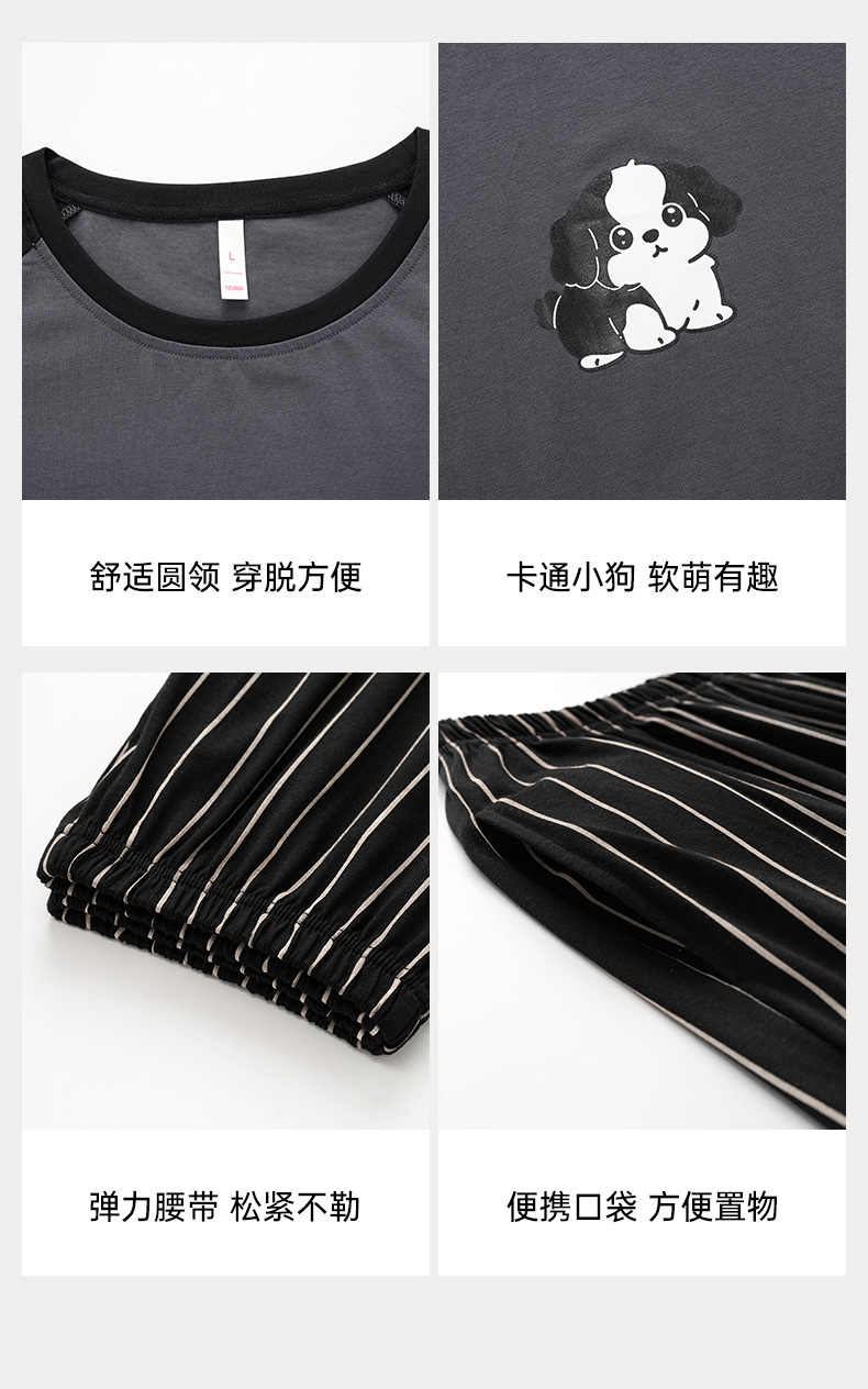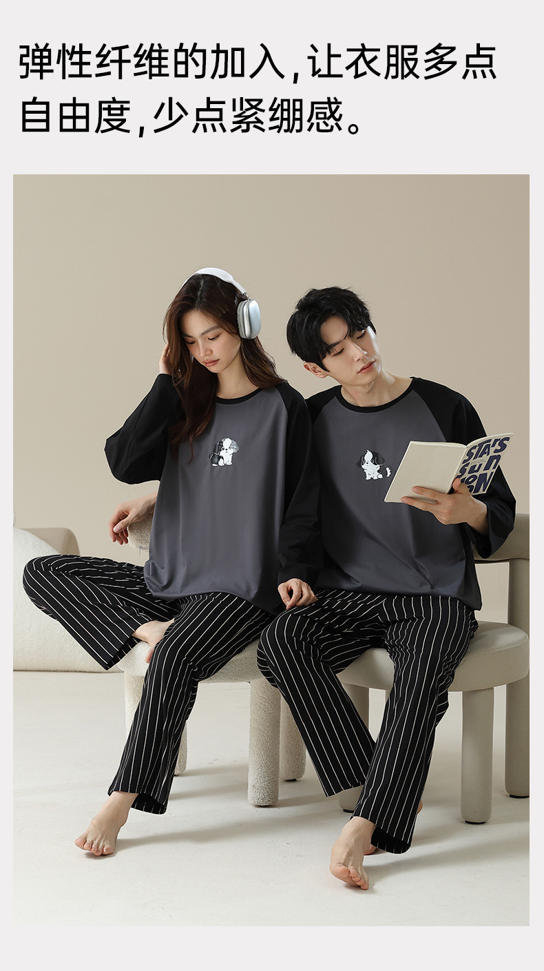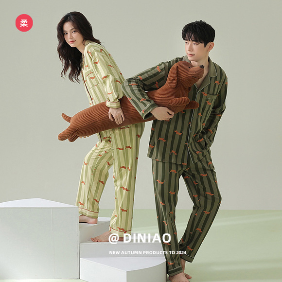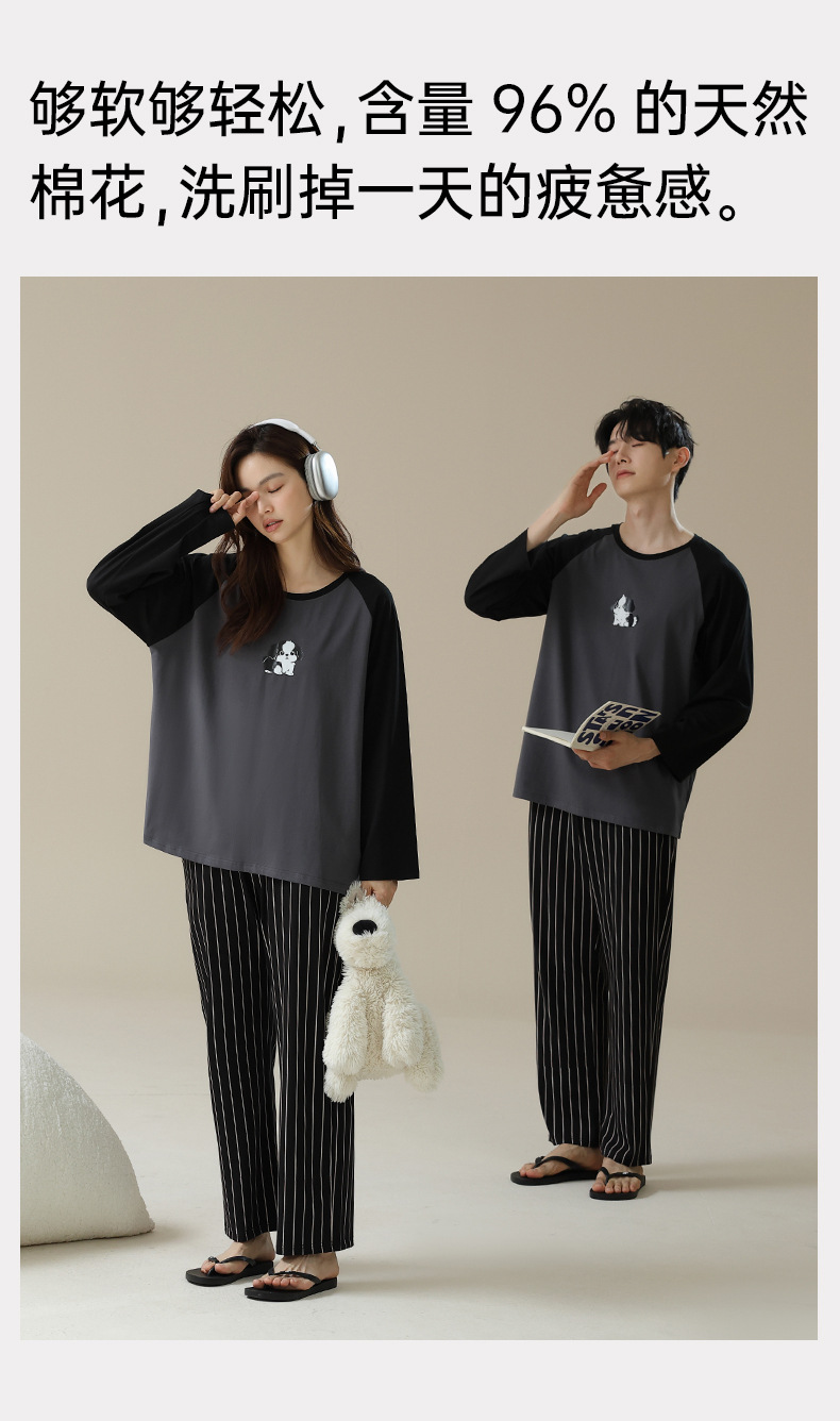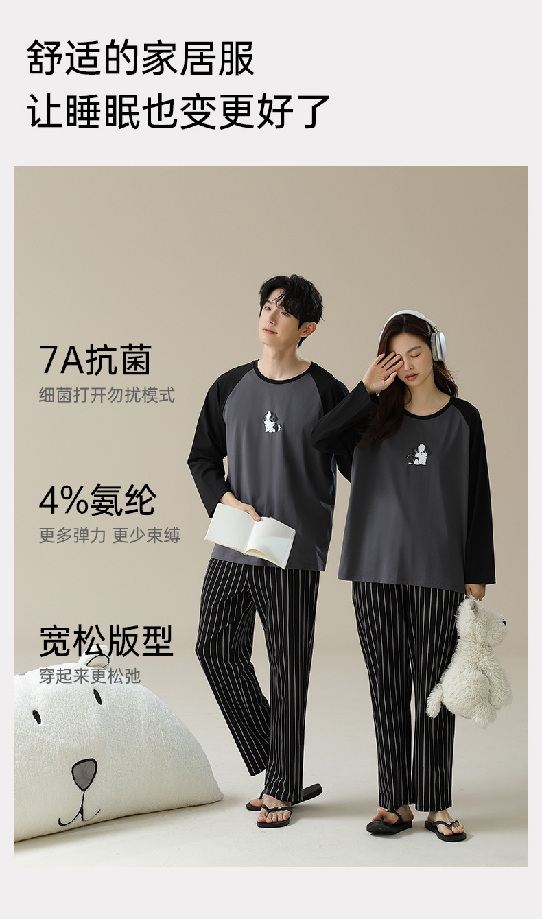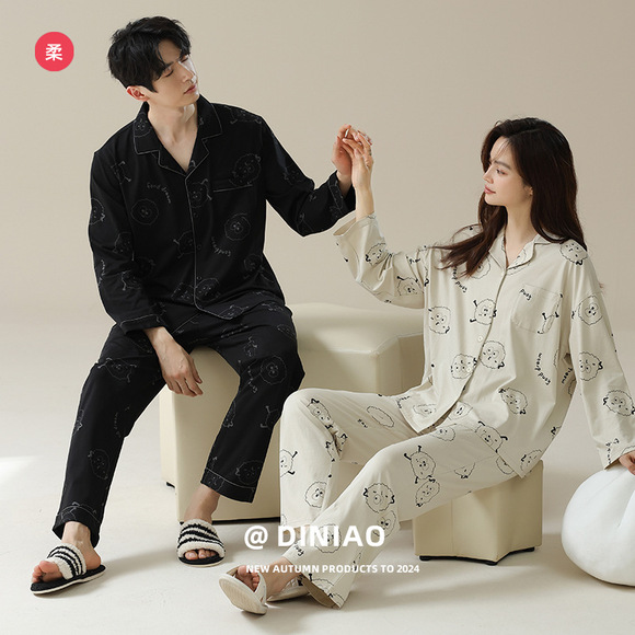 【抗菌防螨】春秋季情侣睡衣纯棉长袖男套装女式奶狗家居服可外穿