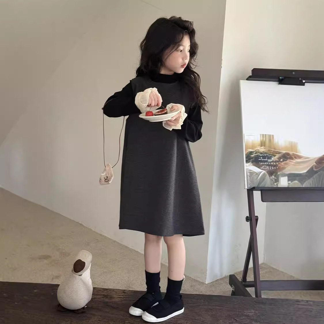소녀 원피스 봄 가을 원피스 큰 어린이 소녀 유행 서양식 한국 스타일 쿨 고급 회색 조끼 원피스스토어 가기