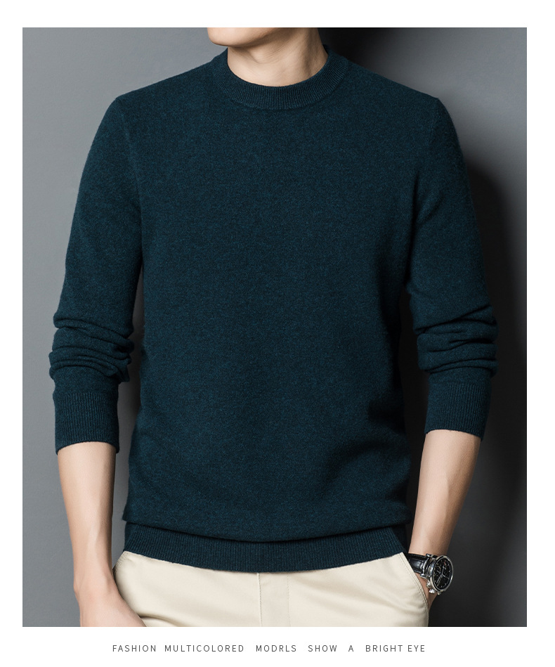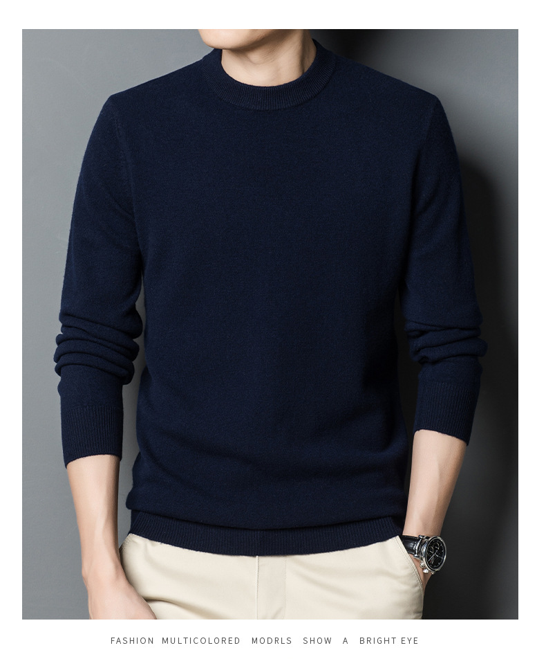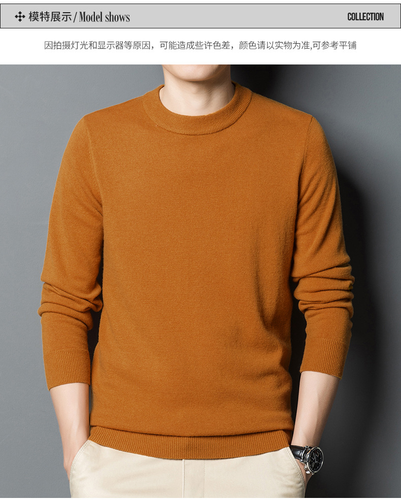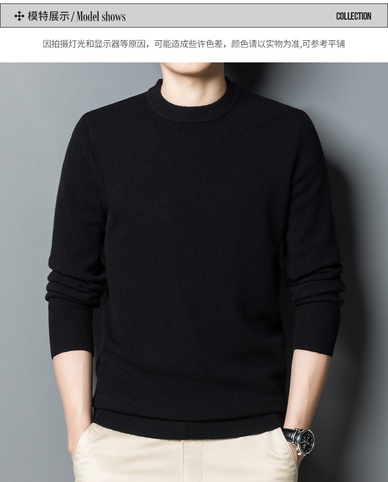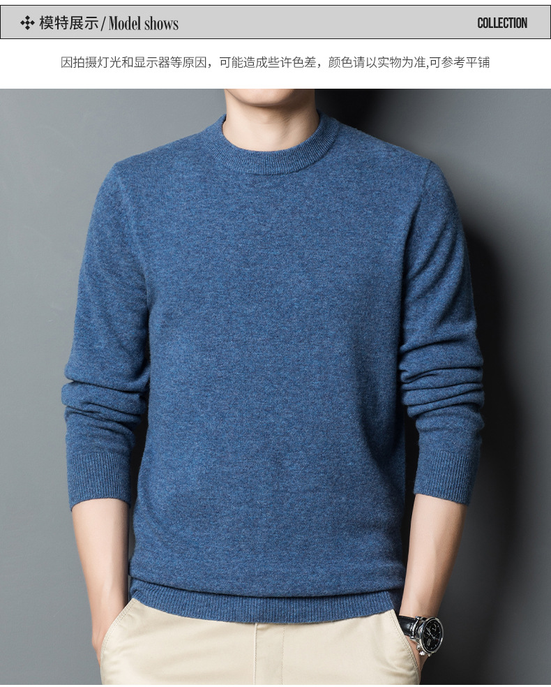 양모 스웨터 남자 폭발 둥근 목 솔리드 컬러 니트 스웨터 가을과 겨울 젊고 중년 남성의 두꺼운 따뜻한 베이스 스웨터스토어 가기
