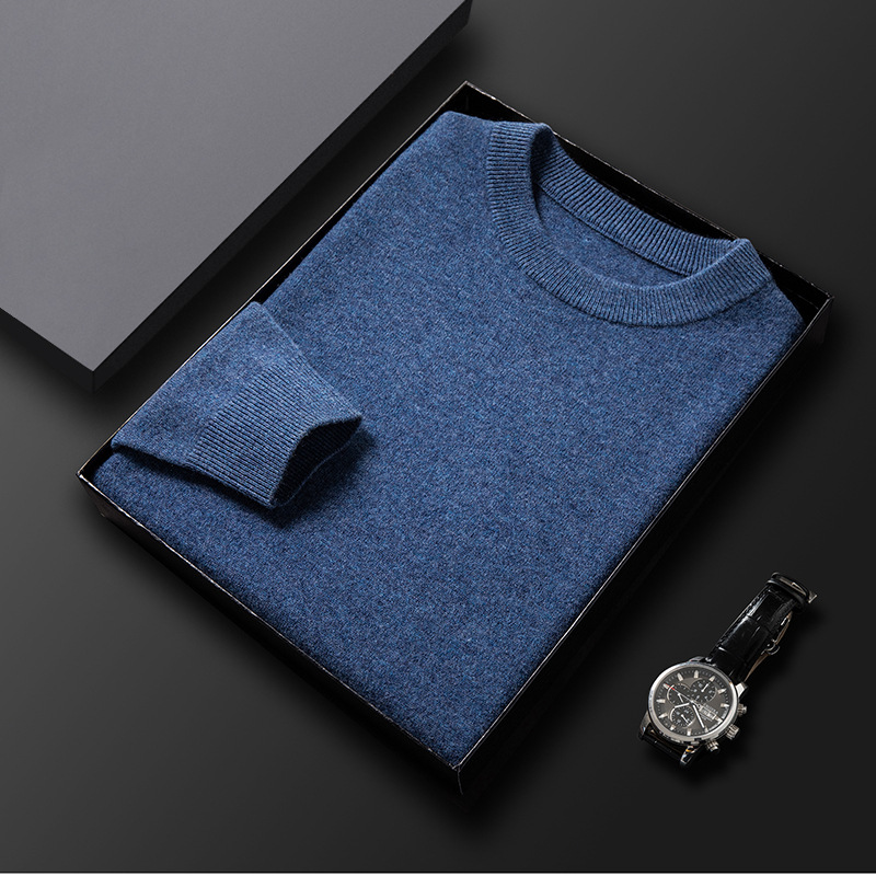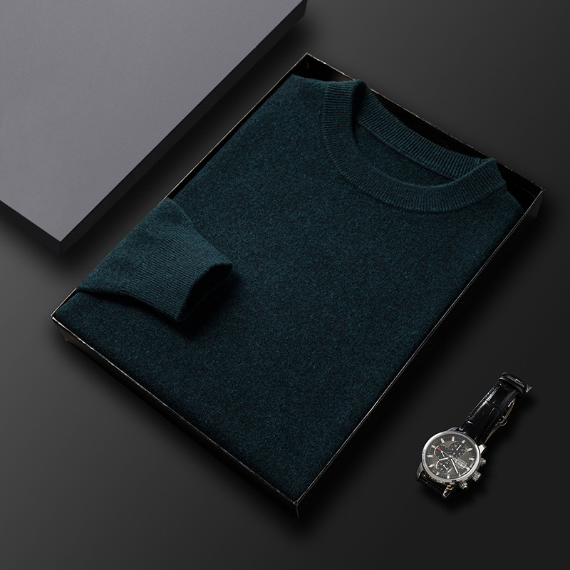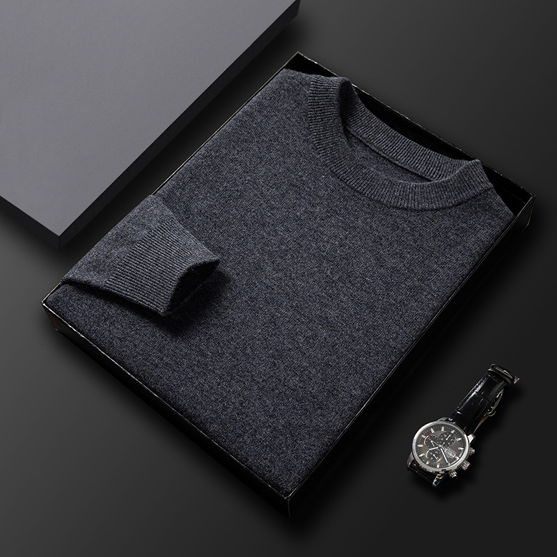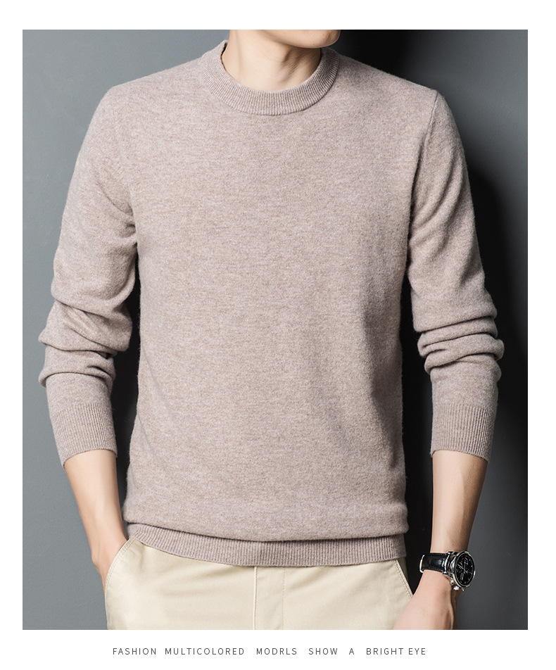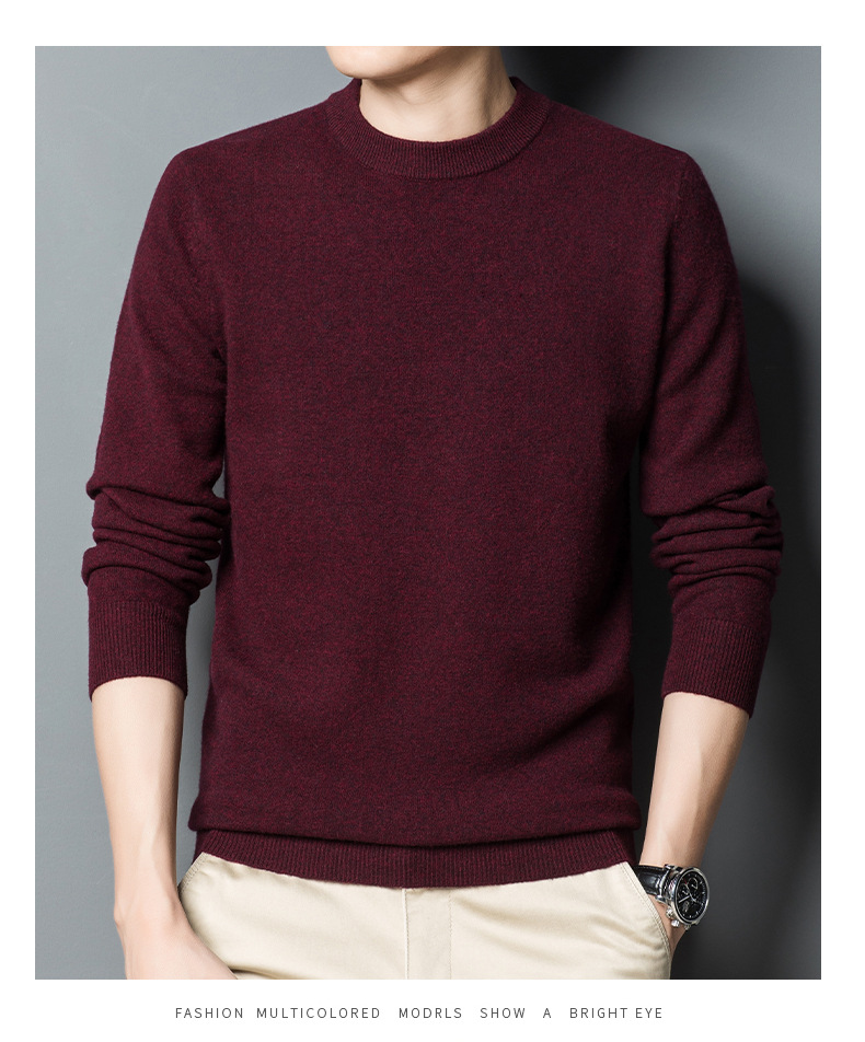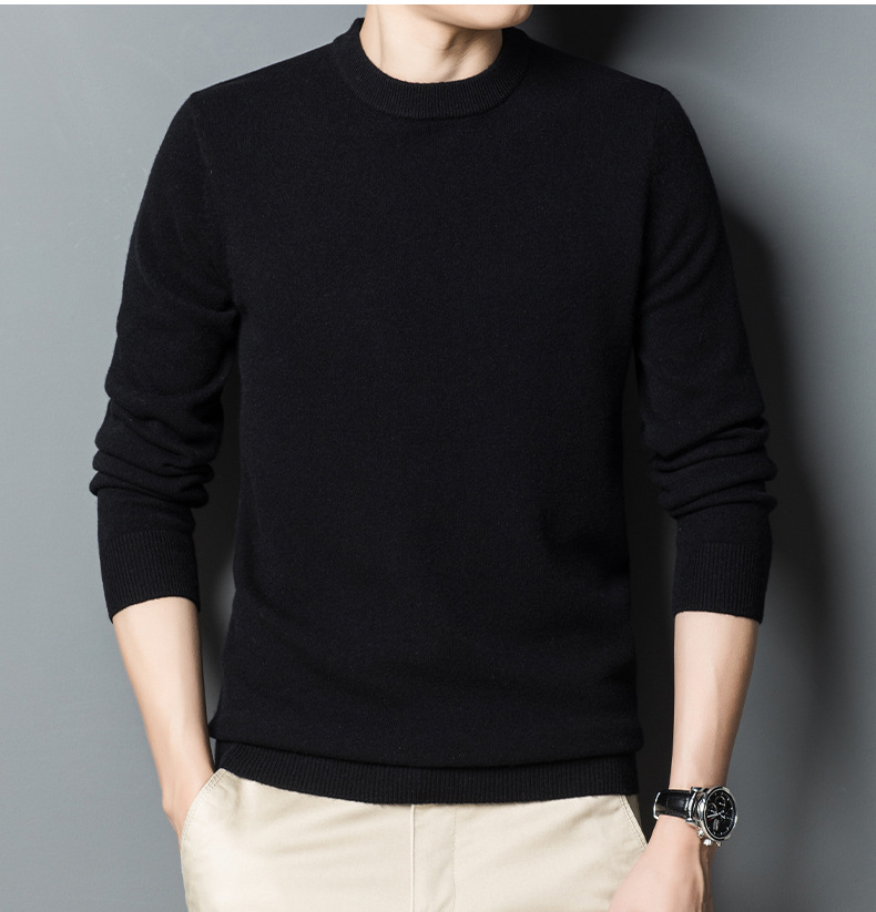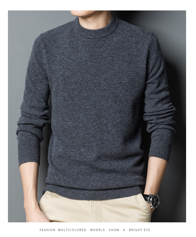 양모 스웨터 남자 폭발 둥근 목 솔리드 컬러 니트 스웨터 가을과 겨울 젊고 중년 남성의 두꺼운 따뜻한 베이스 스웨터