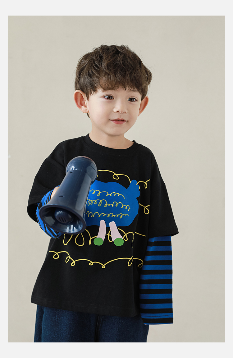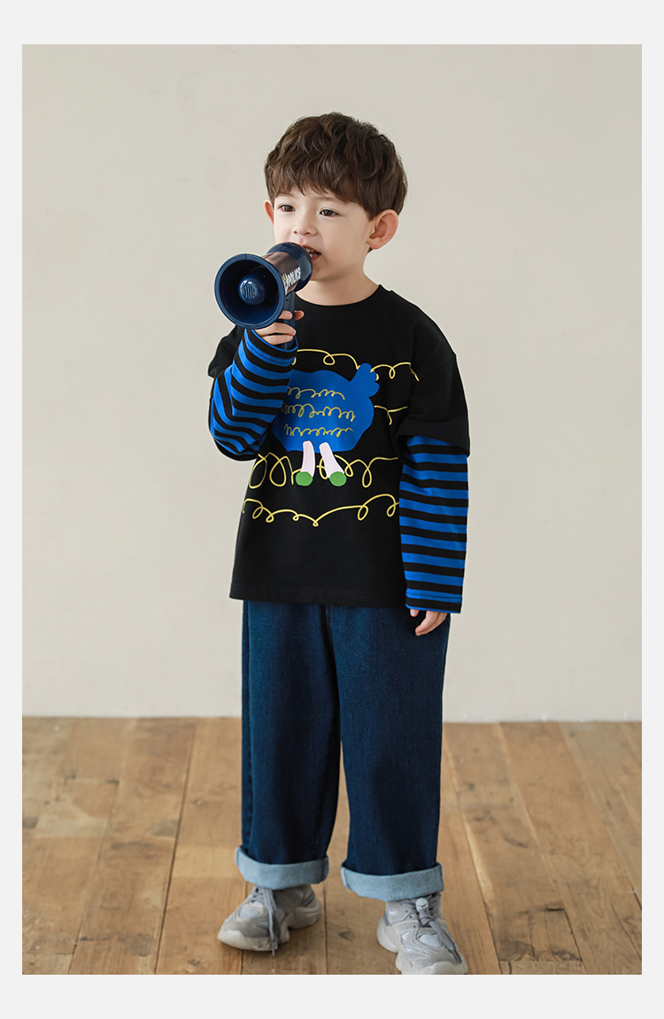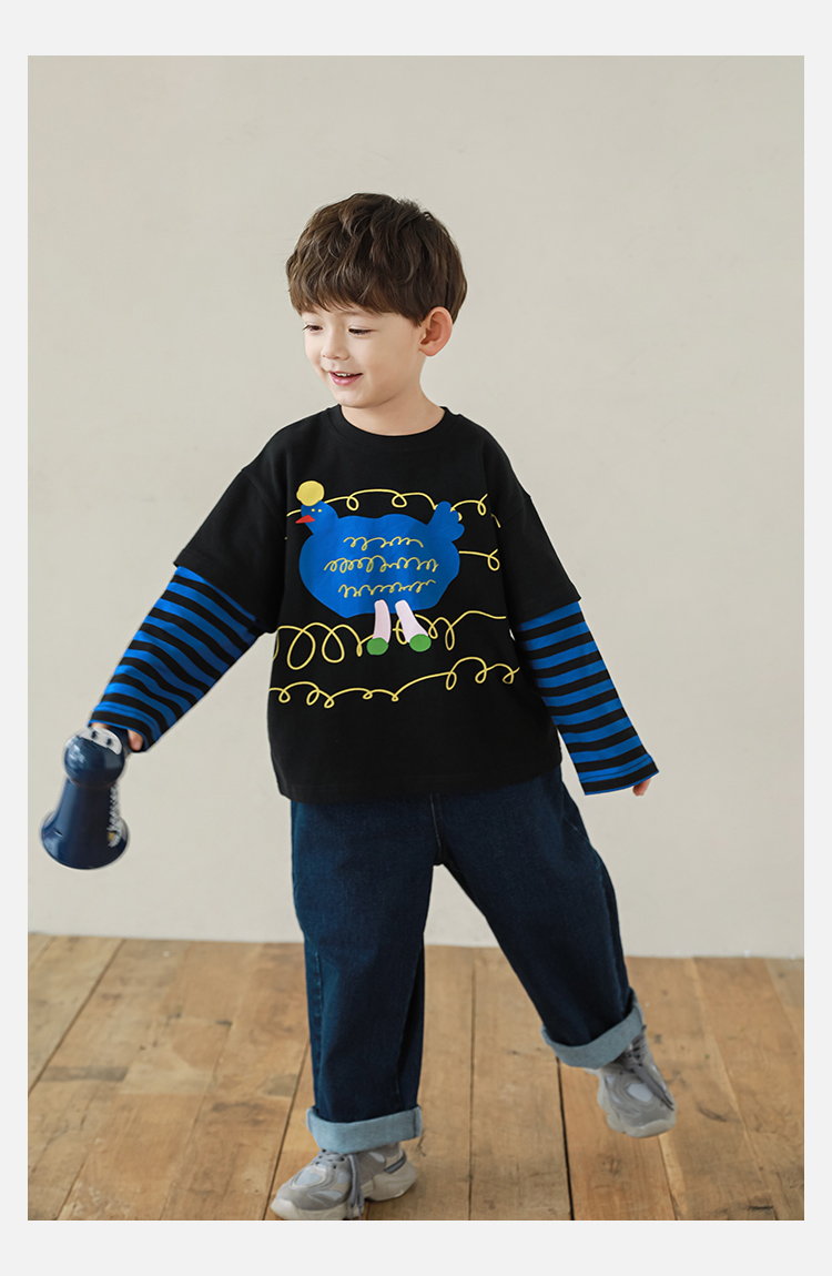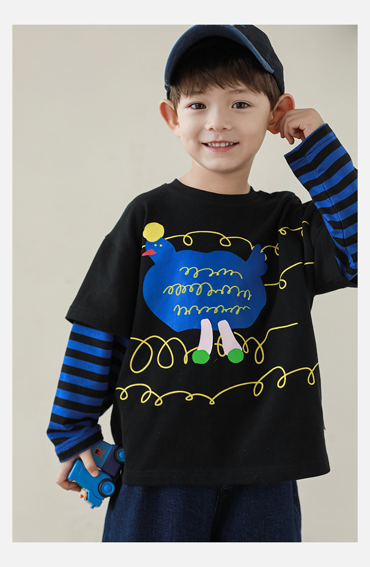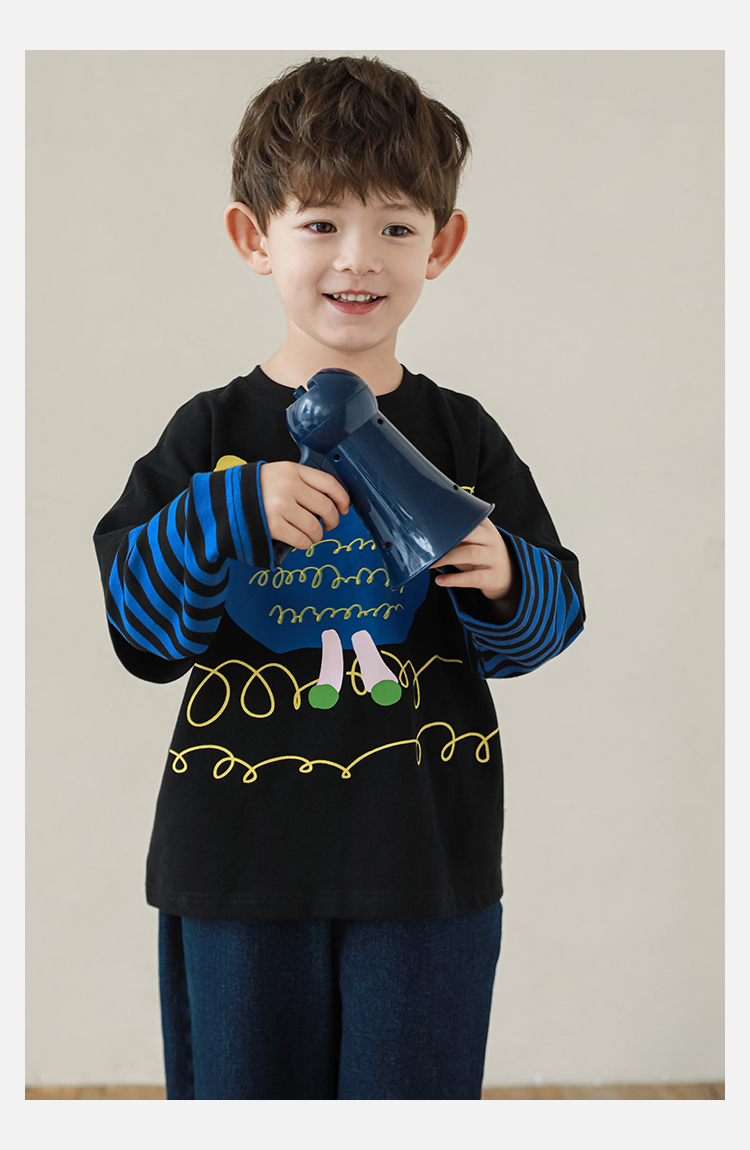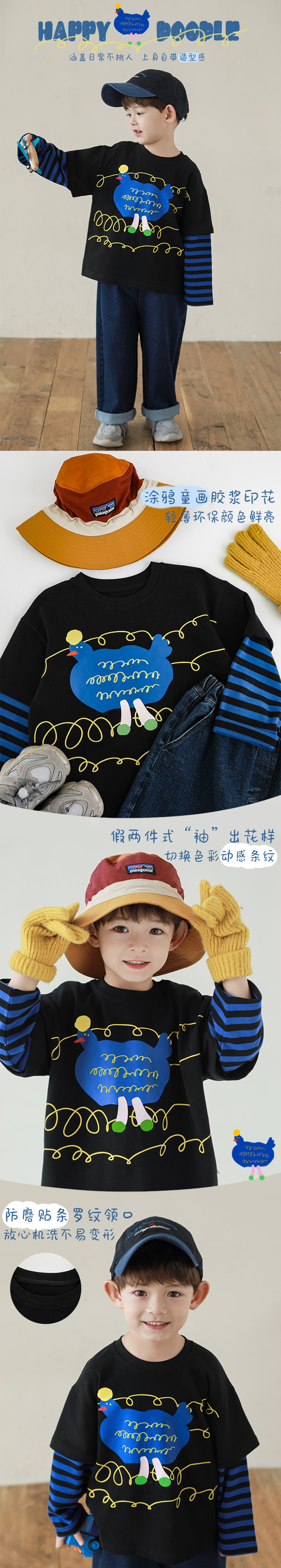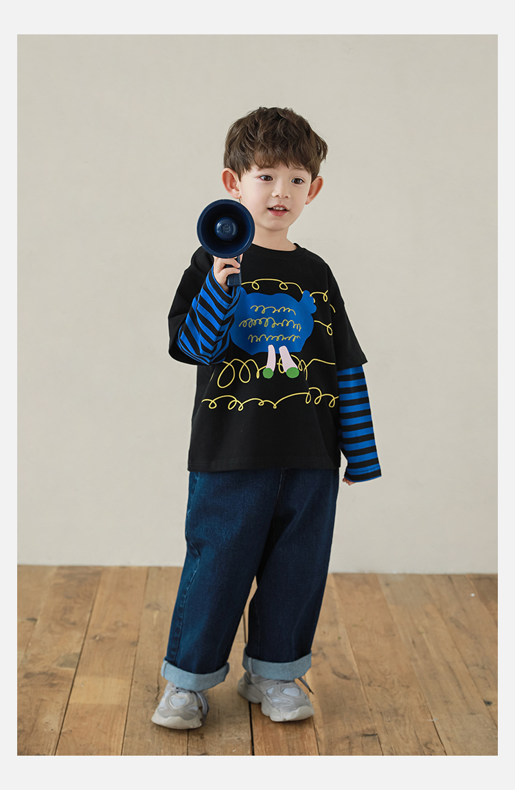 Wulibuyi Boys 2025 새로운 긴팔 라운드 넥 낙서 가짜 투피스 스웨트 셔츠 가을 트렌디 브랜드 루즈 탑 트렌디스토어 가기