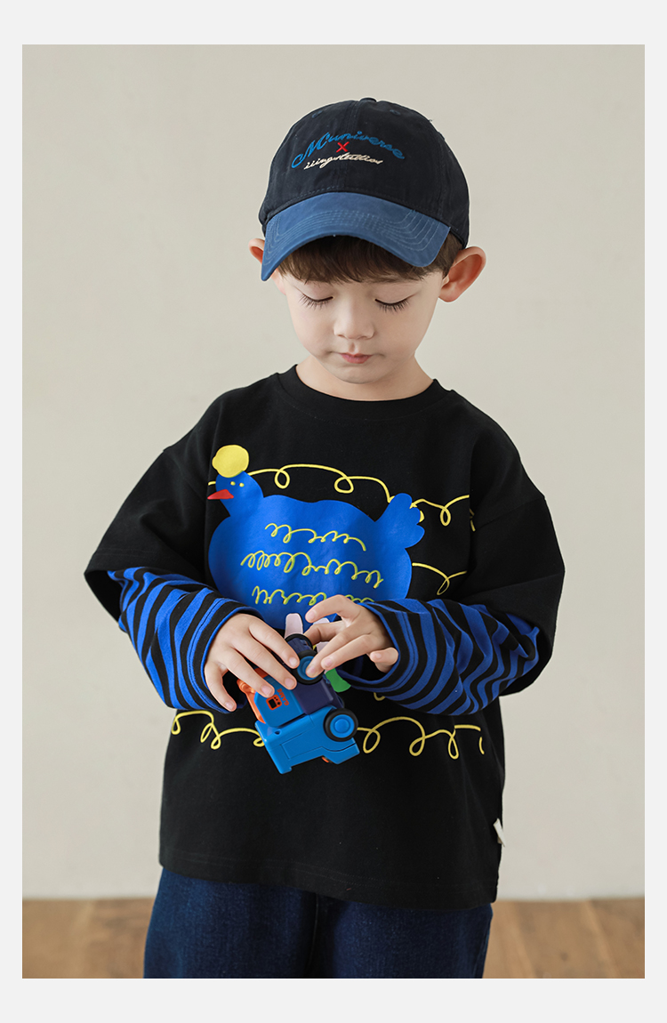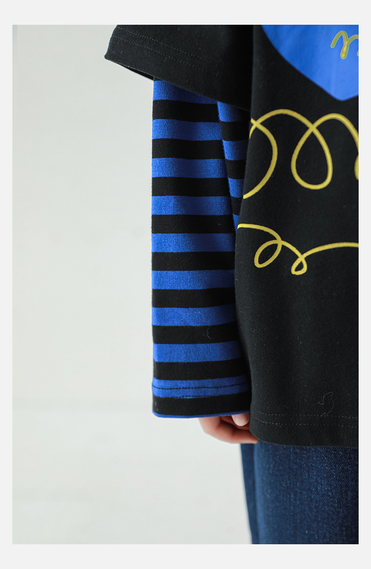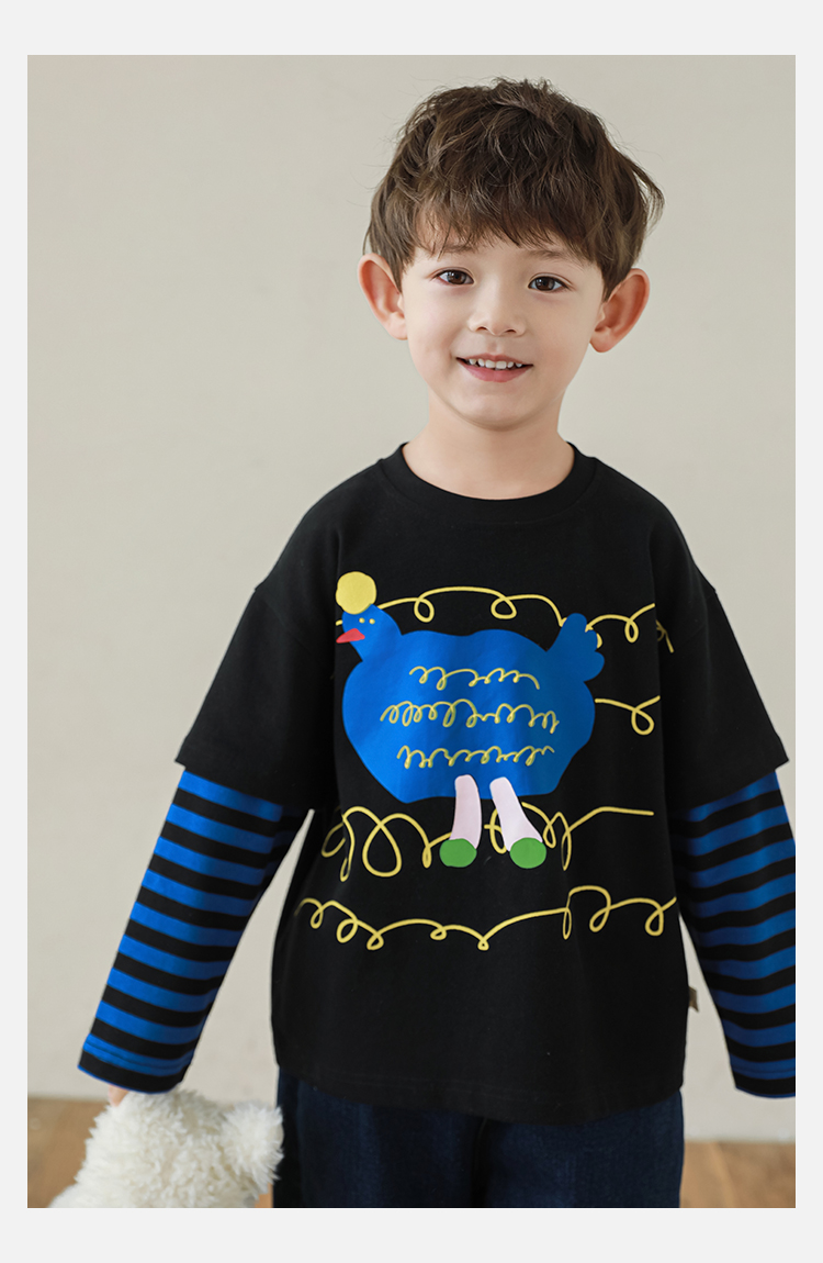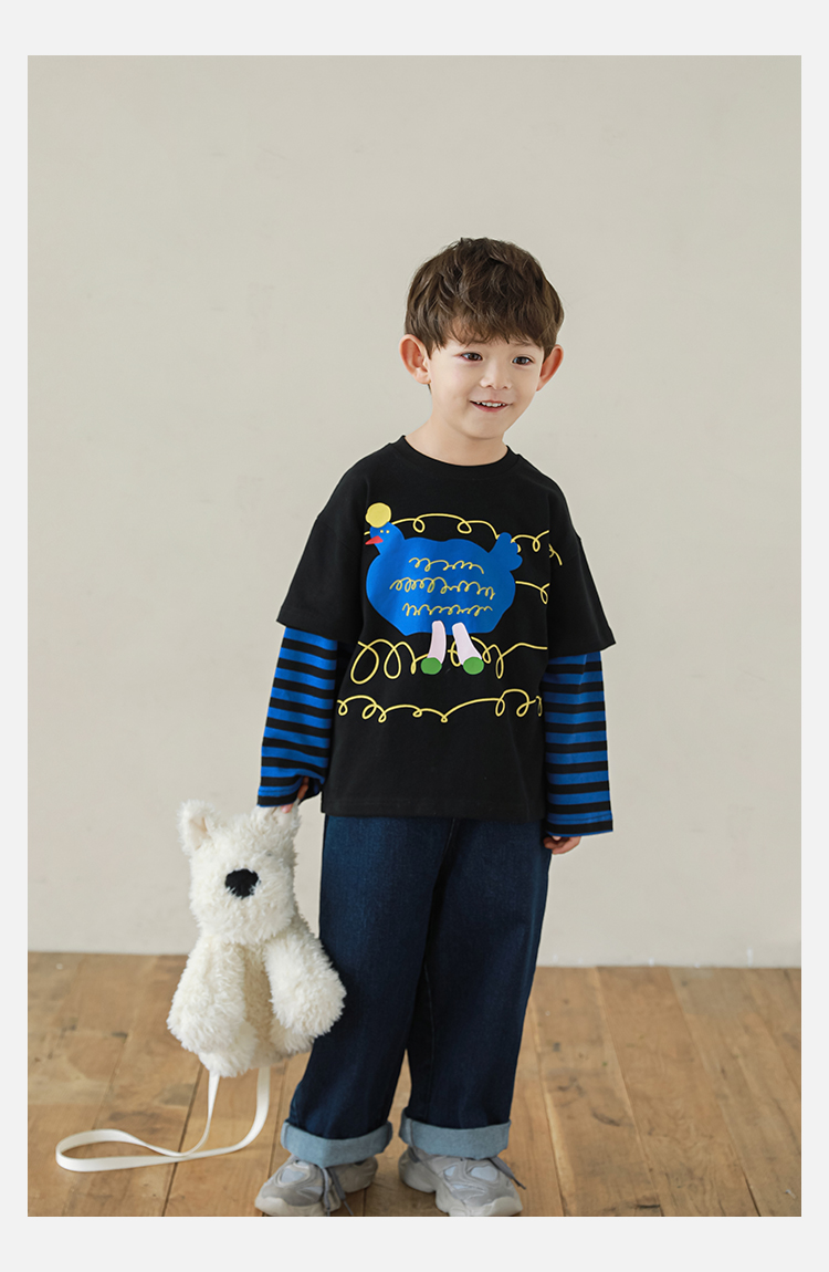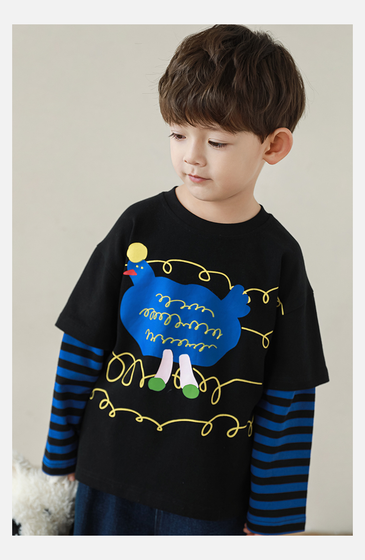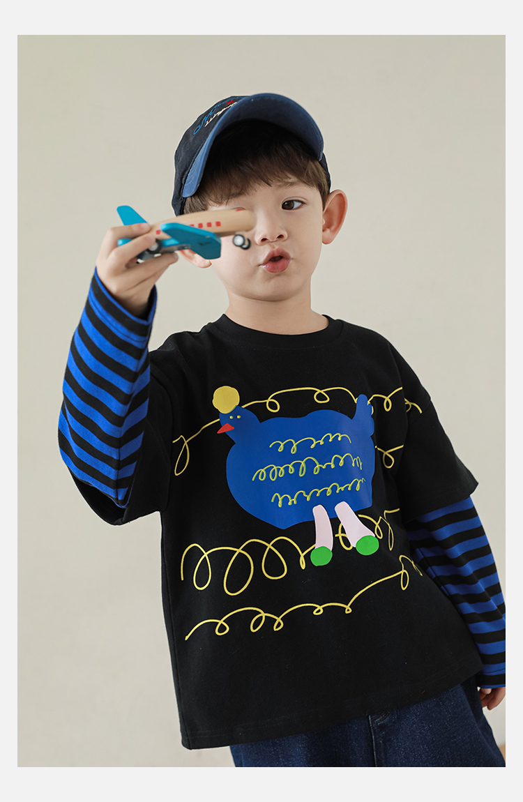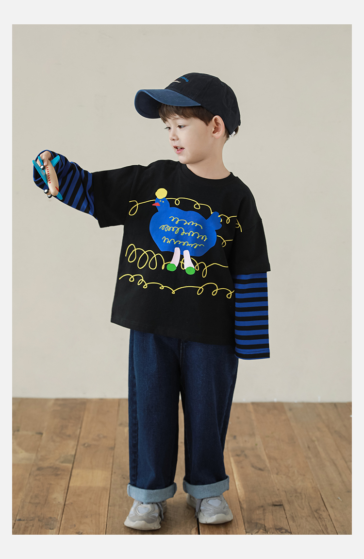 Wulibuyi Boys 2025 새로운 긴팔 라운드 넥 낙서 가짜 투피스 스웨트 셔츠 가을 트렌디 브랜드 루즈 탑 트렌디스토어 가기