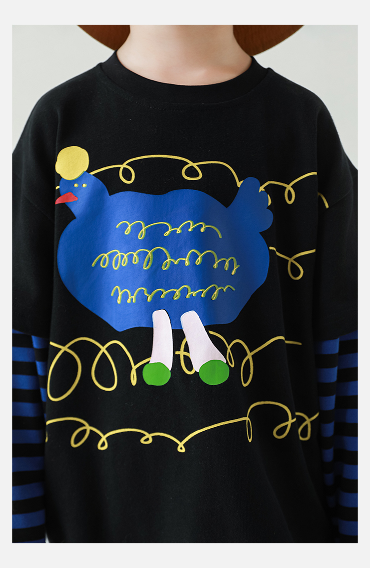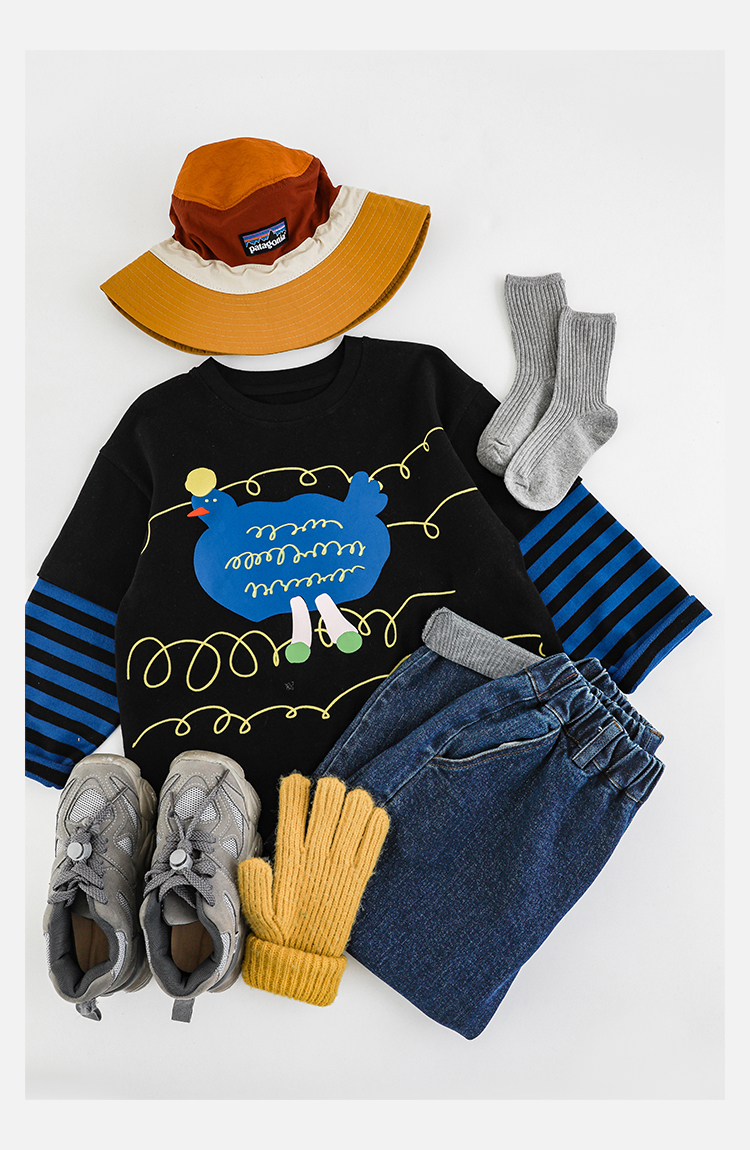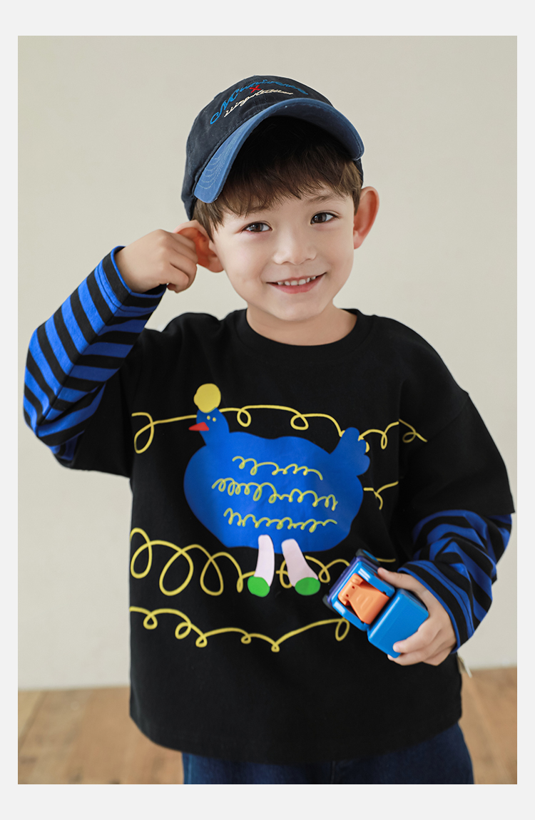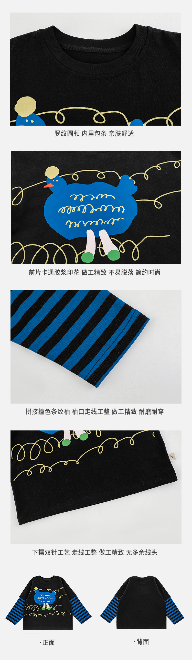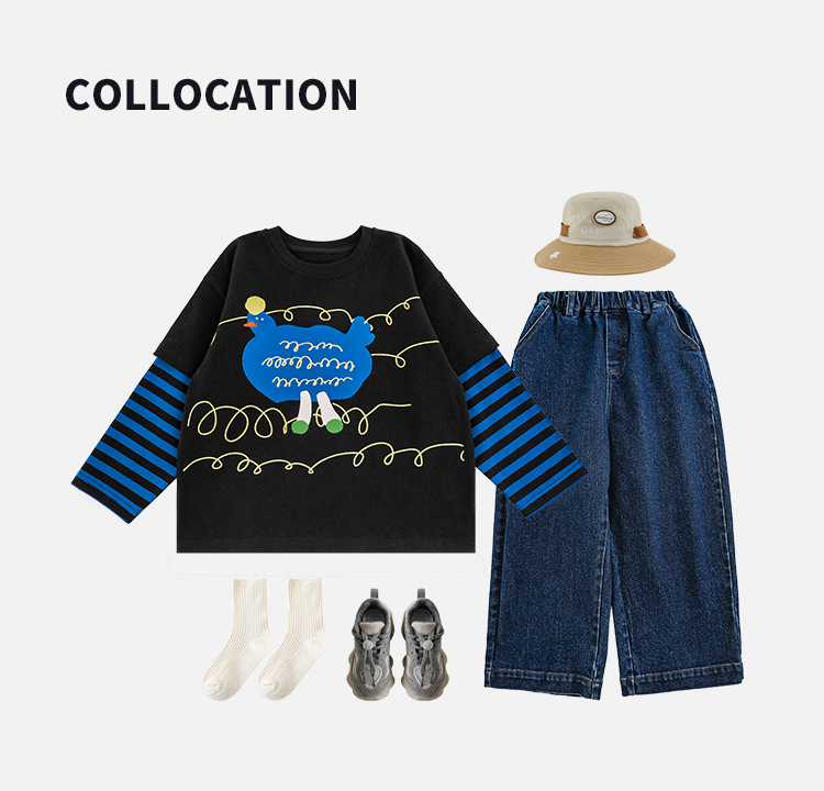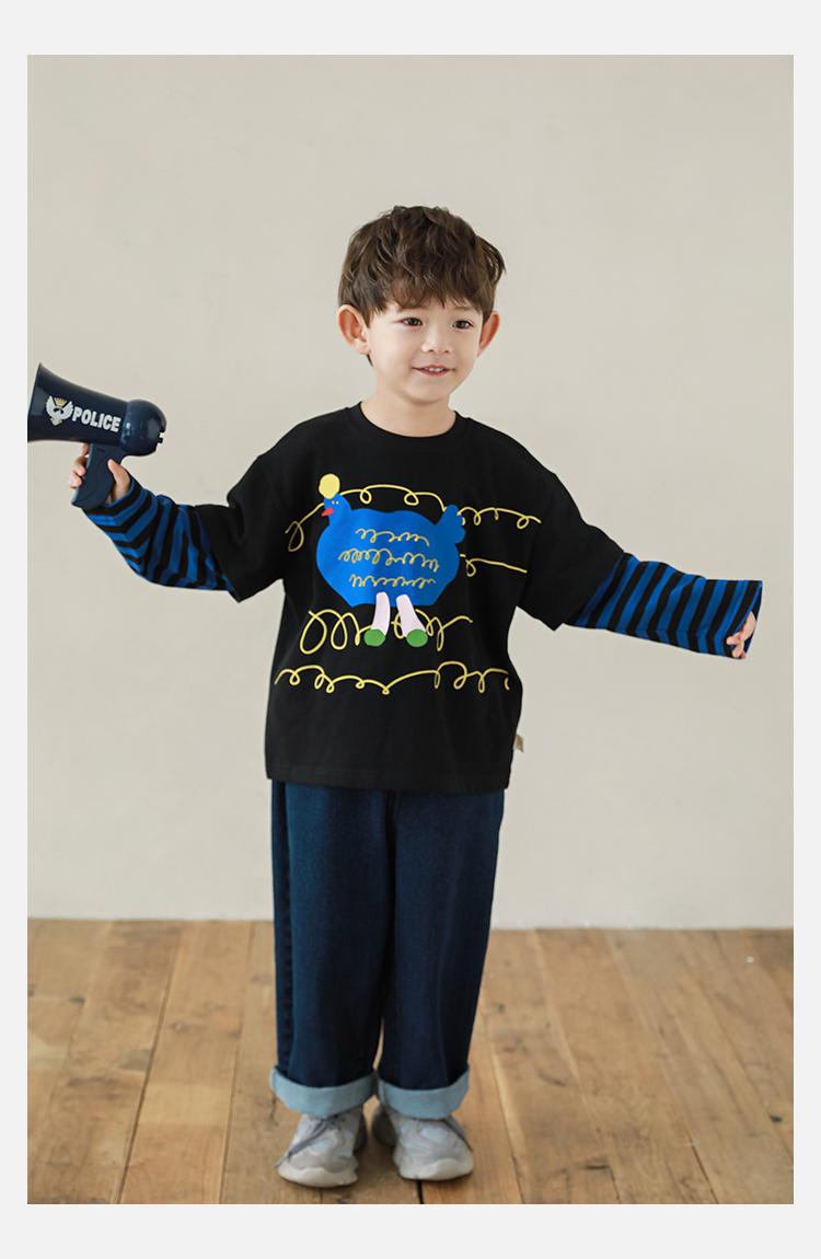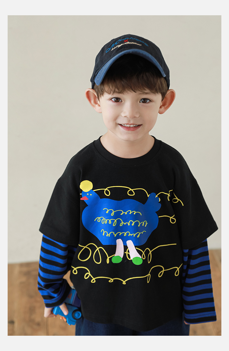 Wulibuyi Boys 2025 새로운 긴팔 라운드 넥 낙서 가짜 투피스 스웨트 셔츠 가을 트렌디 브랜드 루즈 탑 트렌디스토어 가기