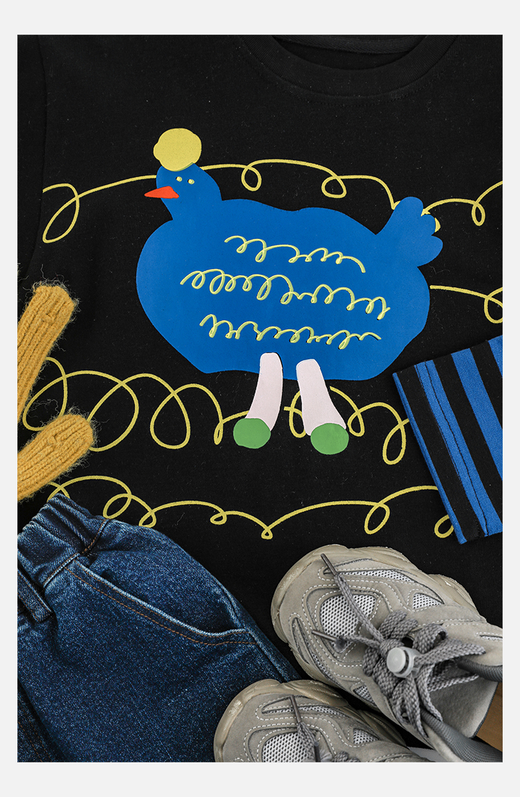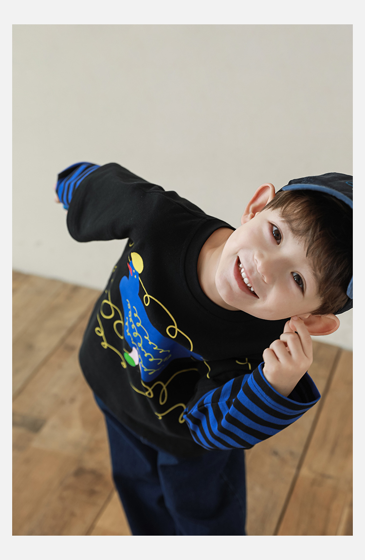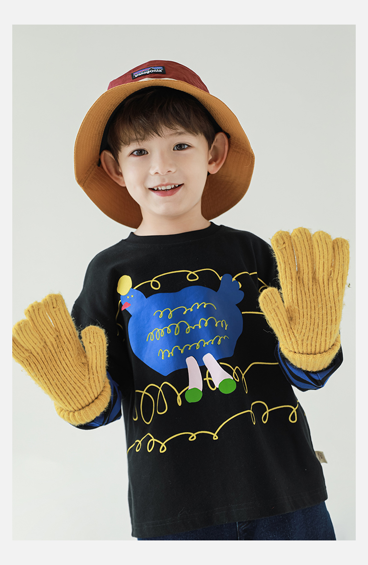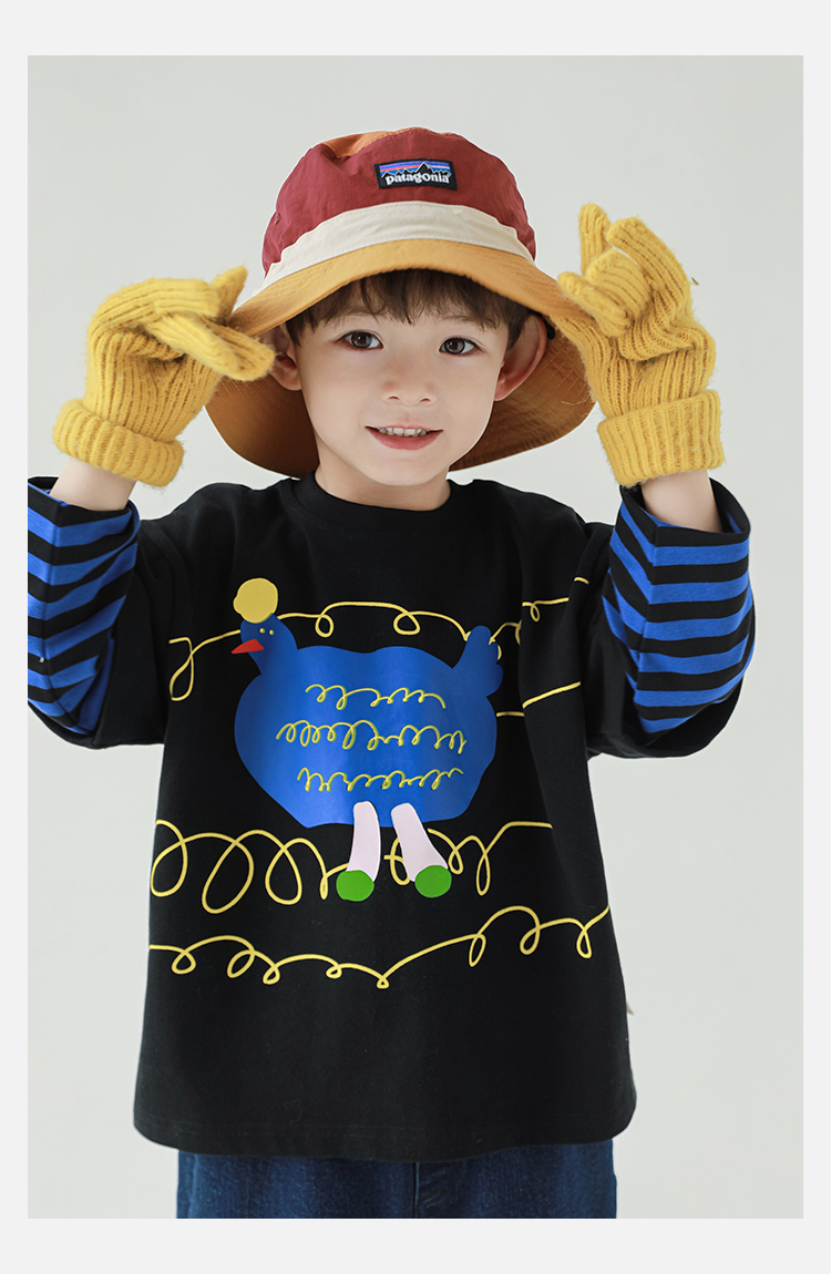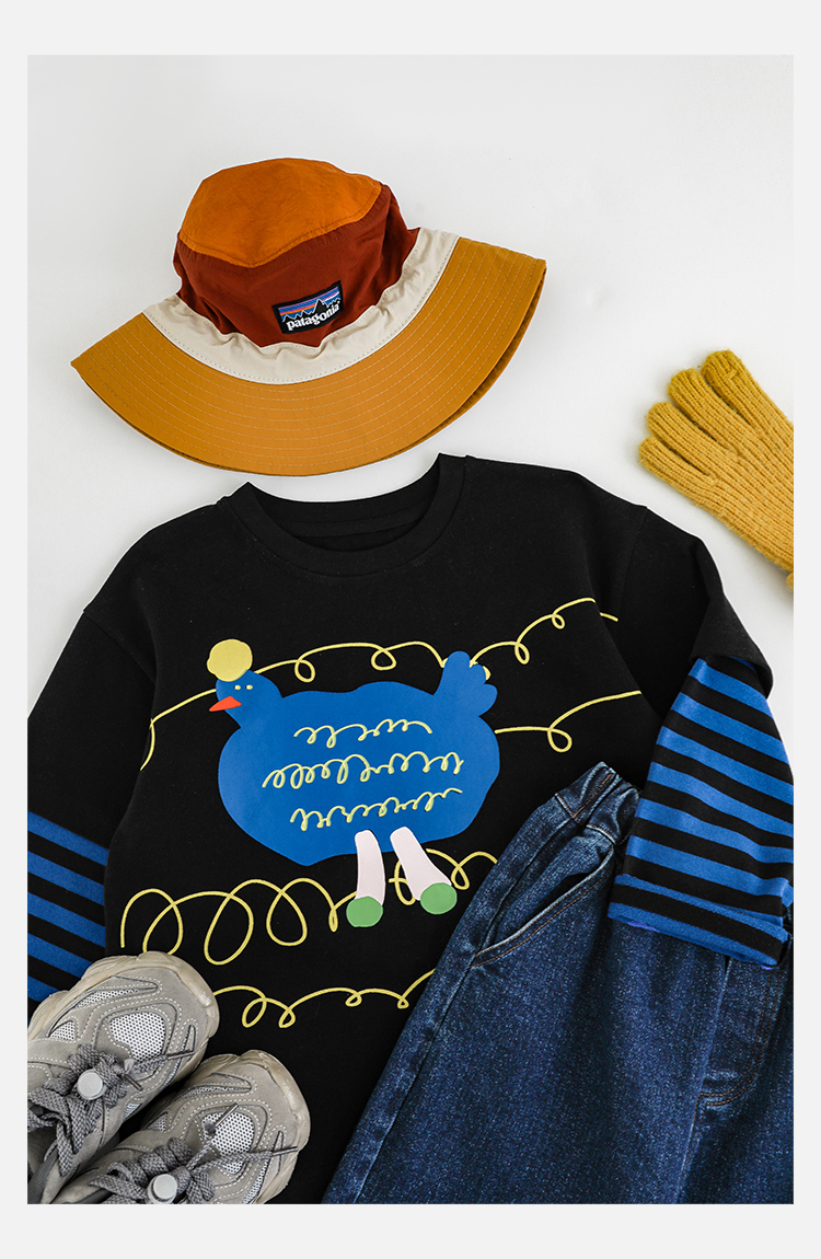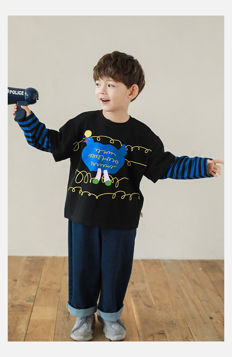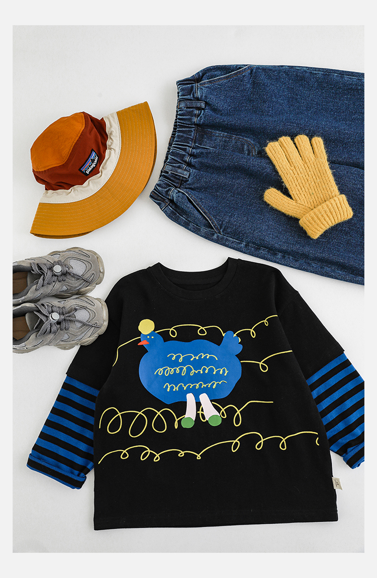 Wulibuyi Boys 2025 새로운 긴팔 라운드 넥 낙서 가짜 투피스 스웨트 셔츠 가을 트렌디 브랜드 루즈 탑 트렌디스토어 가기
