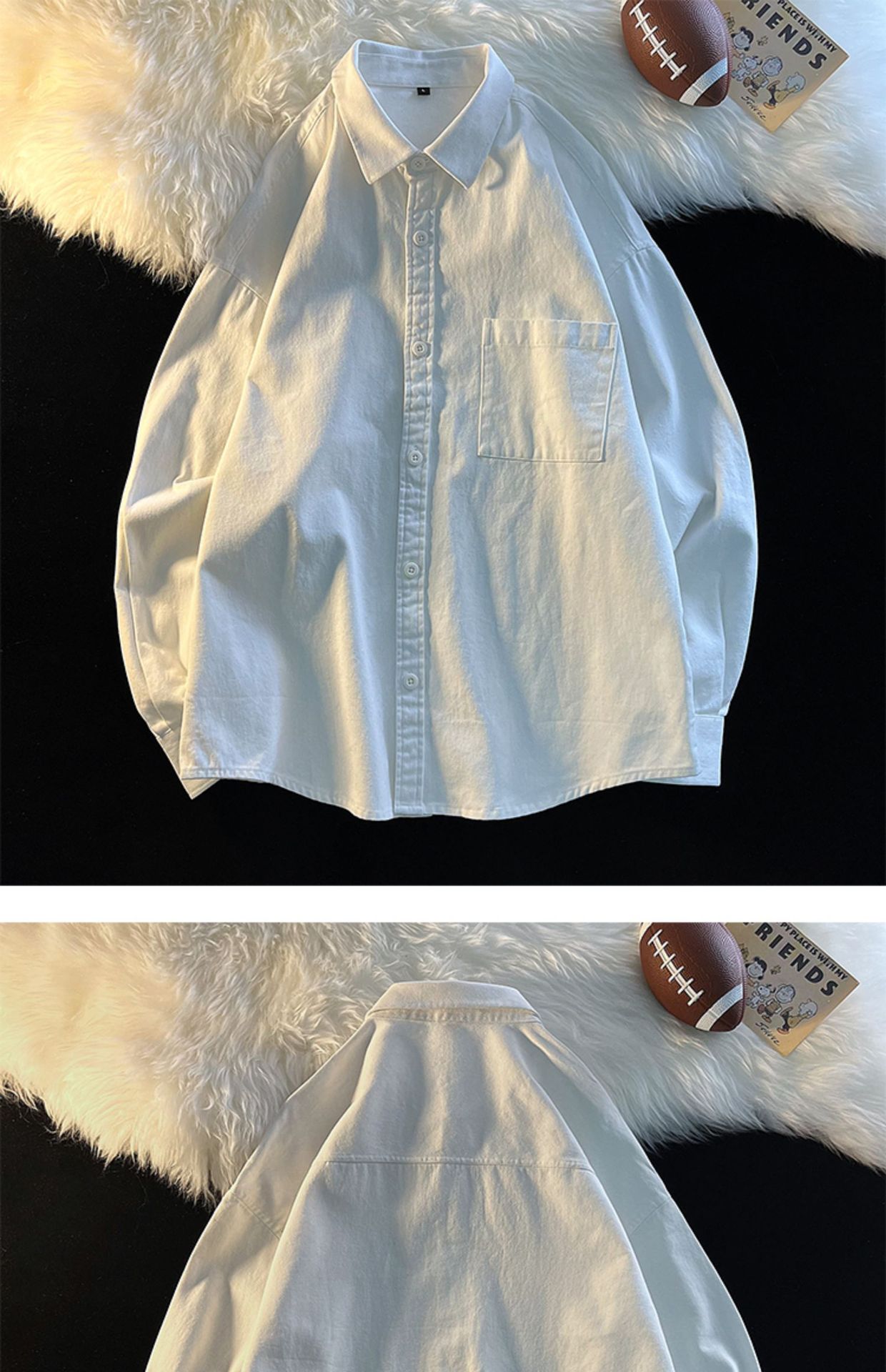 일본 도시 소년베이스 화이트 셔츠 남성과 여성의 긴팔 하이 엔드 센스 틈새 캐주얼 스택 내부 셔츠 재킷