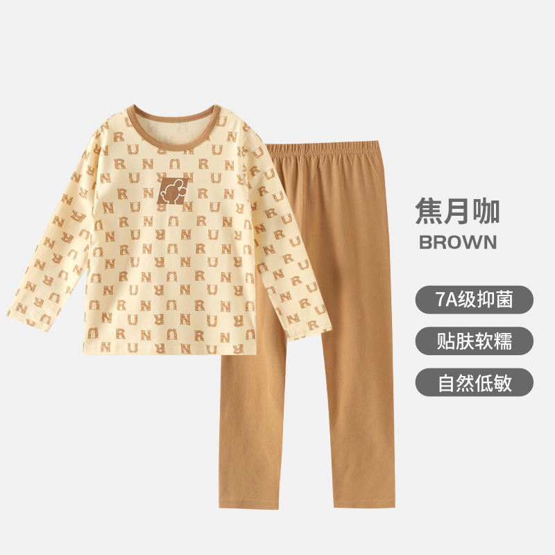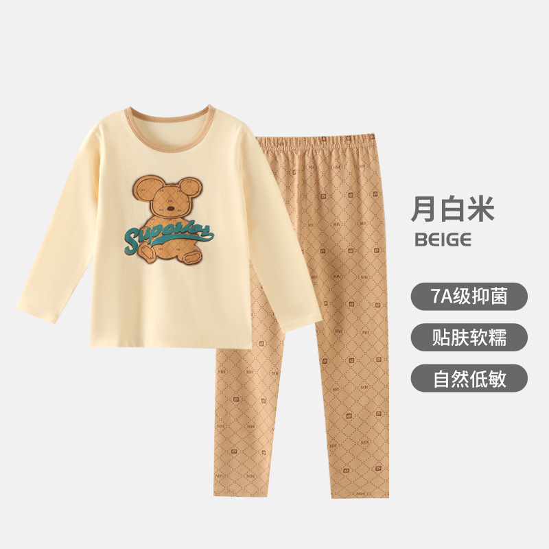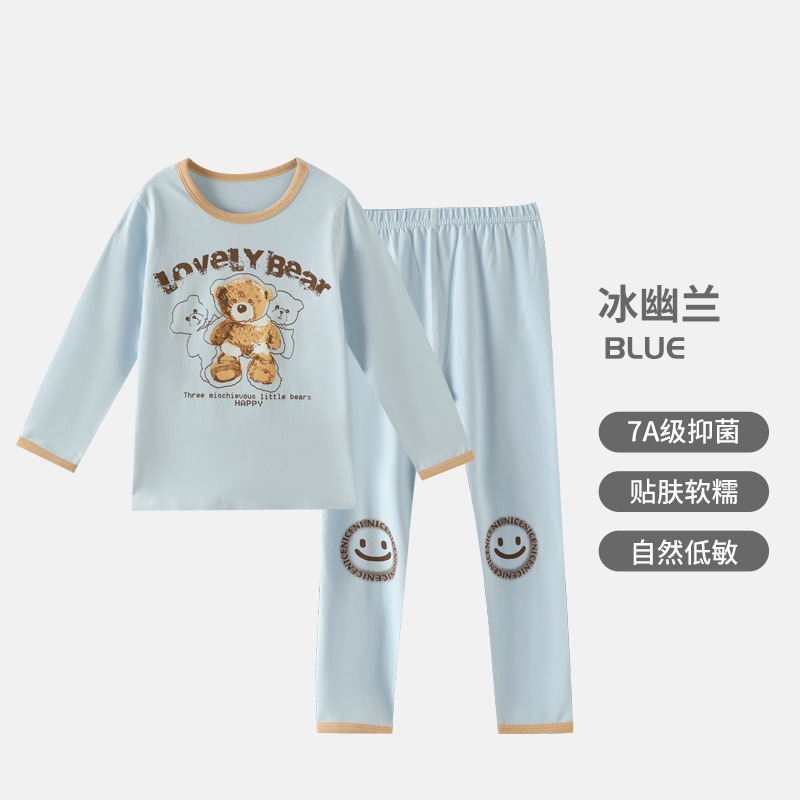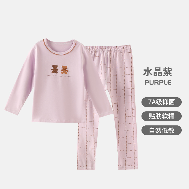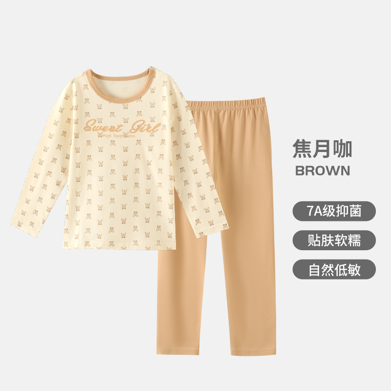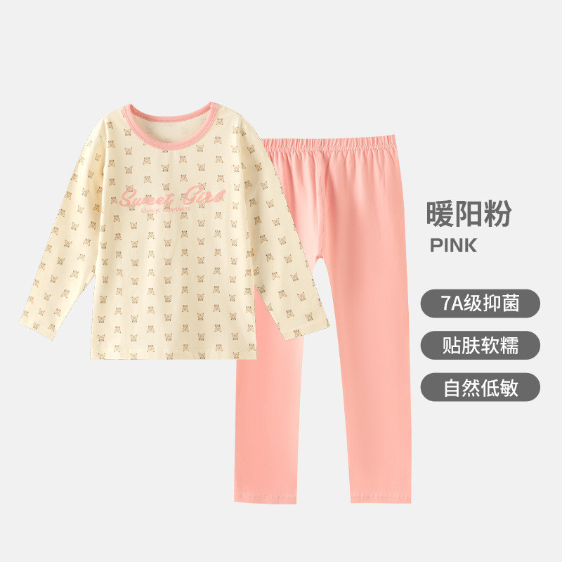 어린이 순면 가을 옷 가을 바지 가을과 겨울 새로운 소녀 속옷 세트 큰 어린이 얇은 잠옷 파자마 도매스토어 가기