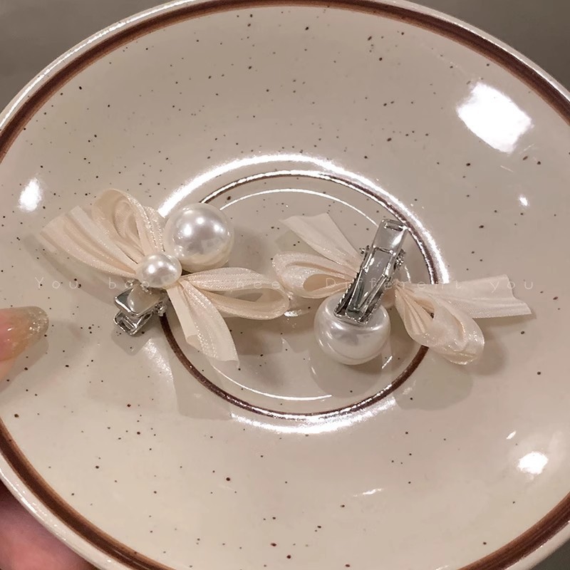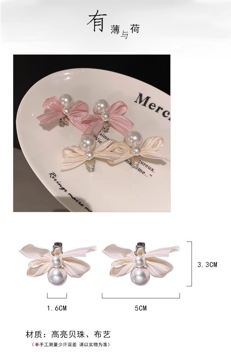 프렌치 스위트어트 ~ 펄 보우 헤어핀 여성용 하이 엔드 사이드 프린지 클립 헤드 주소 깨진 헤어핀 헤어 액세서리스토어 가기