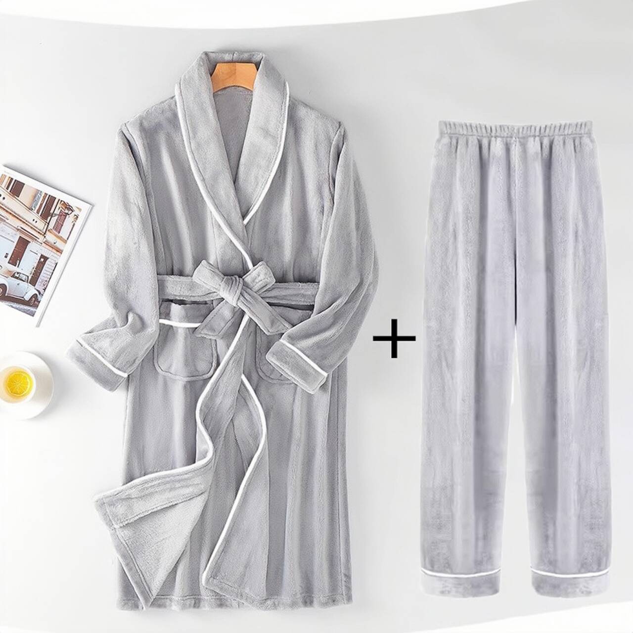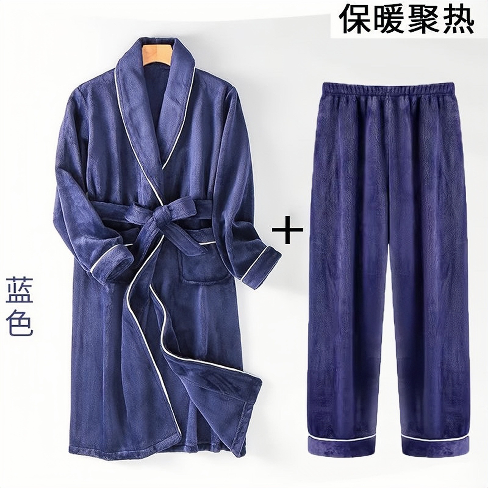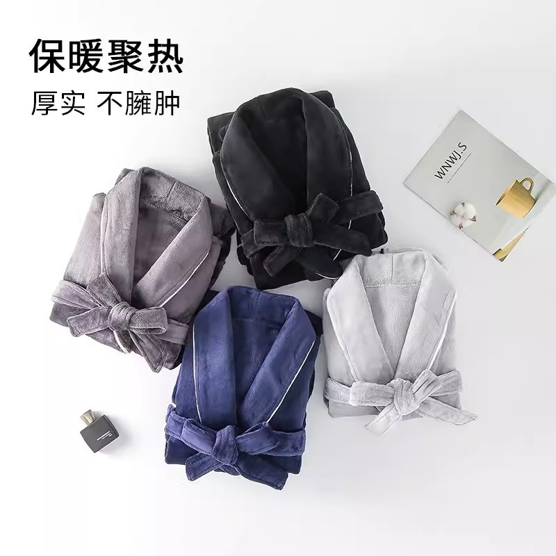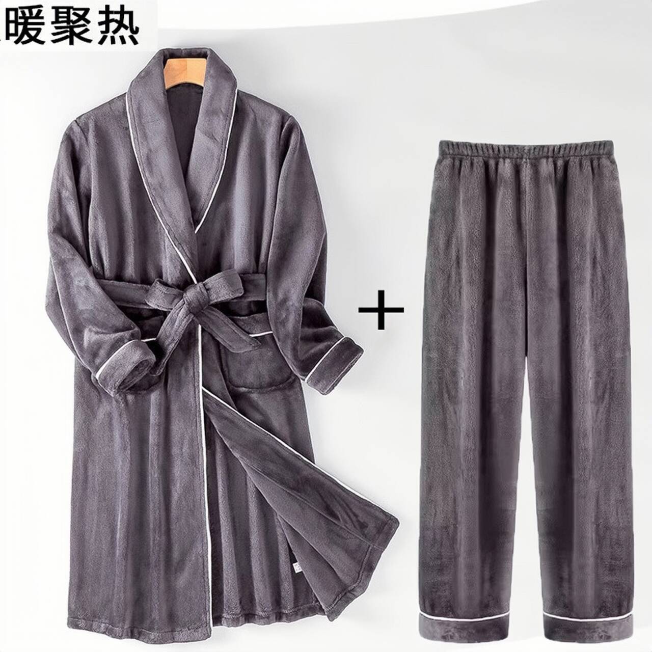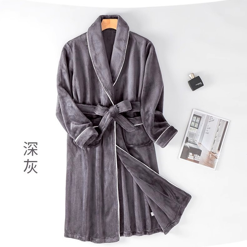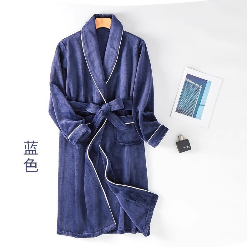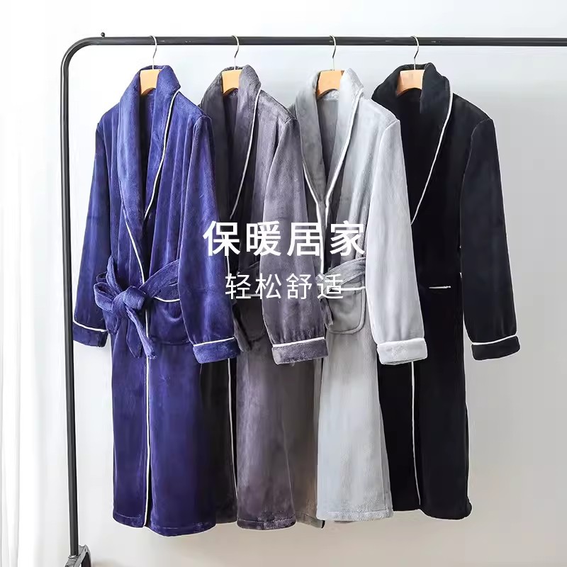 남자 잠옷 겨울 새로운 두꺼운 기모 플란넬 라셀 간단한 캐주얼 따뜻한 집 옷 아침 가운 목욕 가운스토어 가기