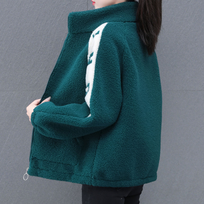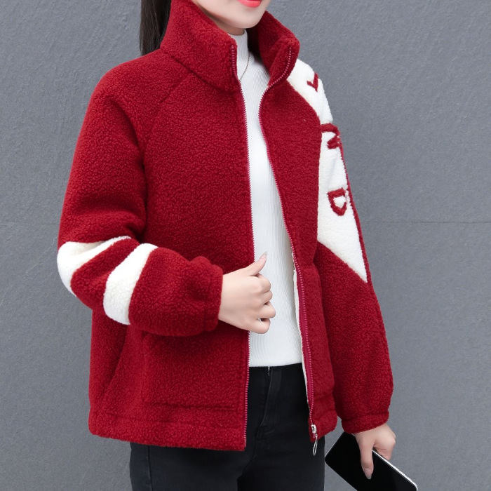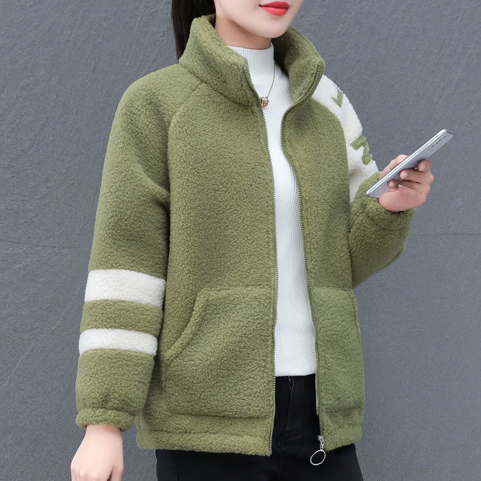 두꺼운 코트는 따뜻하고 패셔너블합니다. 2025 새로운 유럽 스테이션 셰르파 여성용 그레인 벨벳 겨울 루즈 코트 트렌디