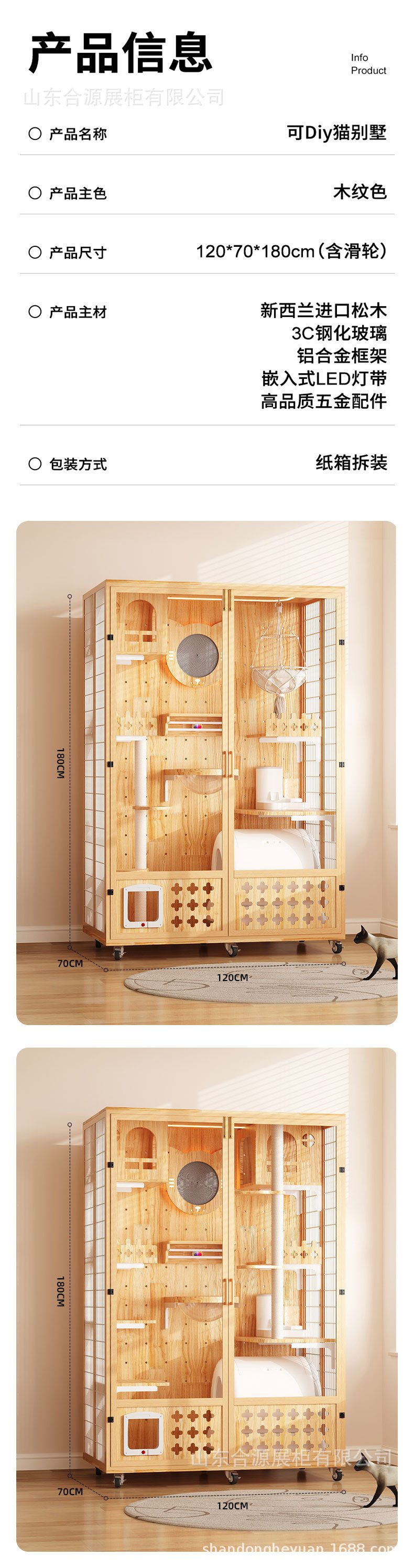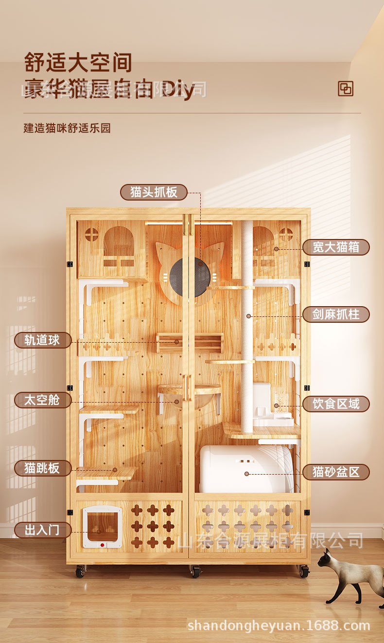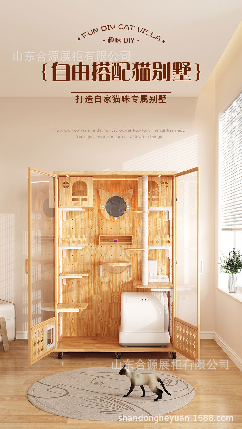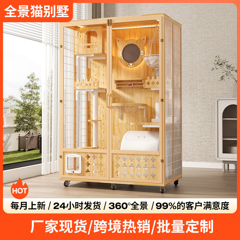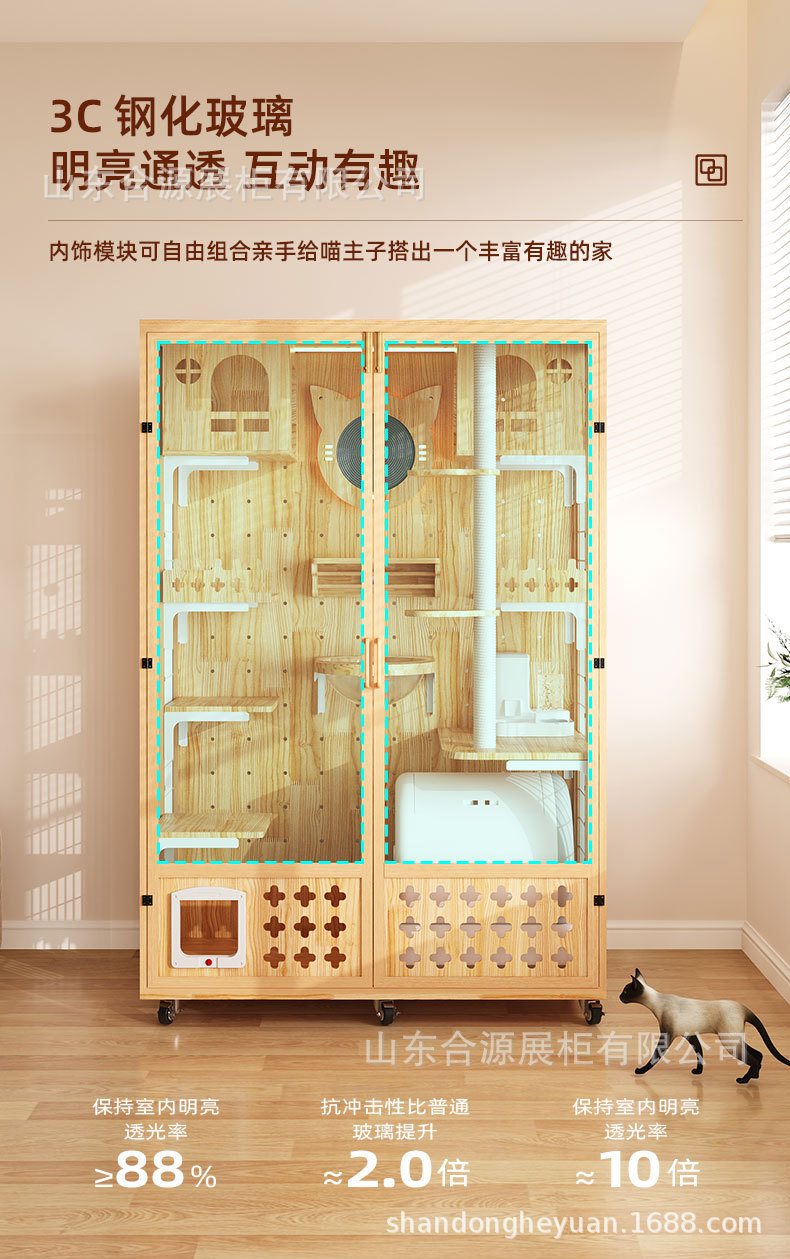 대형 고양이 둥지 빌라, 고양이 집, 가정용 고급 고양이 케이지, 유리로 된 대형 고양이 일체형 파노라마 목재 애완동물 둥지스토어 가기