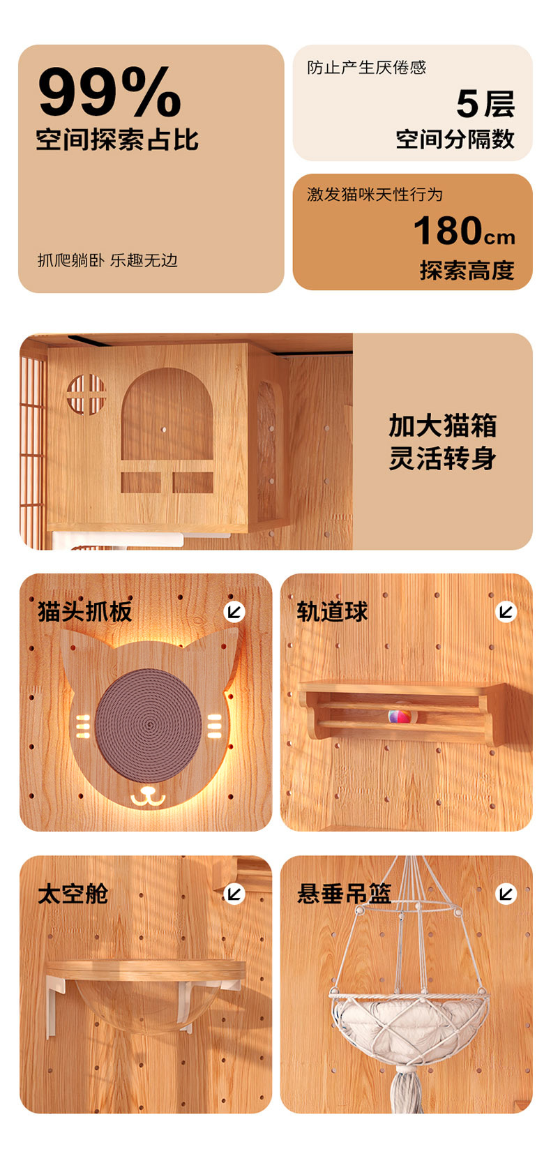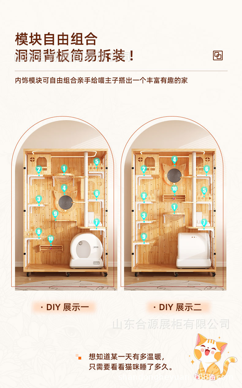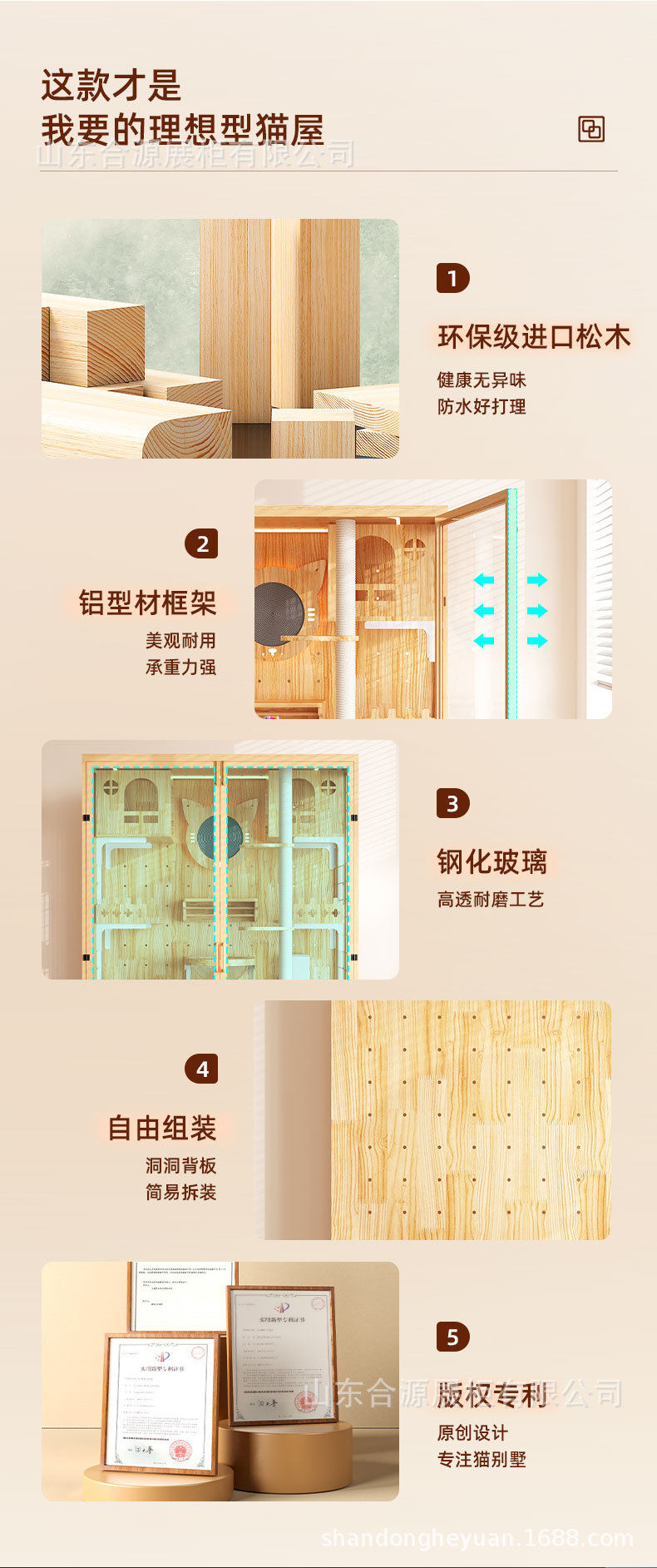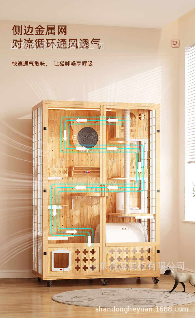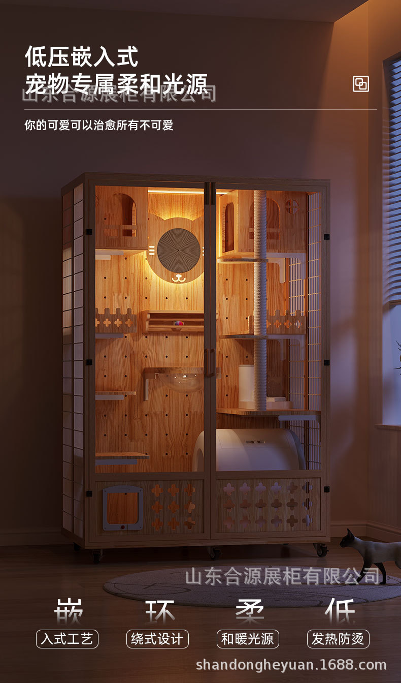 대형 고양이 둥지 빌라, 고양이 집, 가정용 고급 고양이 케이지, 유리로 된 대형 고양이 일체형 파노라마 목재 애완동물 둥지스토어 가기
