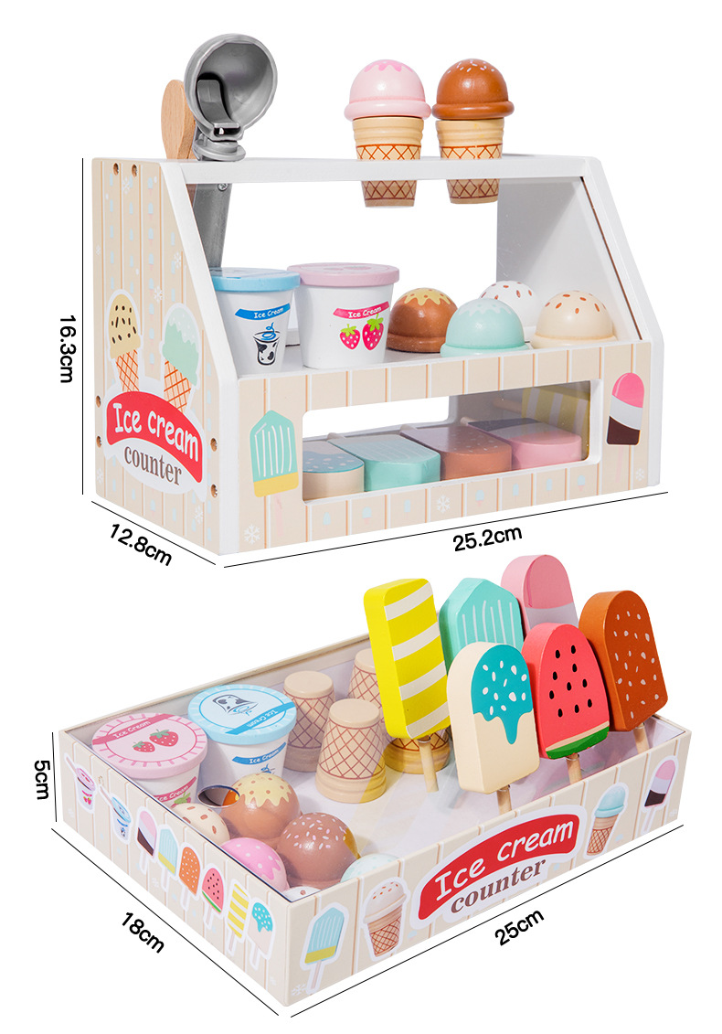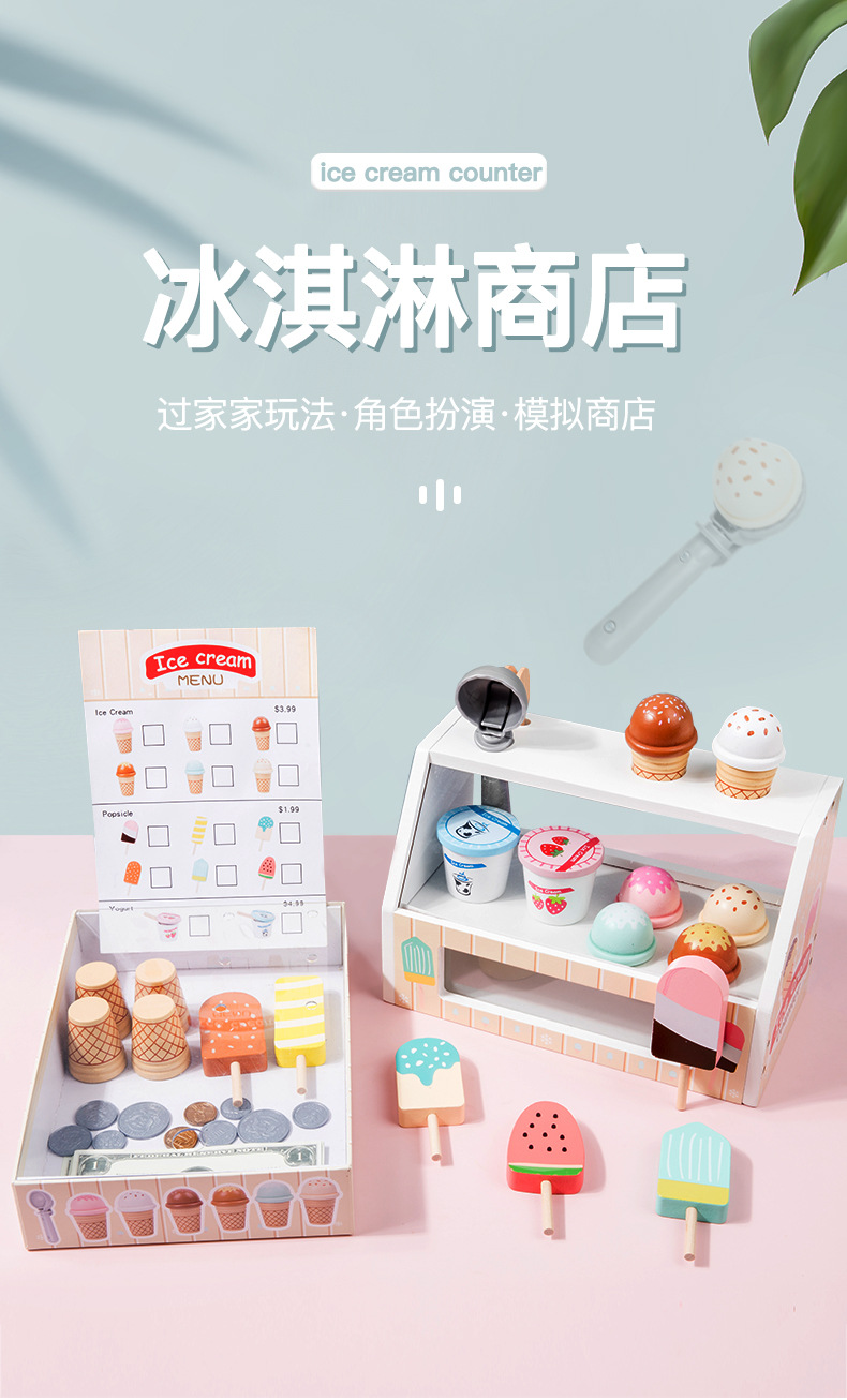 새로운 목조 놀이 집 아이스크림 가게 어린이 시뮬레이션 부모-자식 대화 형 아기 롤 플레잉 장난감스토어 가기