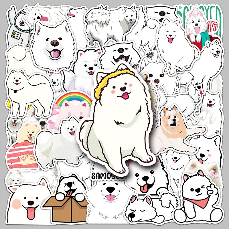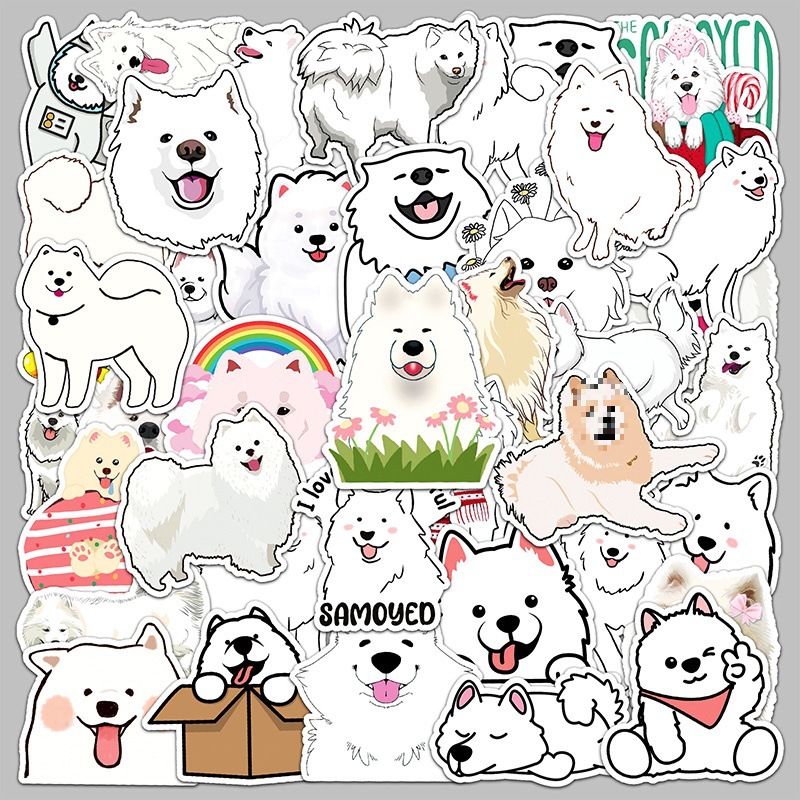슈퍼 비용 효과적인 100 만화 귀여운 Samoyed 스티커 귀여운 강아지 Yeye 장식 휴대 전화 케이스 배치스토어 가기