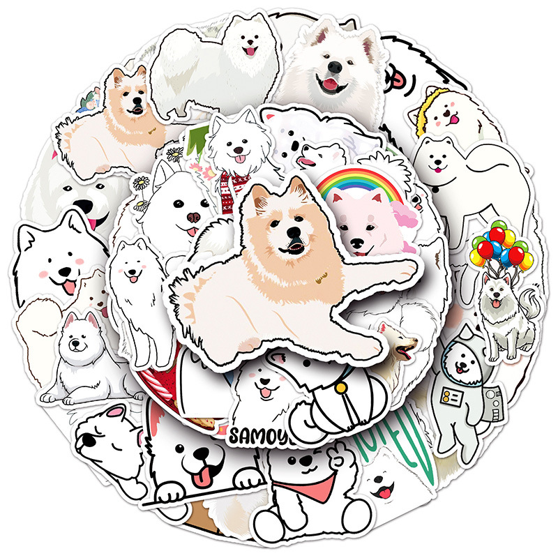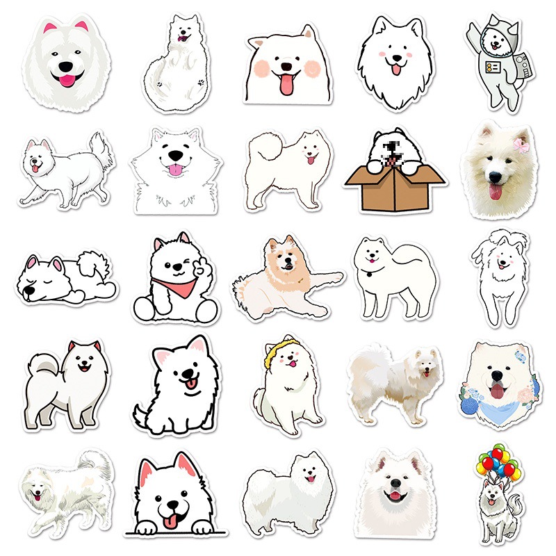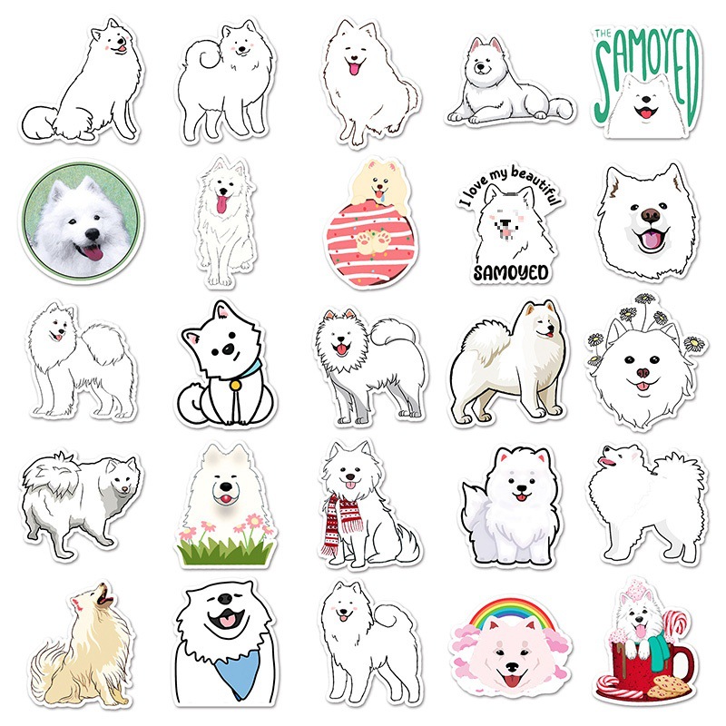 슈퍼 비용 효과적인 100 만화 귀여운 Samoyed 스티커 귀여운 강아지 Yeye 장식 휴대 전화 케이스 배치