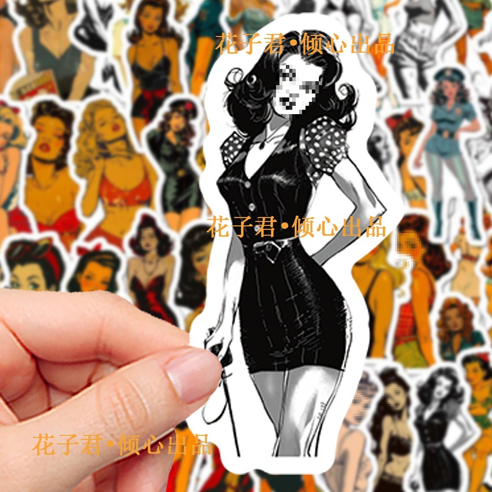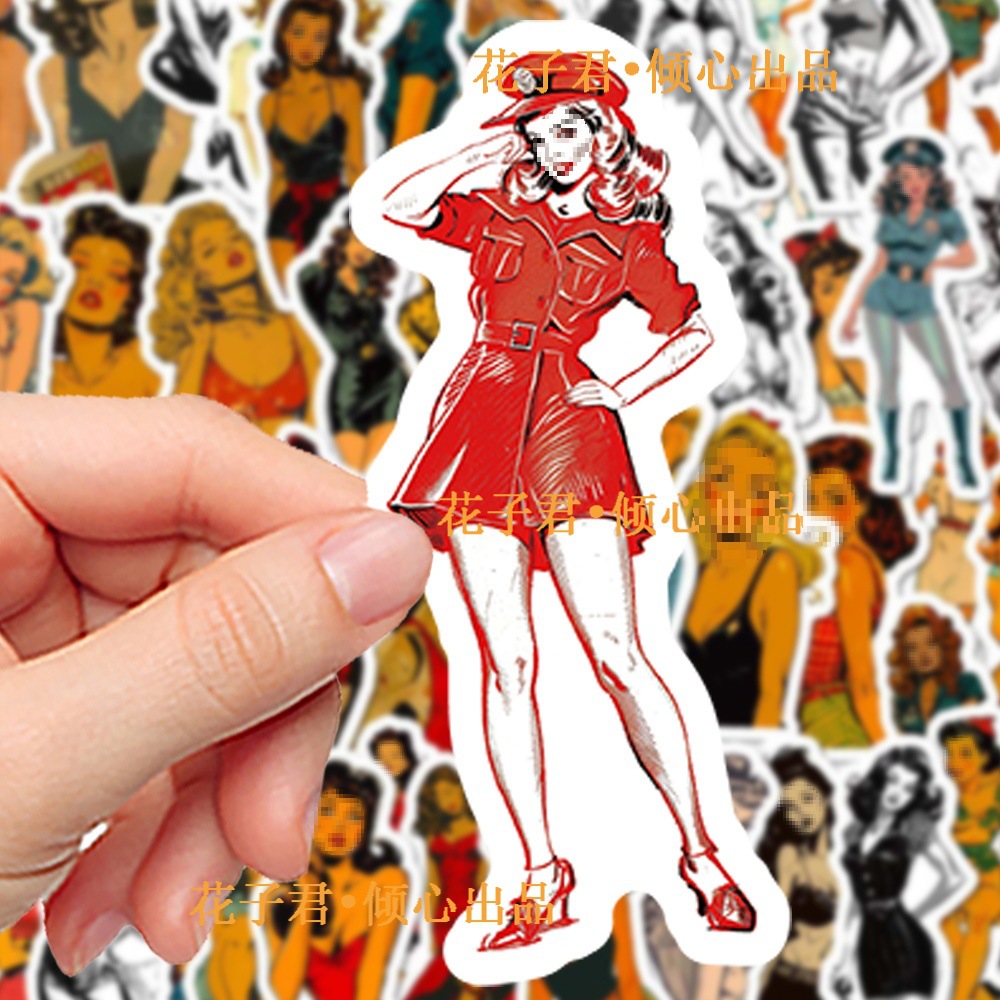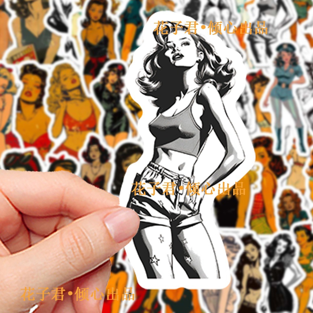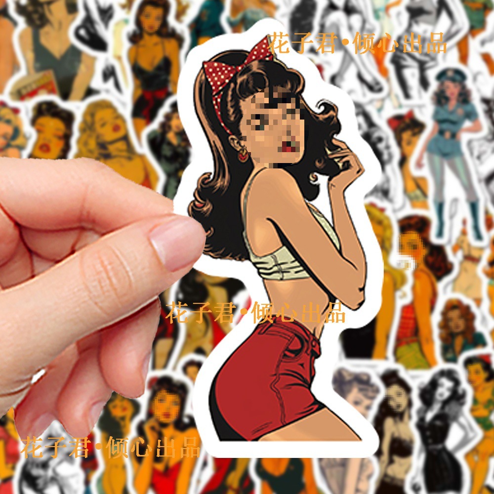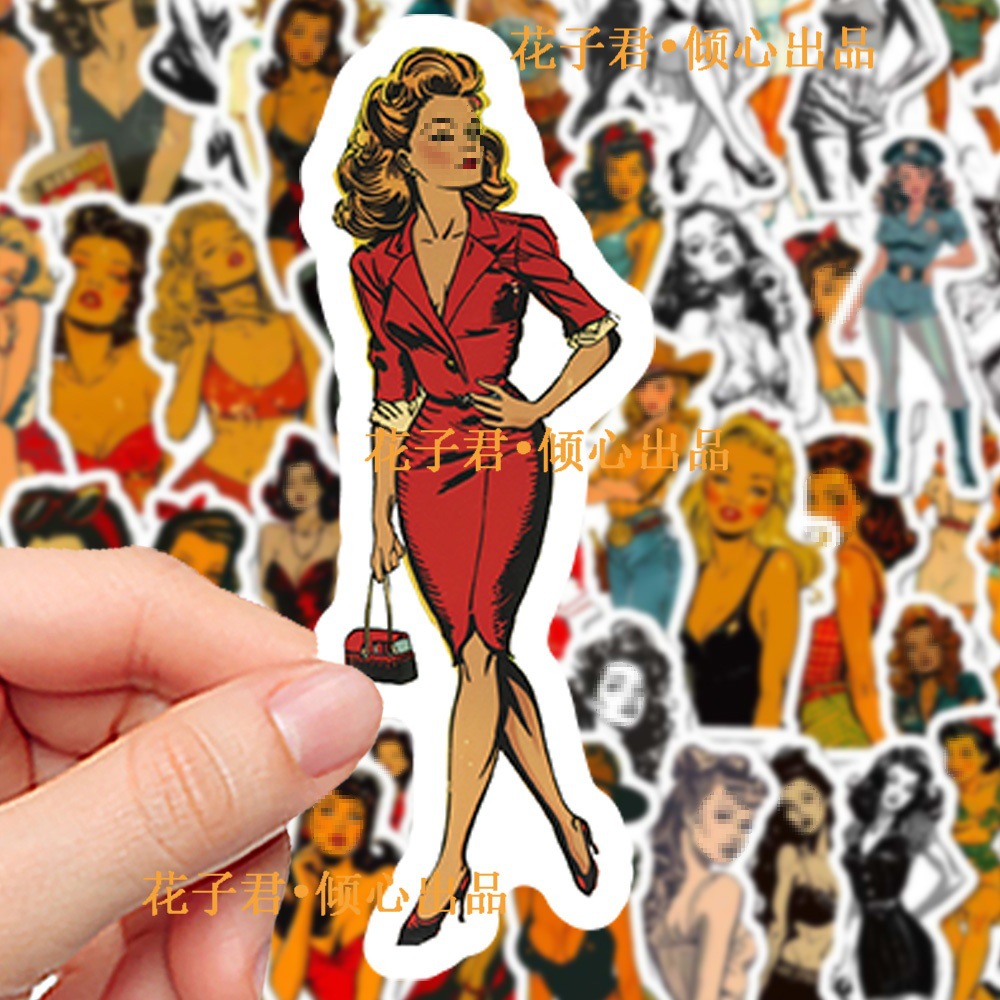 슈퍼 비용 효과적인 100 복고풍 소녀 스티커 만화 창조적 인 높은 색상 가치 장식 손 계정 휴대 전화 쉘 d 배치스토어 가기