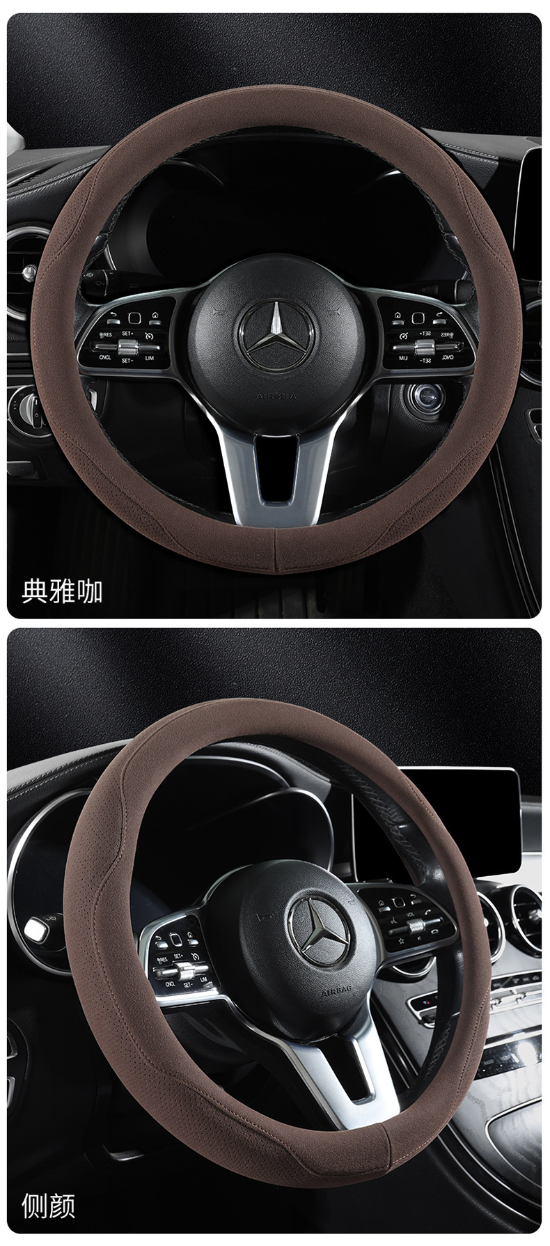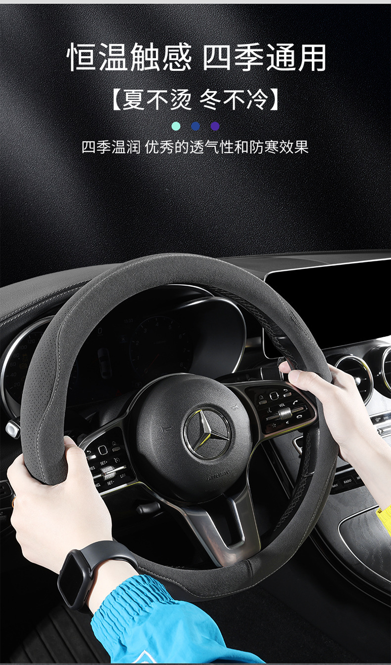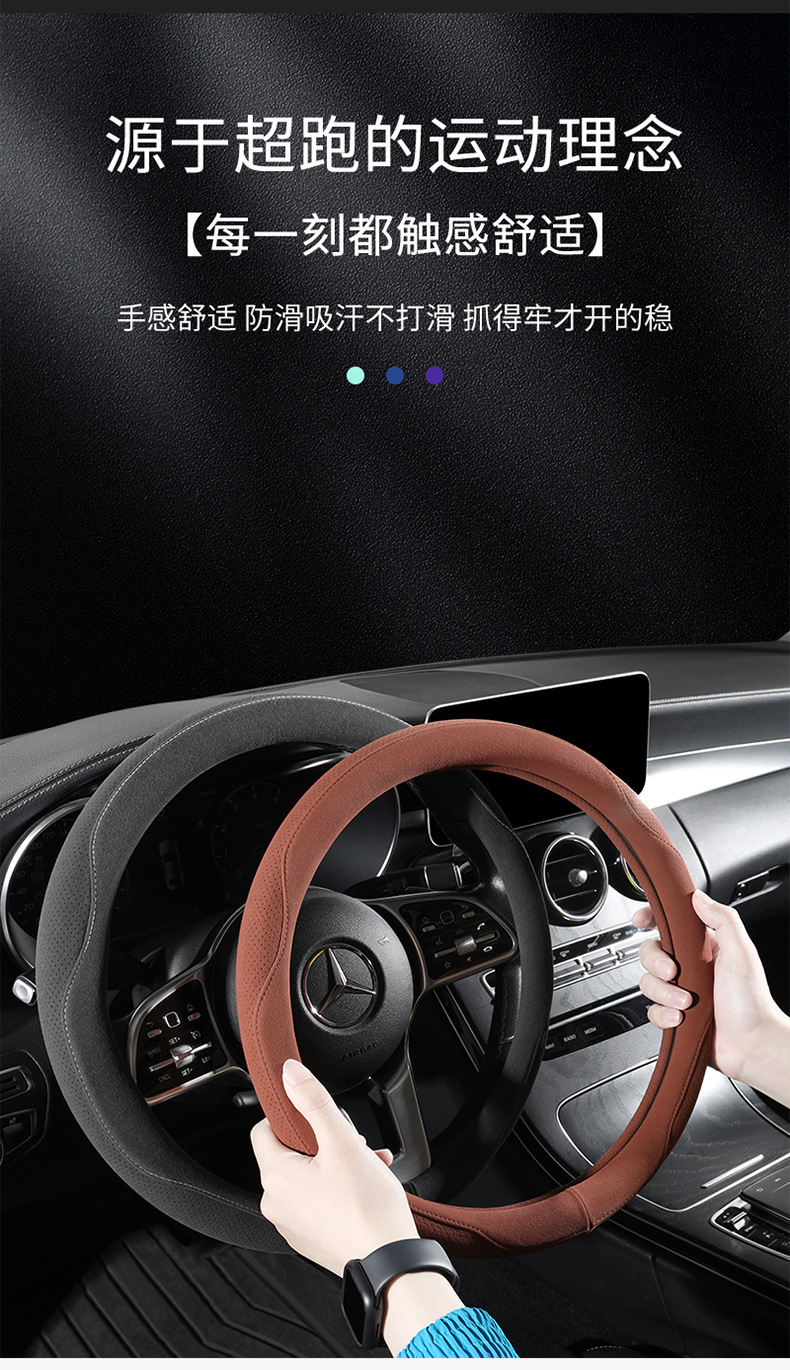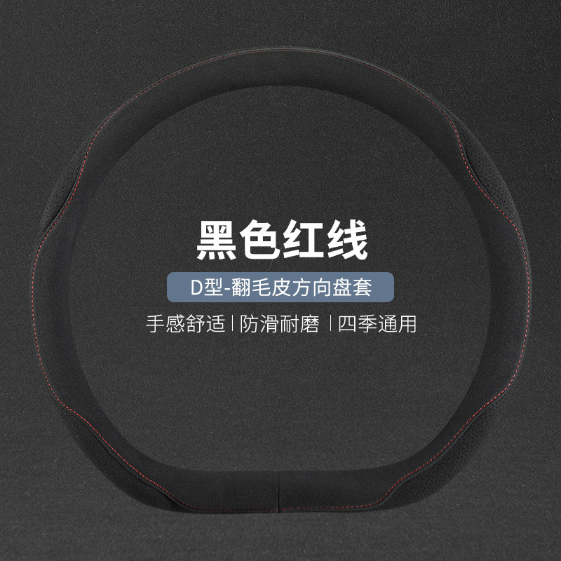 자동차 스티어링 휠 커버 초박형 통기성 D 형 미끄럼 방지 스웨이드 핸들 커버 스웨이드 남성과 여성의 여름 4 시즌 유니버설스토어 가기