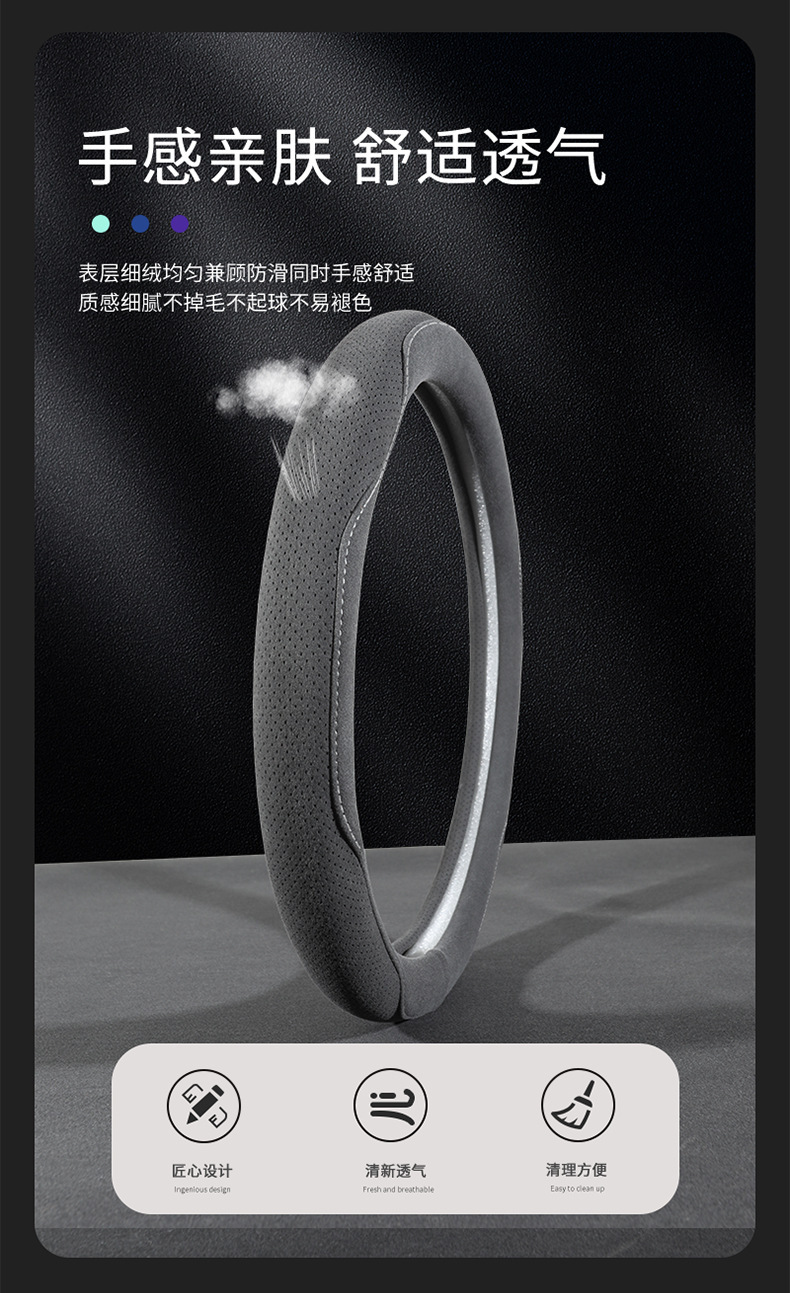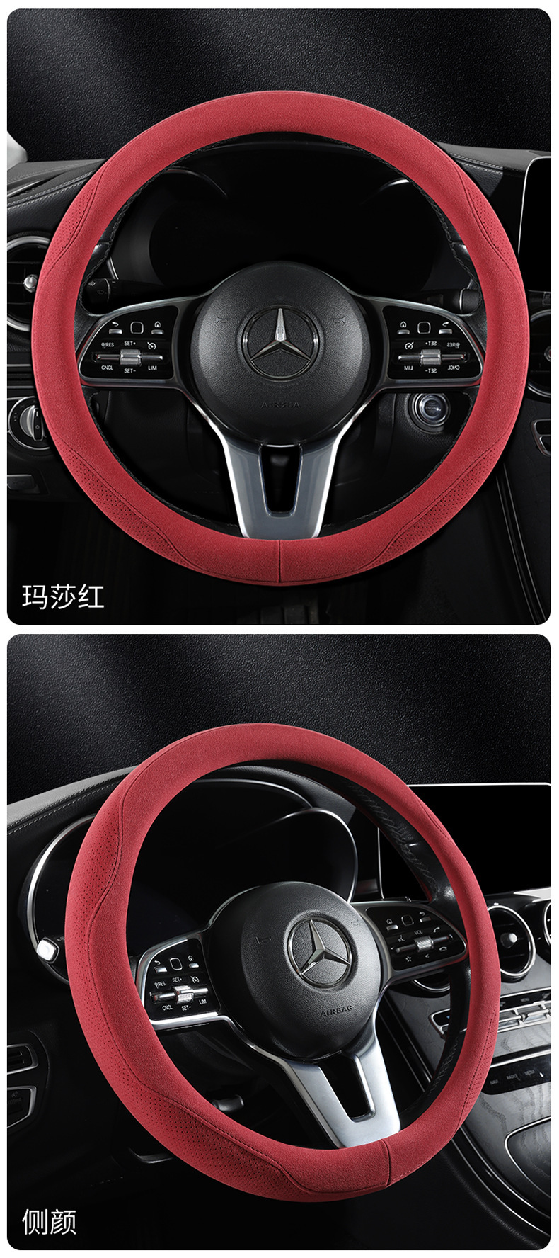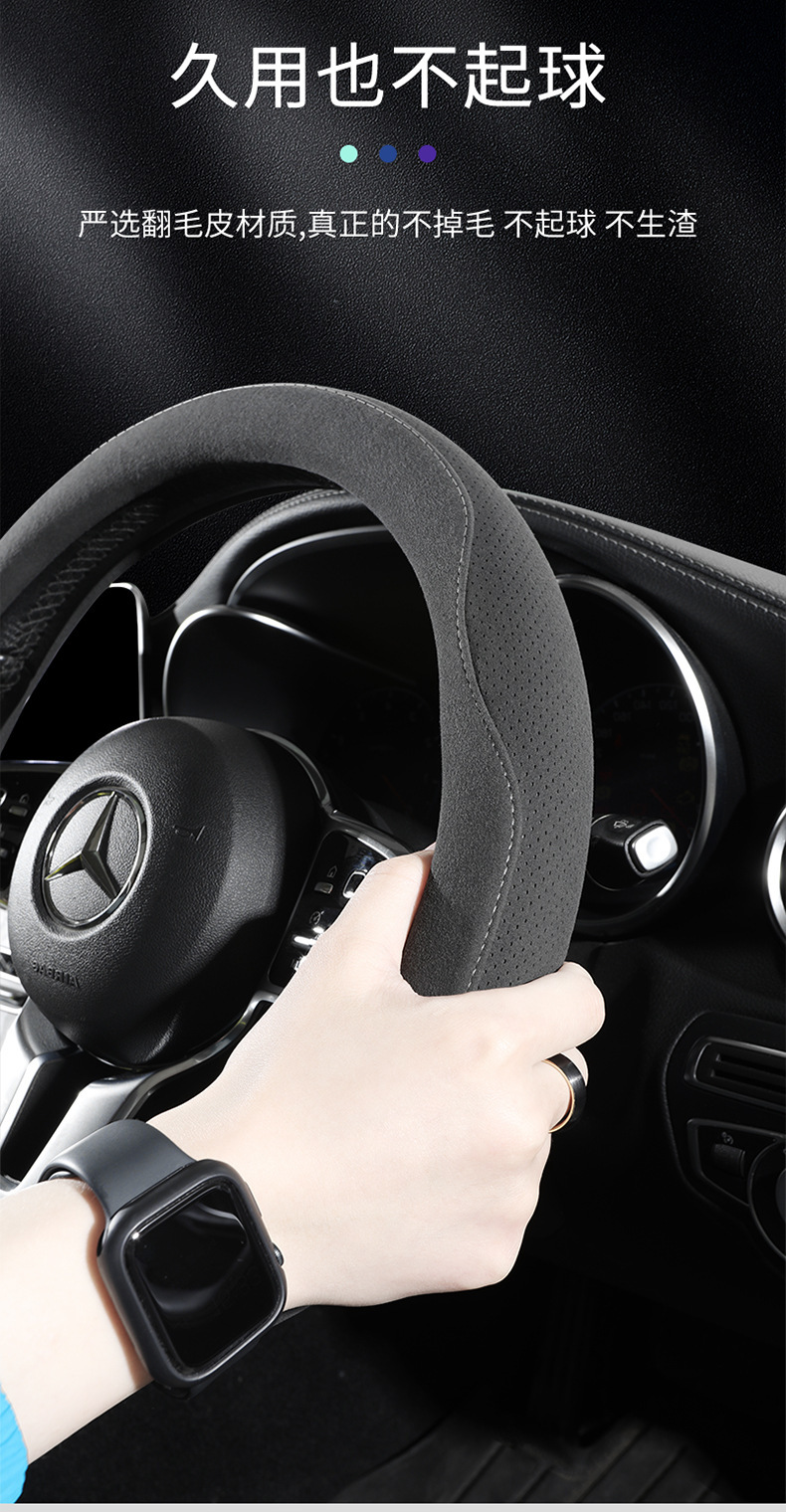 자동차 스티어링 휠 커버 초박형 통기성 D 형 미끄럼 방지 스웨이드 핸들 커버 스웨이드 남성과 여성의 여름 4 시즌 유니버설스토어 가기