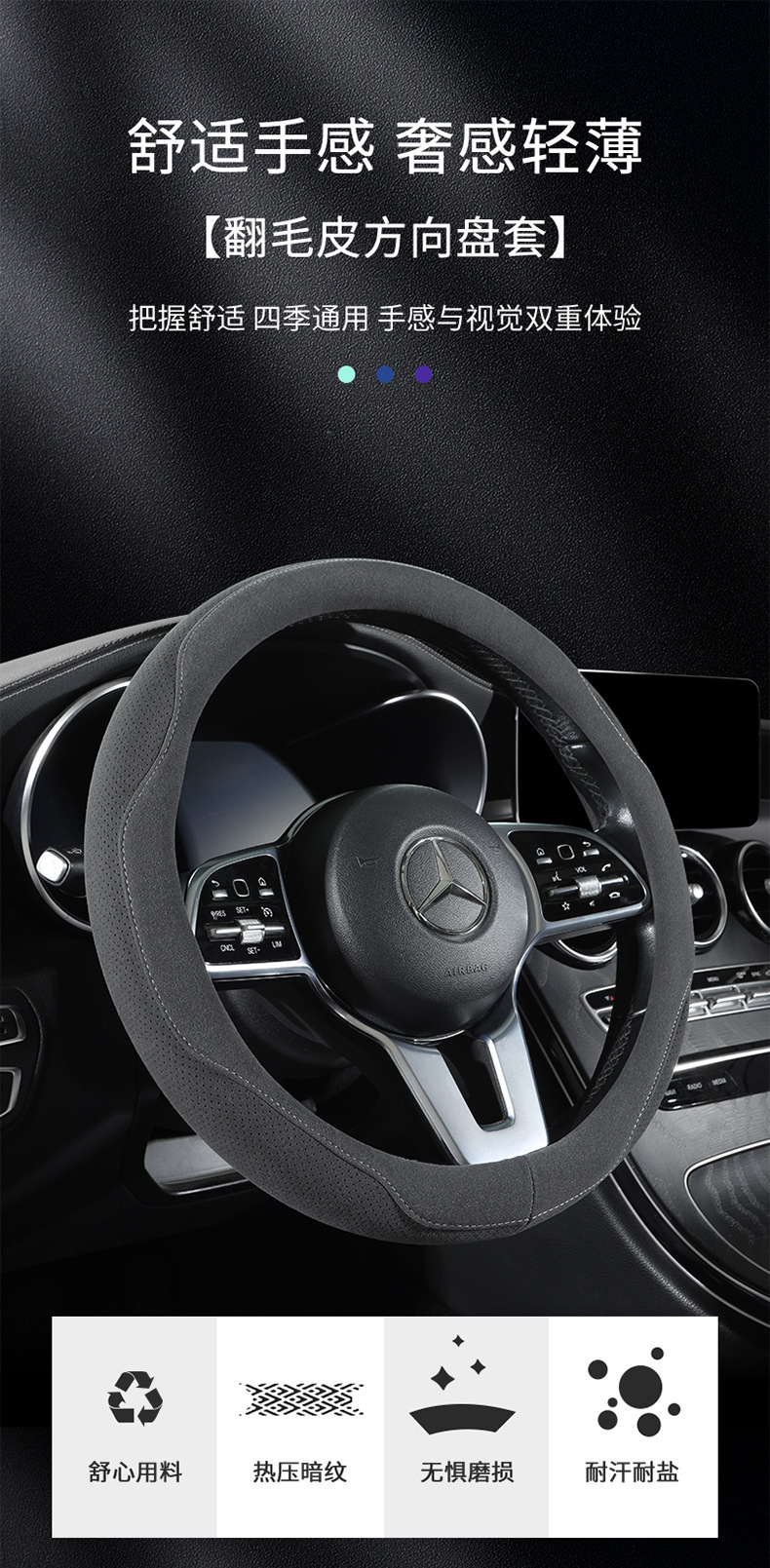 자동차 스티어링 휠 커버 초박형 통기성 D 형 미끄럼 방지 스웨이드 핸들 커버 스웨이드 남성과 여성의 여름 4 시즌 유니버설