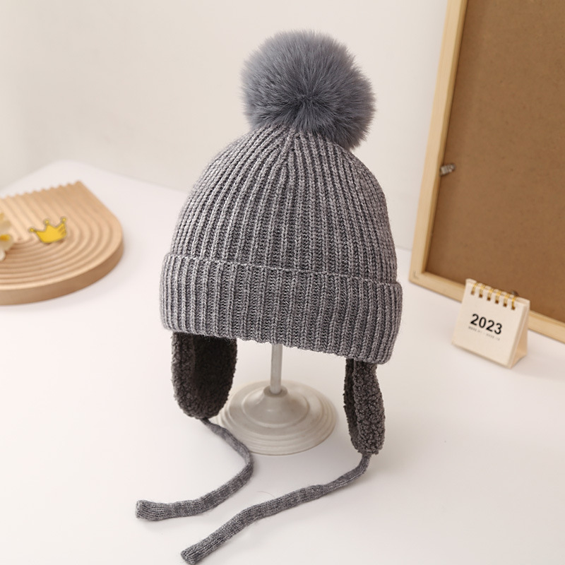 • 그레이 벨벳 귀 보호 단색 모직 모자 + 3세 - 10세 + 50 - 54cm