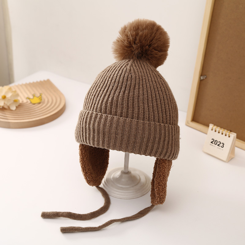 • 브라운 벨벳 귀 보호 단색 모직 모자 + 3세 - 10세 + 50 - 54cm