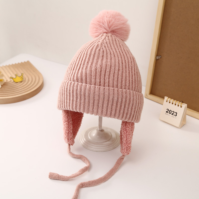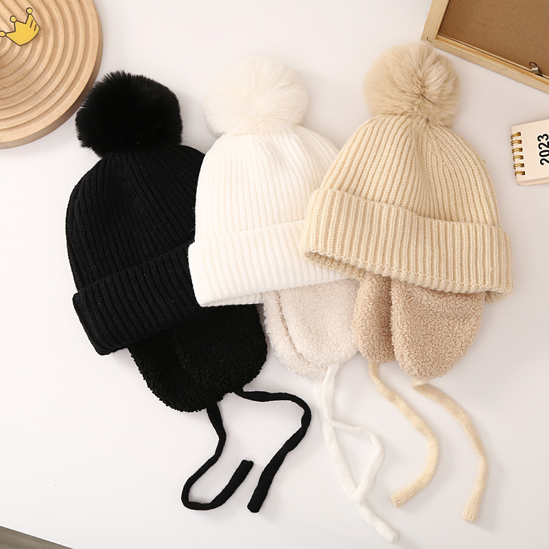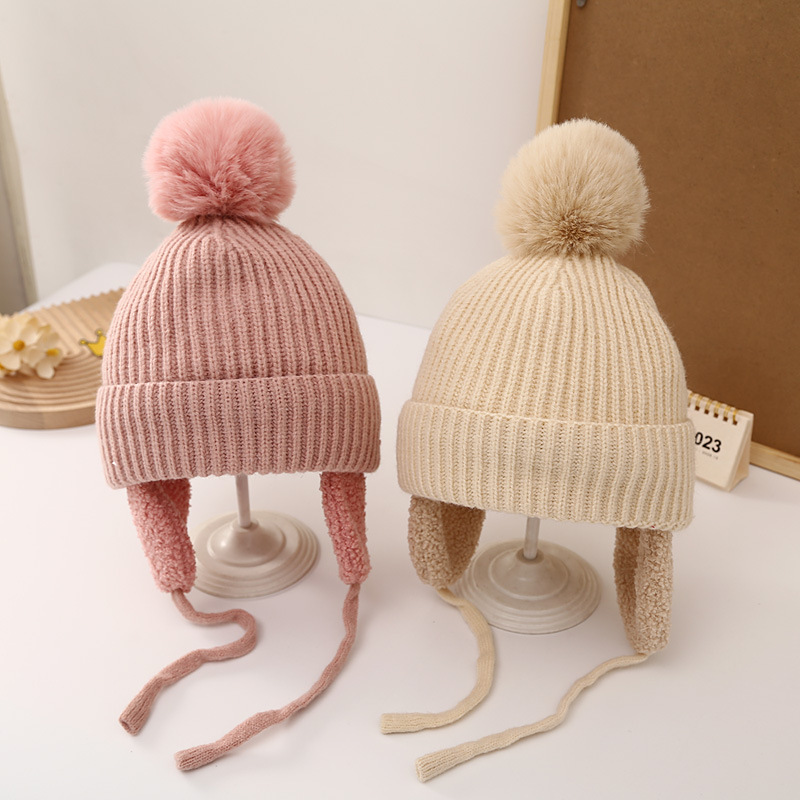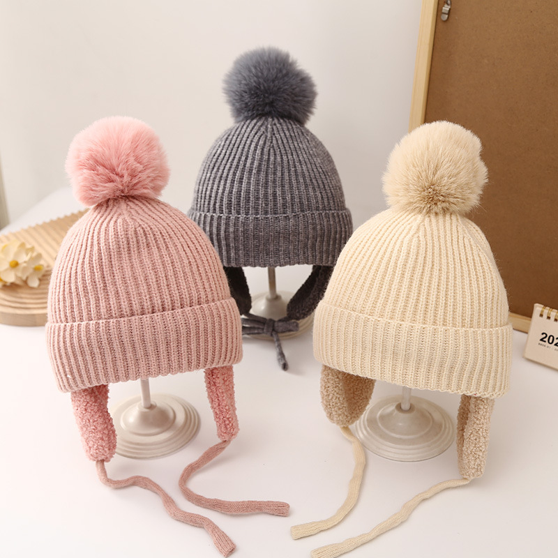소년 소녀를위한 어린이 모자 가을과 겨울 따뜻한 모자 아기 울 모자 부모-아이 기모 귀 보호 니트 레이 펑 모자