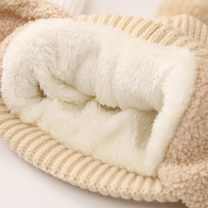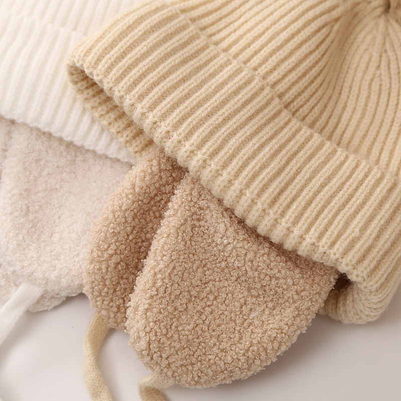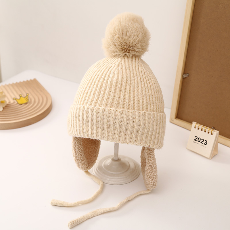 • 미색 벨벳 귀 보호 단색 모직 모자 + 3세 - 10세 + 50 - 54cm