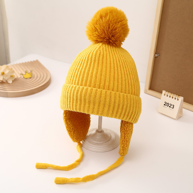• 노란색 벨벳 귀 보호 단색 모직 모자 + 3세 - 10세 + 50 - 54cm