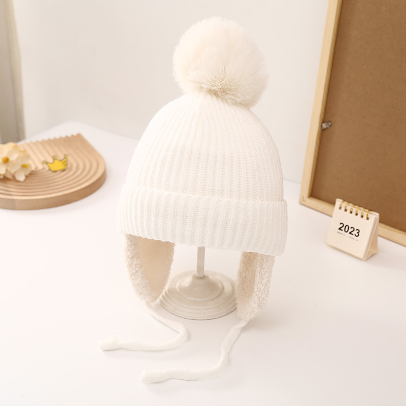 • 흰색 벨벳 귀 보호 단색 모직 모자 + 3세 - 10세 + 50 - 54cm
