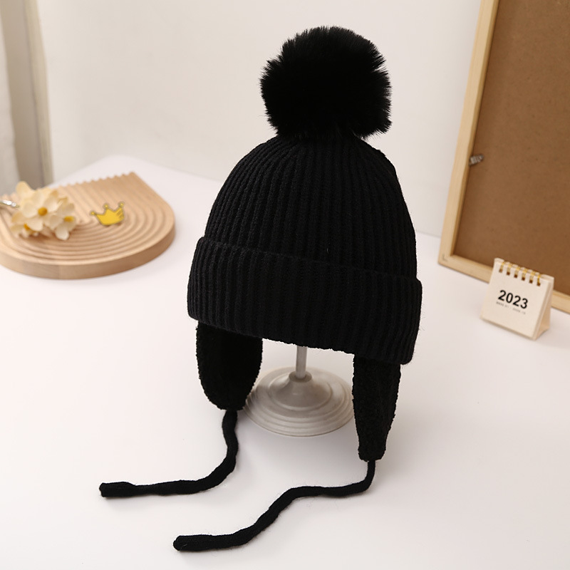 • 블랙 벨벳 귀 보호 솔리드 컬러 모직 모자 + 3세 - 10세 + 50 - 54cm