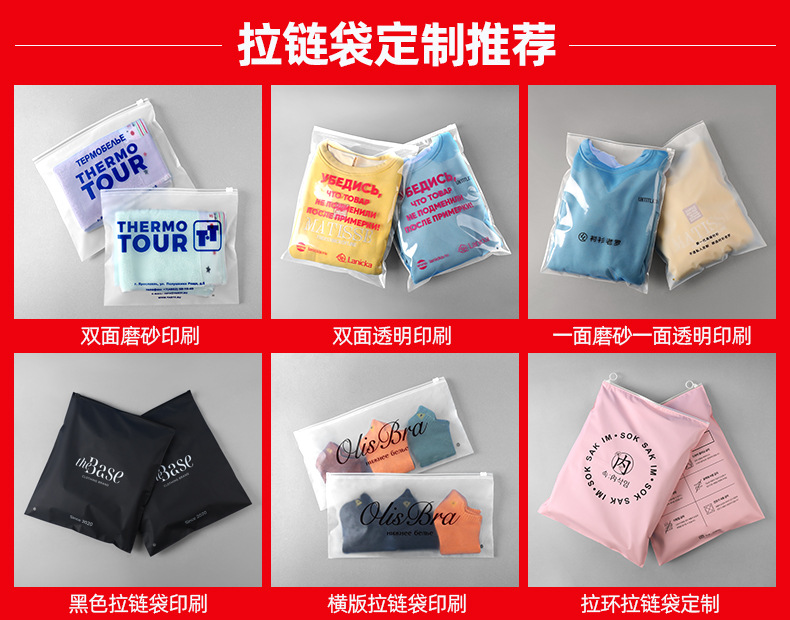 도매 재고 pe 지퍼 가방 프로스티드 의류 포장 가방 투명 속옷 양말 수건 짧은 소매 의류 포장 가방스토어 가기