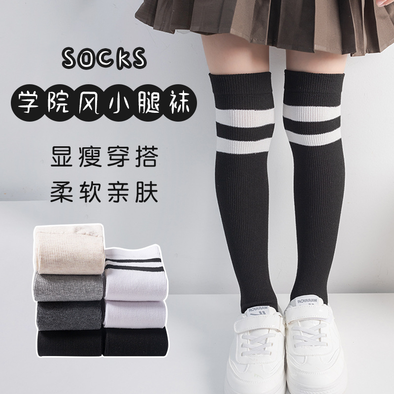 어린이 양말 봄과 가을 미끄럼 방지 학생 소녀 중간 길이 양말 복고풍 단색 아기 소녀 스타킹 가을 스택 양말스토어 가기