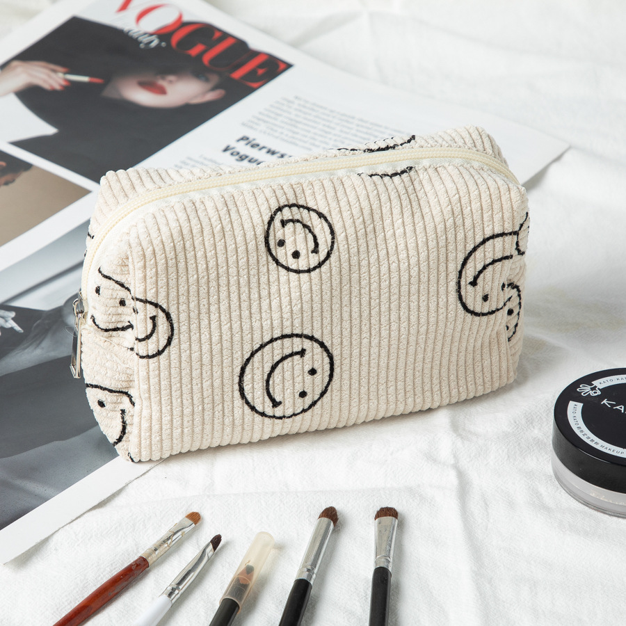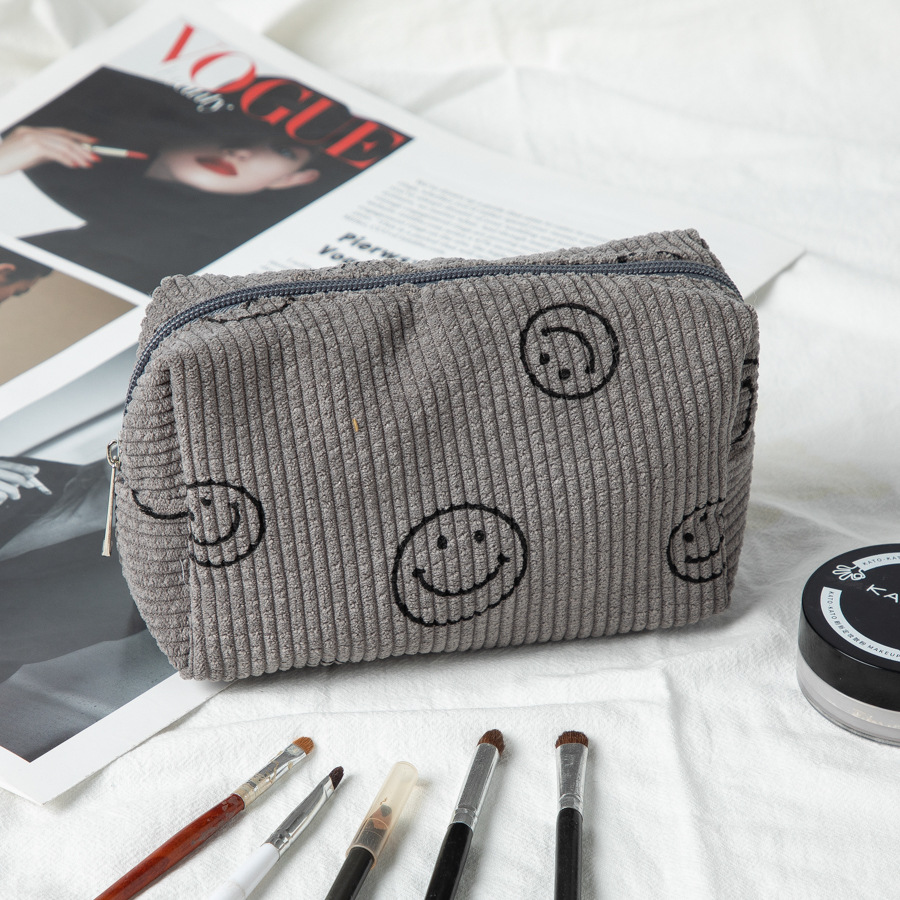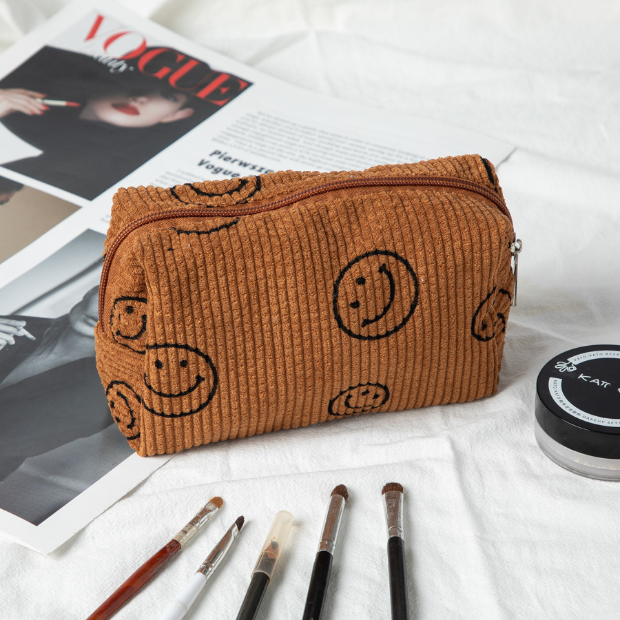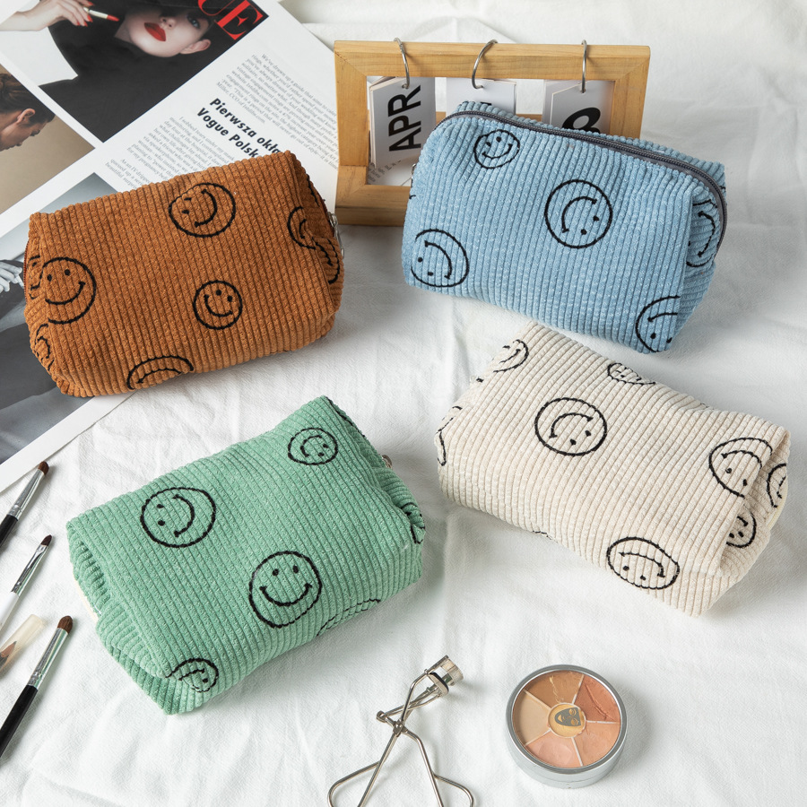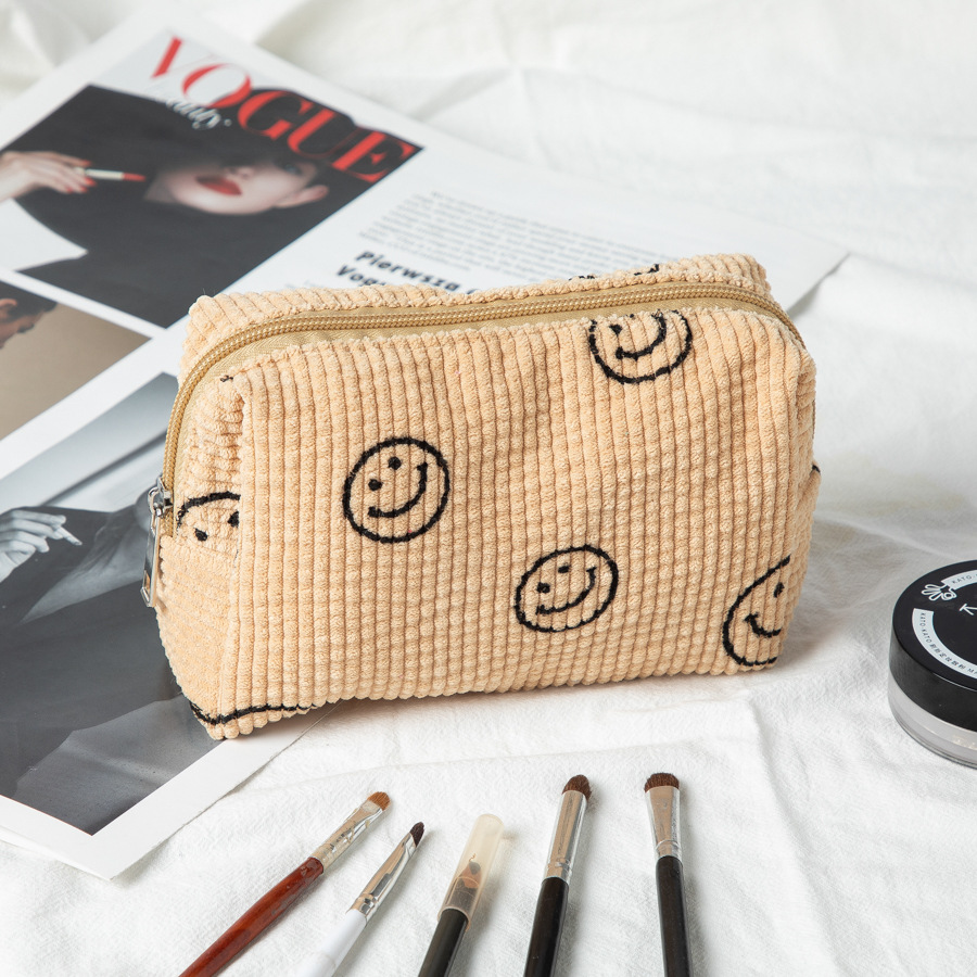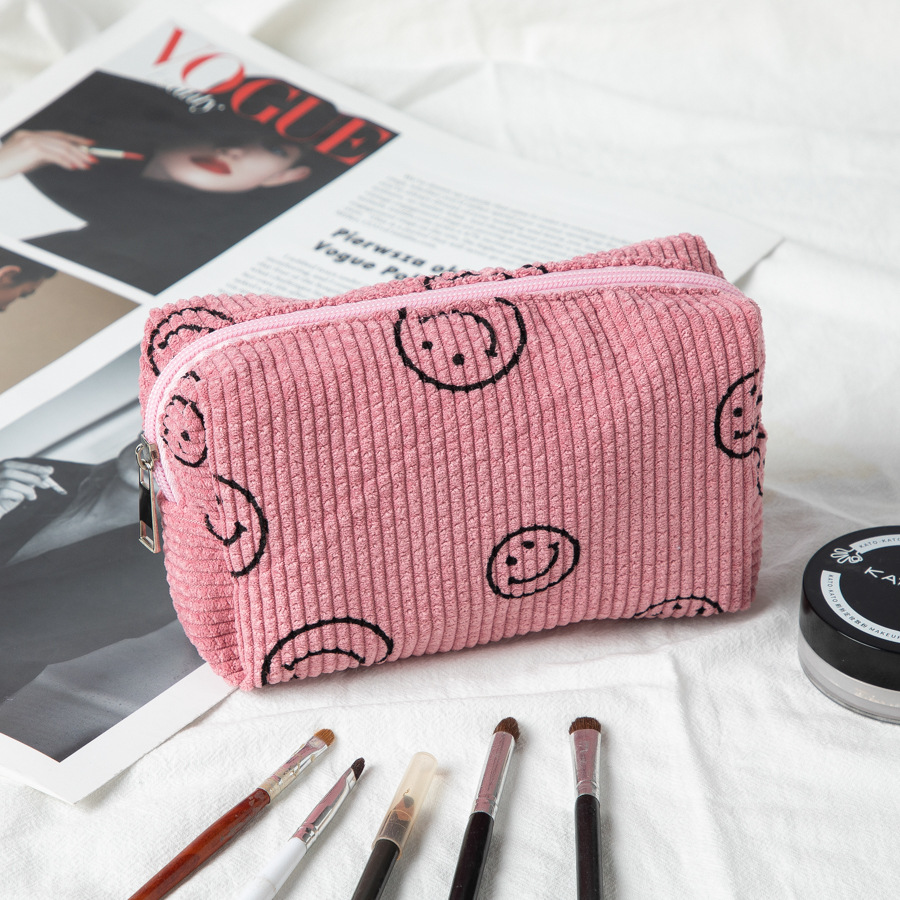 국경 간 스마일리 코듀로이 중형 화장품 가방 대용량 저장 워시 백 대학 스타일 여행 스토리지 스마일 백