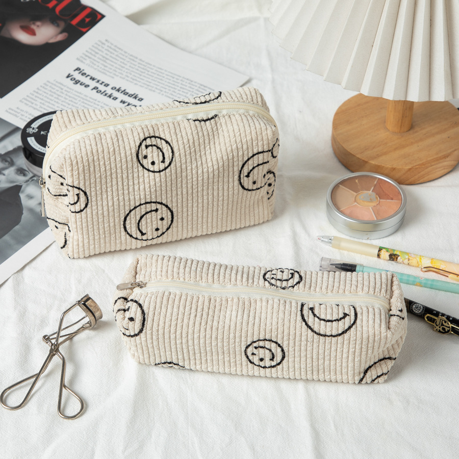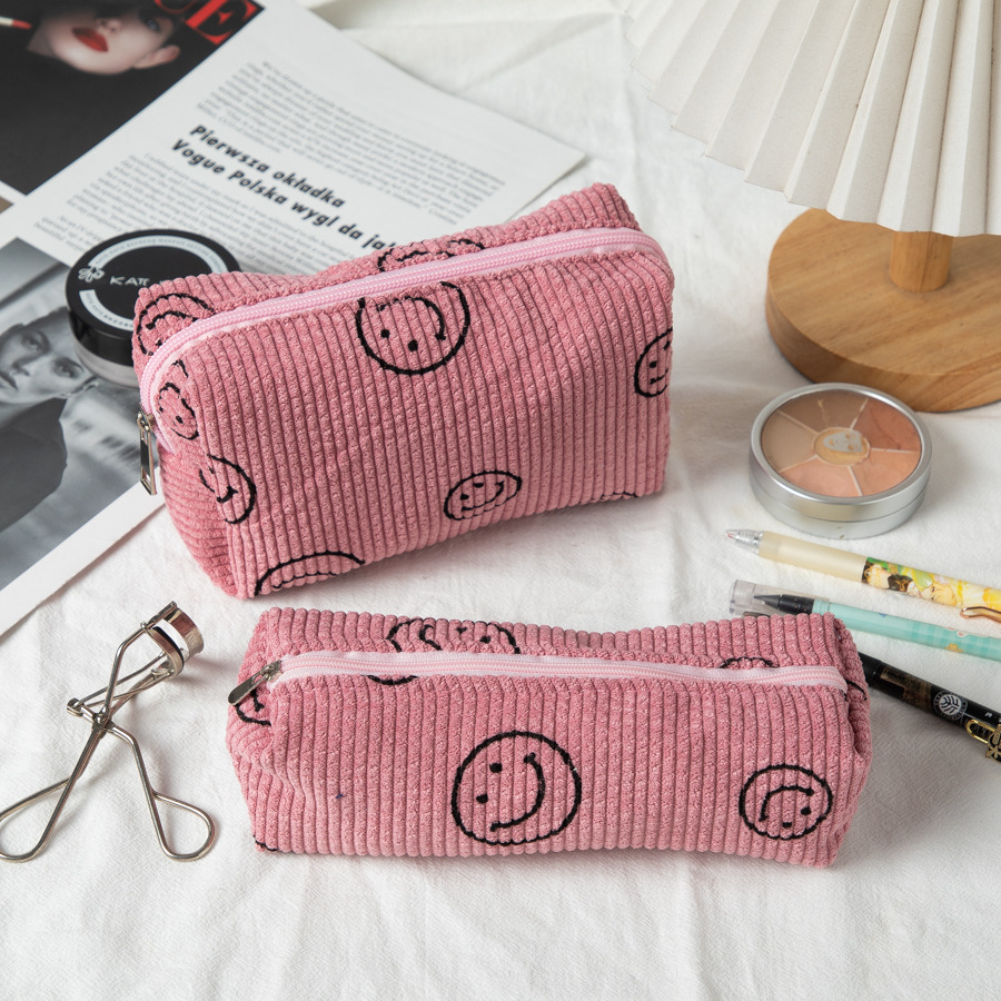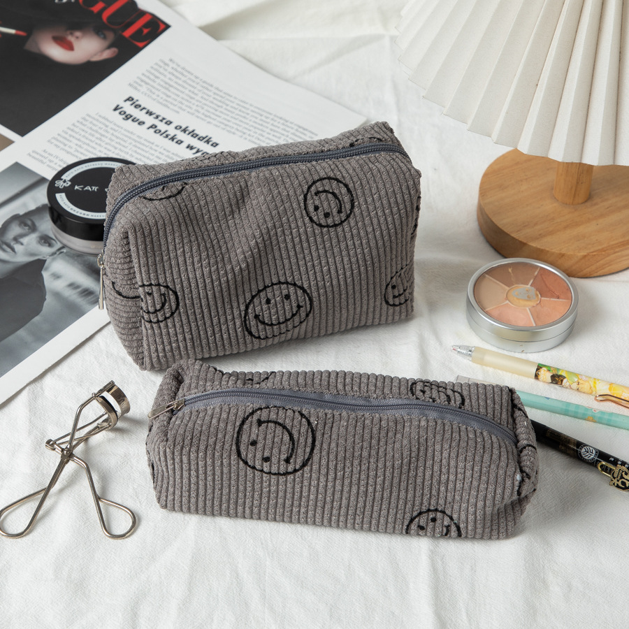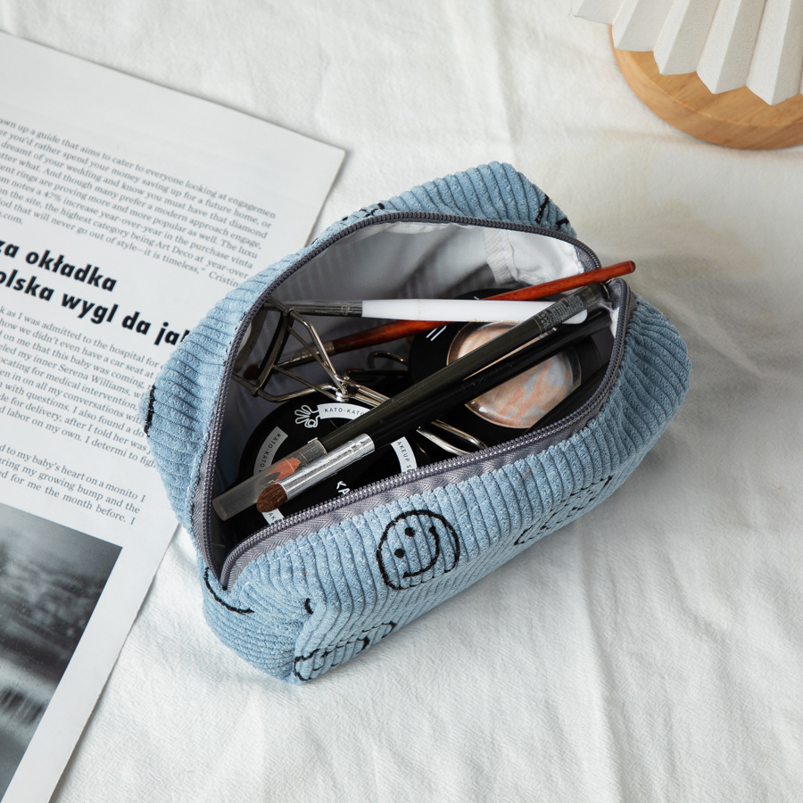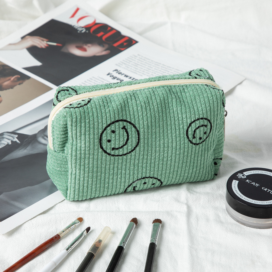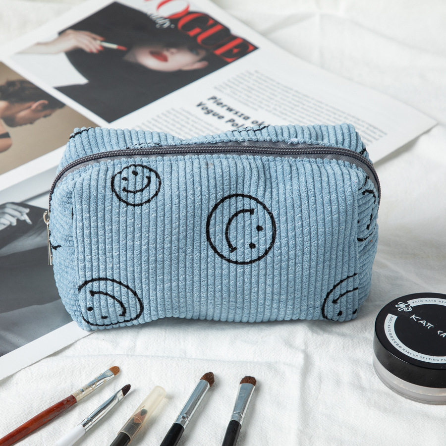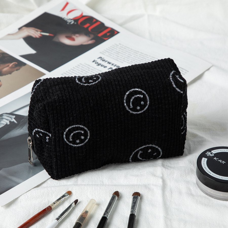 국경 간 스마일리 코듀로이 중형 화장품 가방 대용량 저장 워시 백 대학 스타일 여행 스토리지 스마일 백