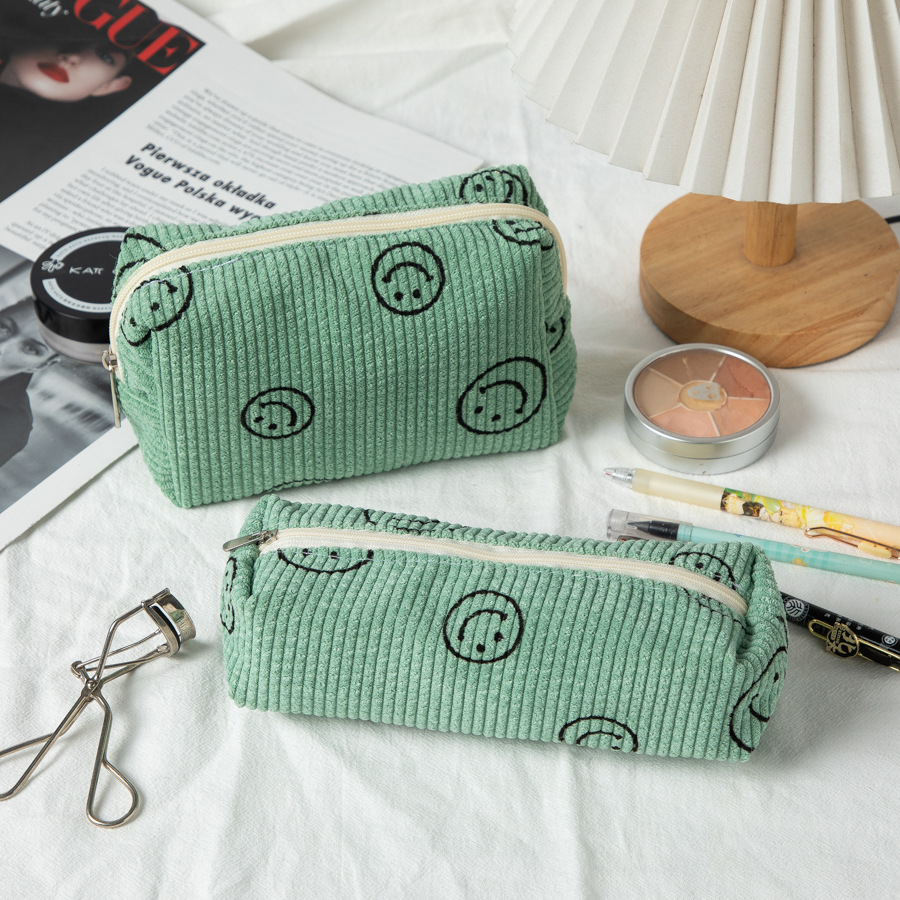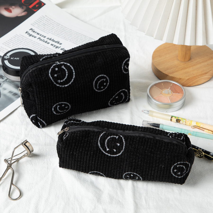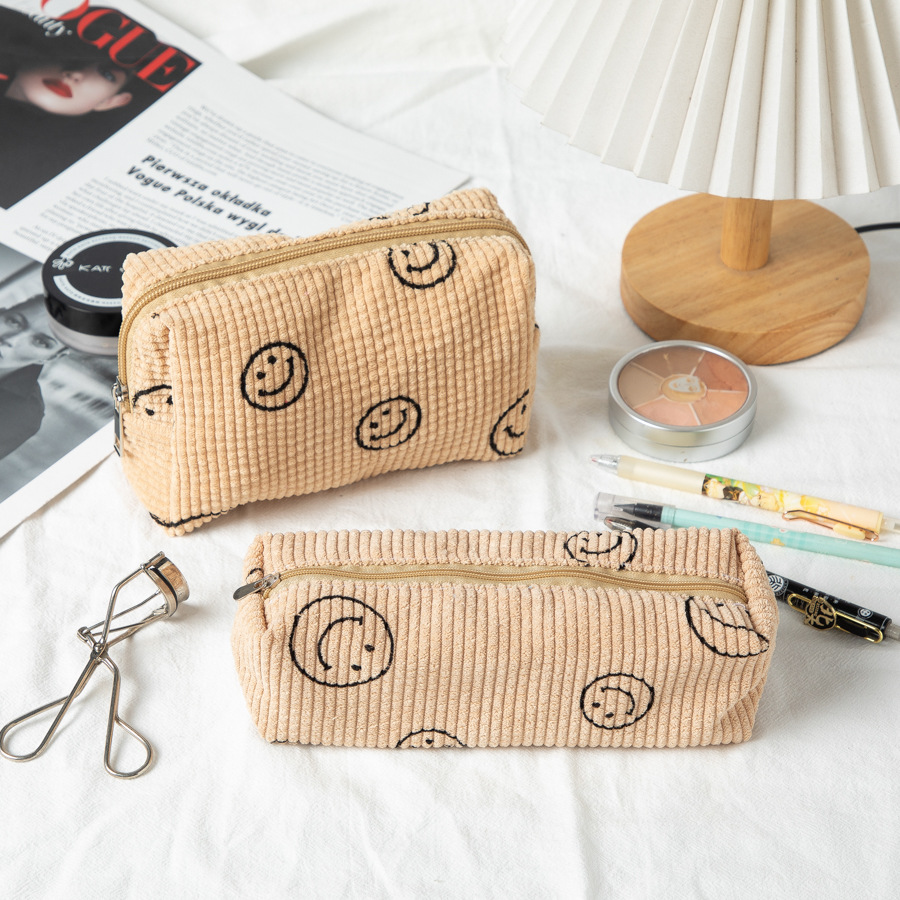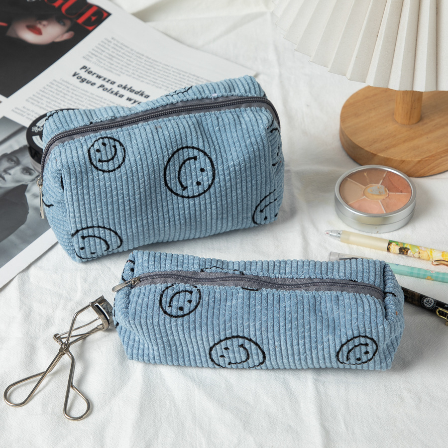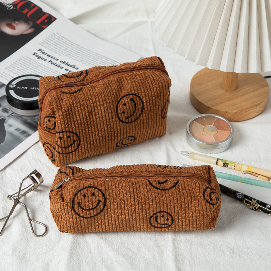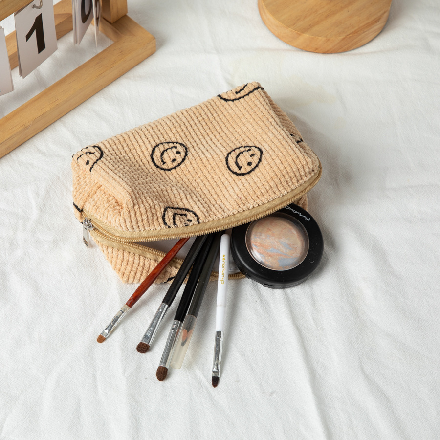 국경 간 스마일리 코듀로이 중형 화장품 가방 대용량 저장 워시 백 대학 스타일 여행 스토리지 스마일 백