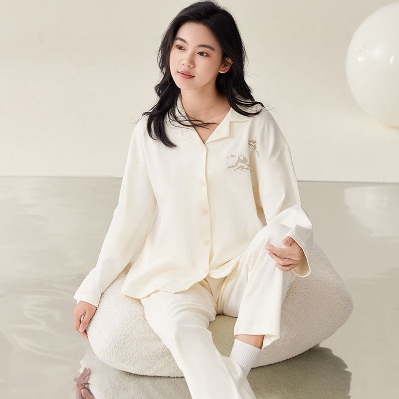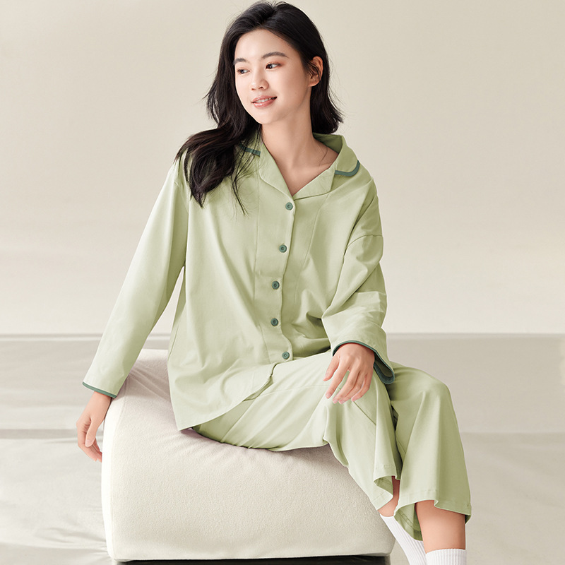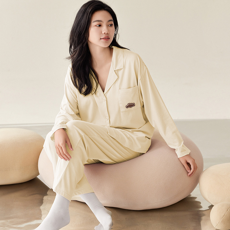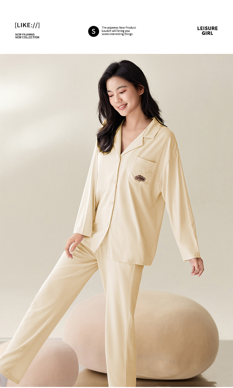 여성용 봄, 가을 모달 잠옷 가을 긴팔 카디건 라펠 루즈 여성 홈웨어 세트 얇은 한국 스타일 여성스토어 가기