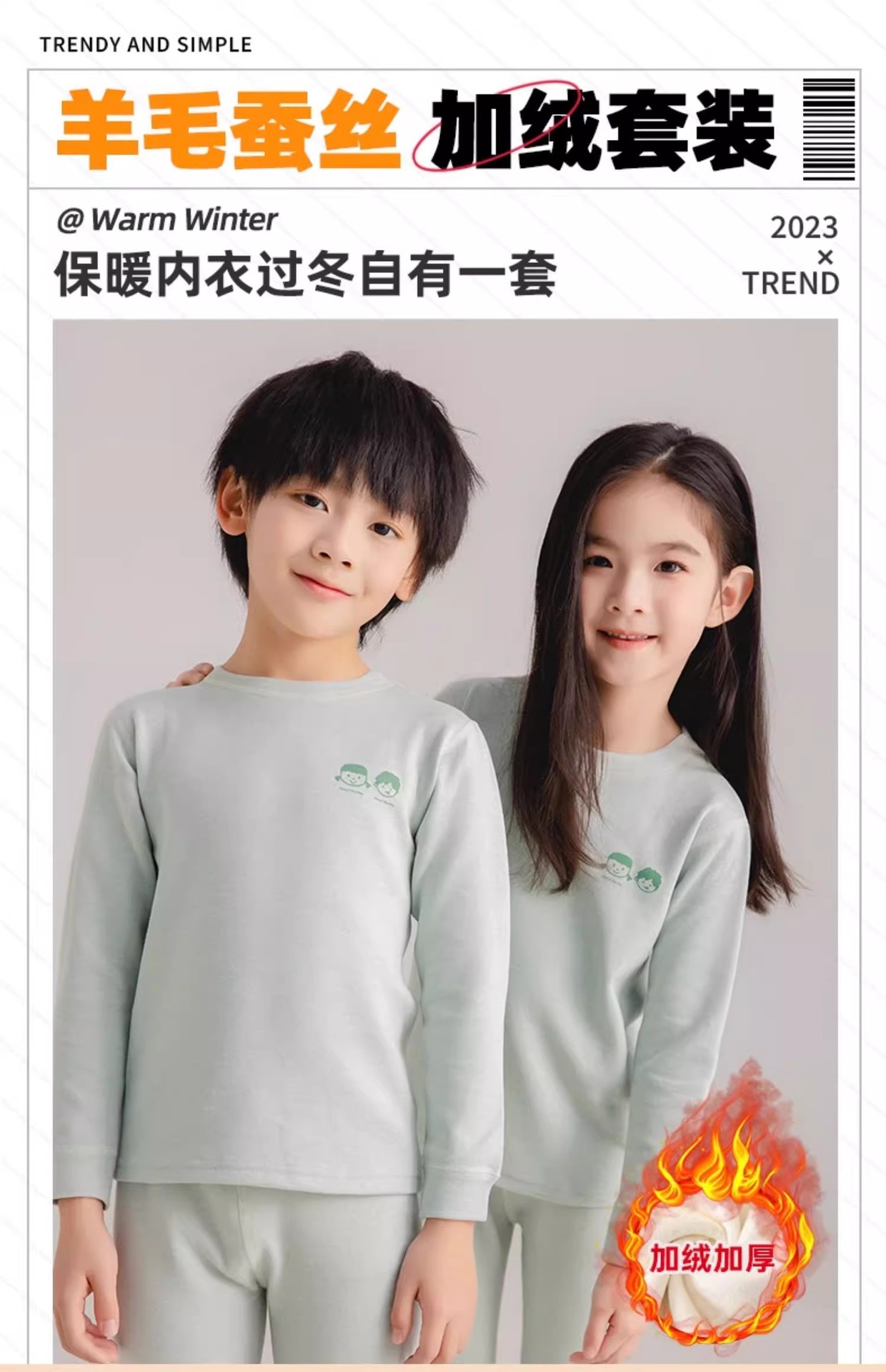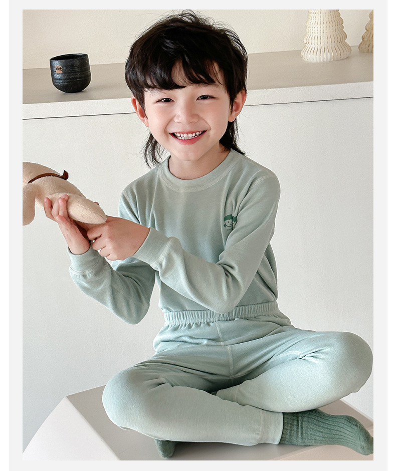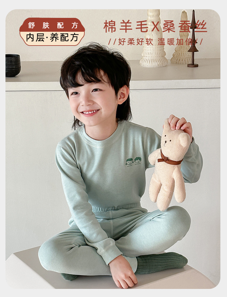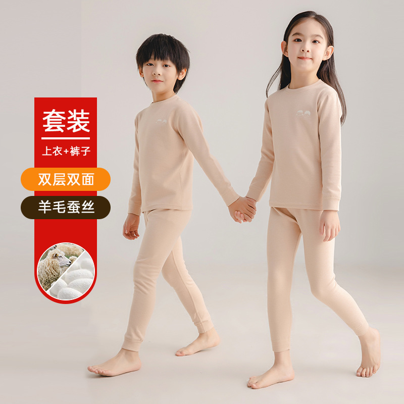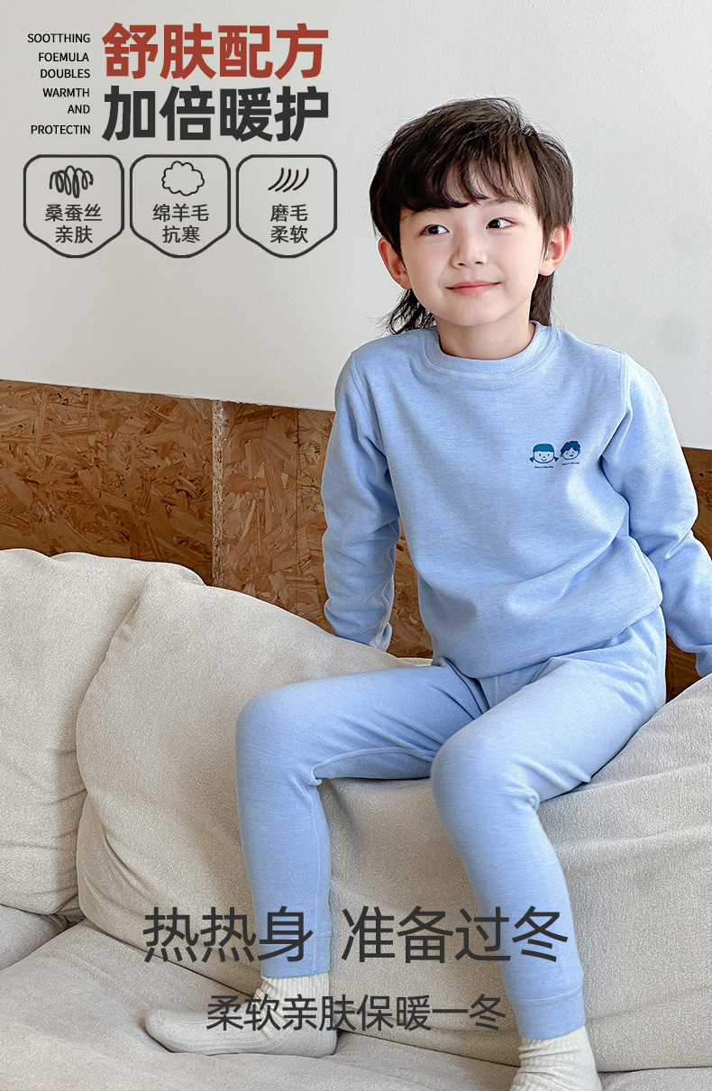 어린이 열 속옷 세트 가을과 겨울 양모 뽕나무 실크 남성과 여성의 바지 파자마 기모 가을 옷 가을 바지