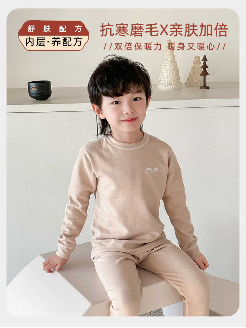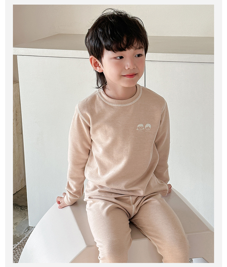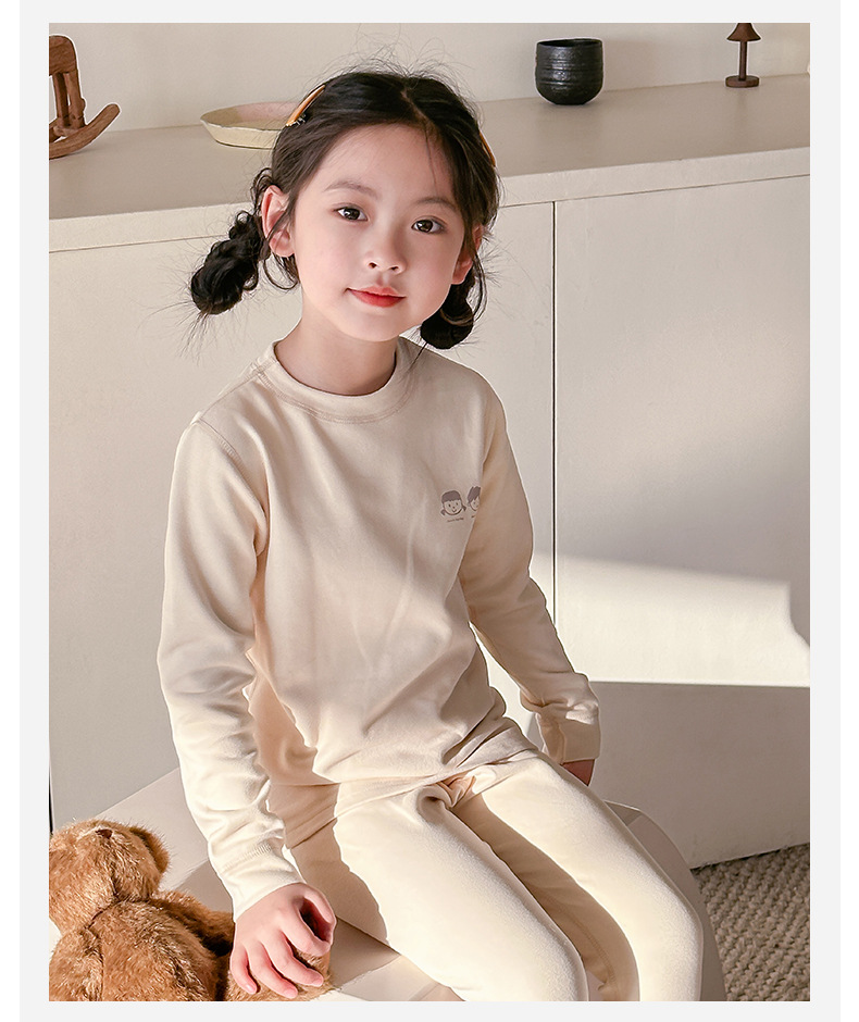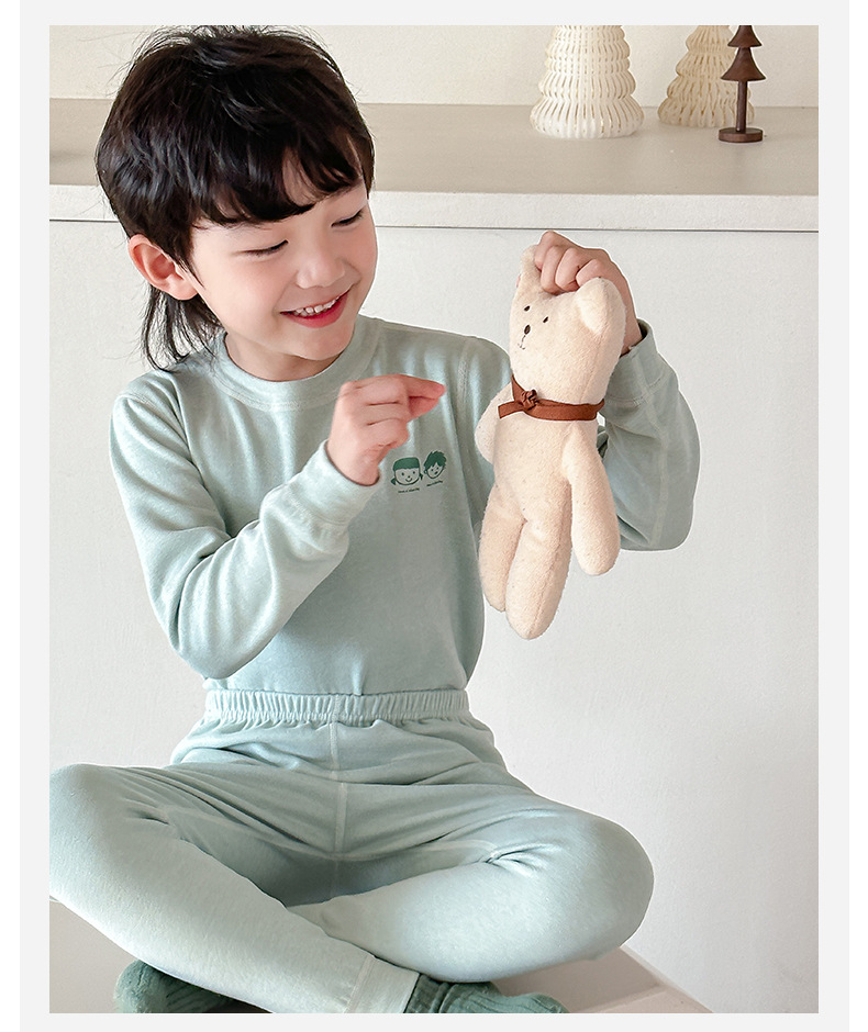 어린이 열 속옷 세트 가을과 겨울 양모 뽕나무 실크 남성과 여성의 바지 파자마 기모 가을 옷 가을 바지스토어 가기
