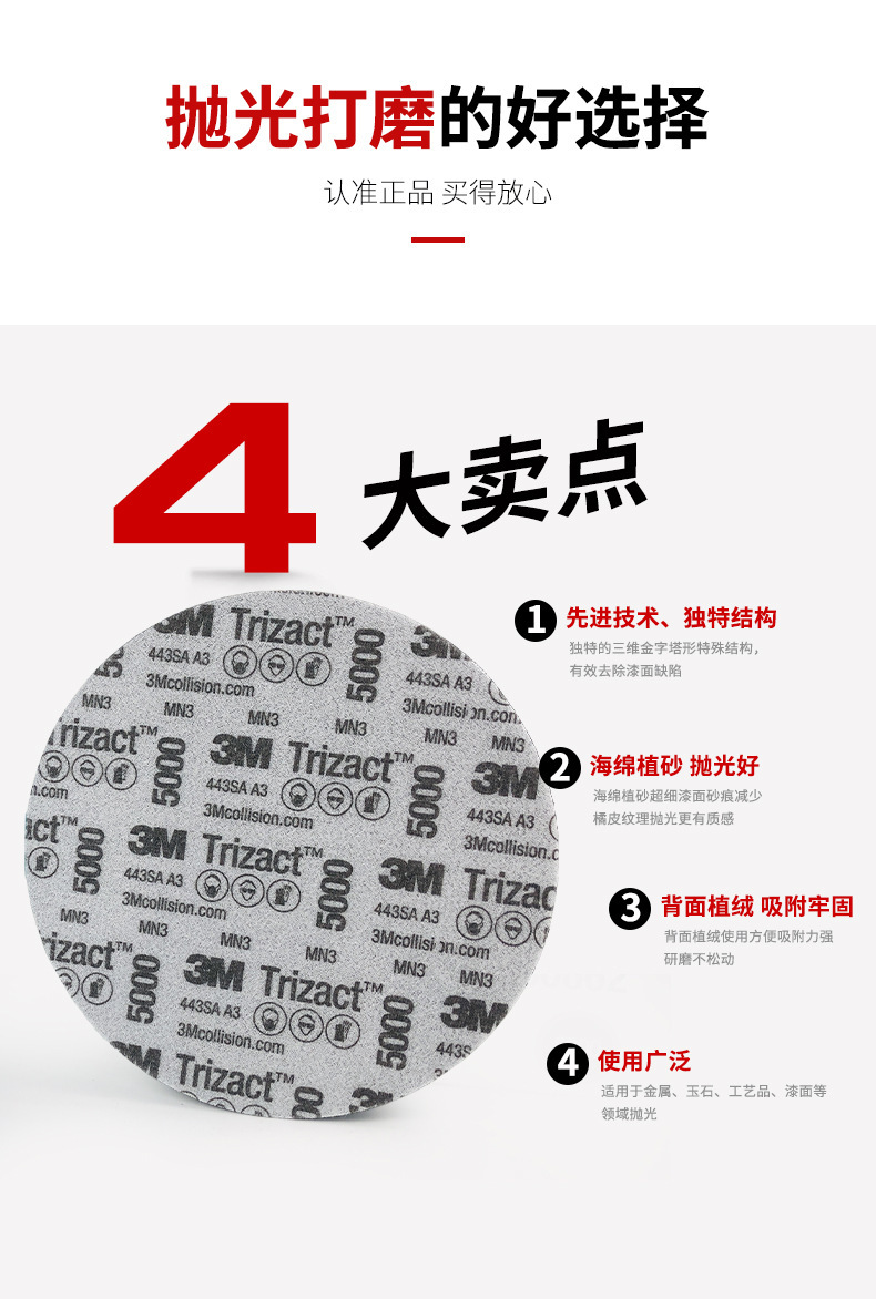정품 3M 사포 30662 피라미드 뷰티 샌드 디스크 6inch 자동차 수리 연마 사포 P5000 초미세