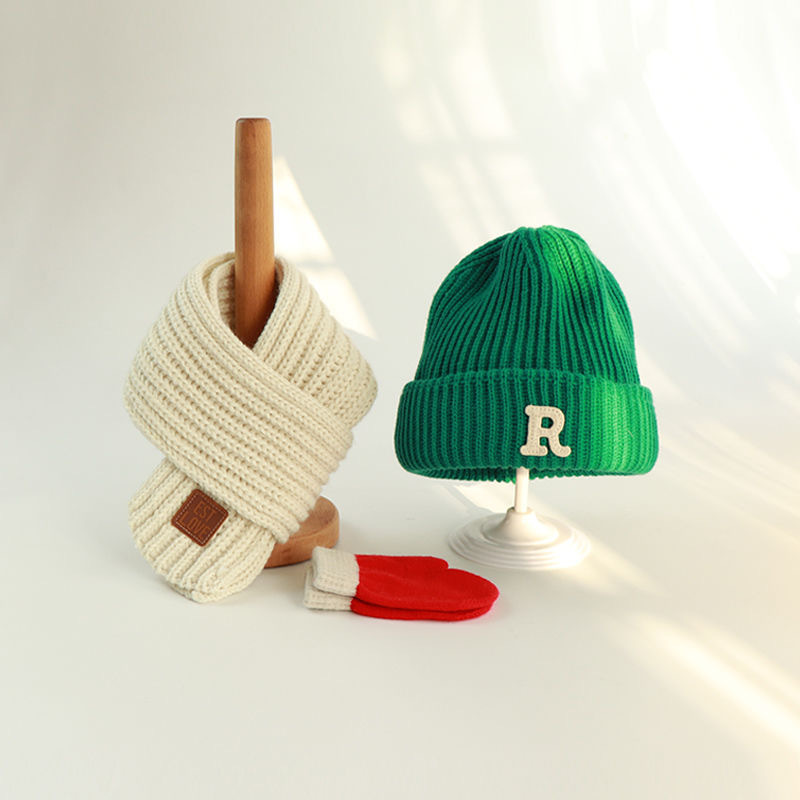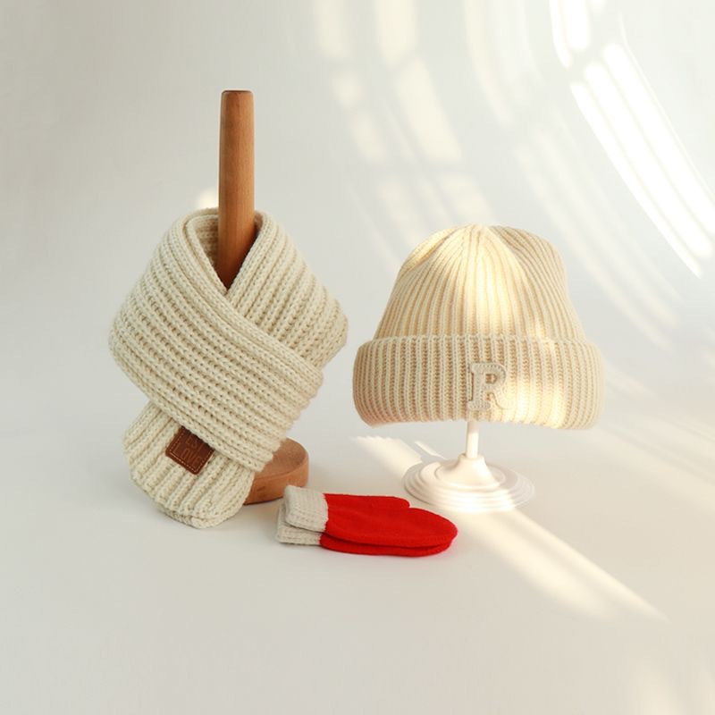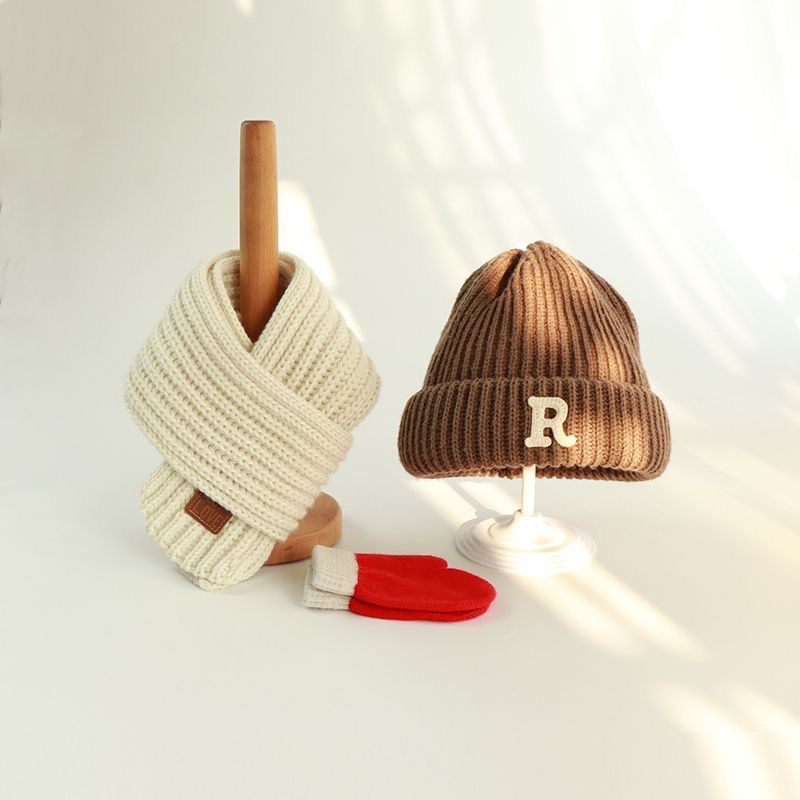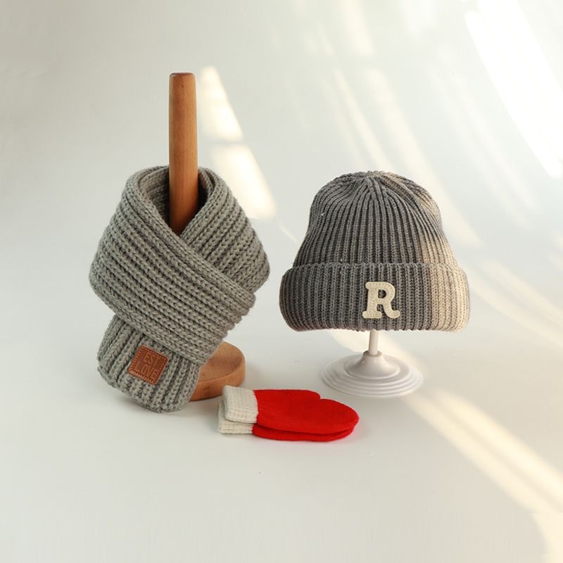 • R자 모자 회색 + 회색 스카프 + 4-12세 권장 + 프리사이즈