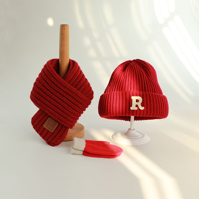 • R자 모자 와인색 + 와인색 스카프 + 4-12세 권장 + 프리사이즈