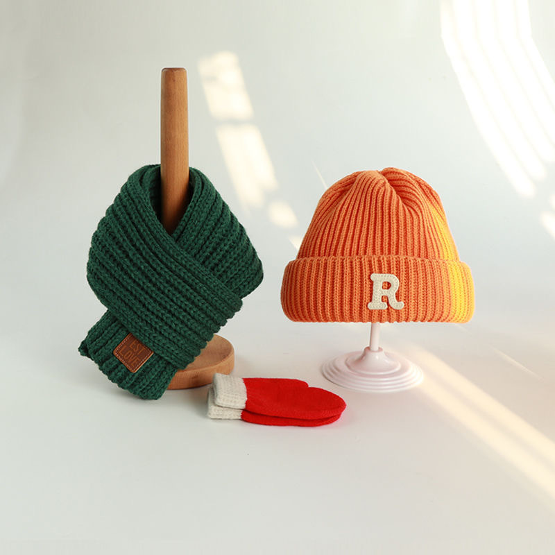 • R자 모자 오렌지색 + 녹색 스카프 + 4-12세 권장 + 프리사이즈