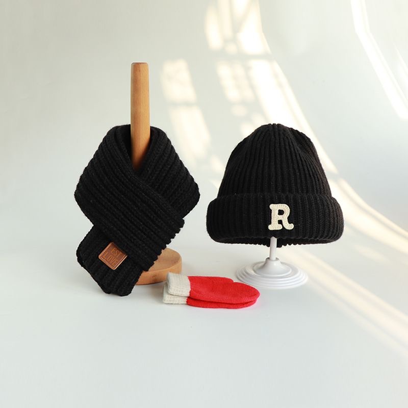 • R자 모자 검정색 + 검정 스카프 + 4-12세 권장 + 프리사이즈