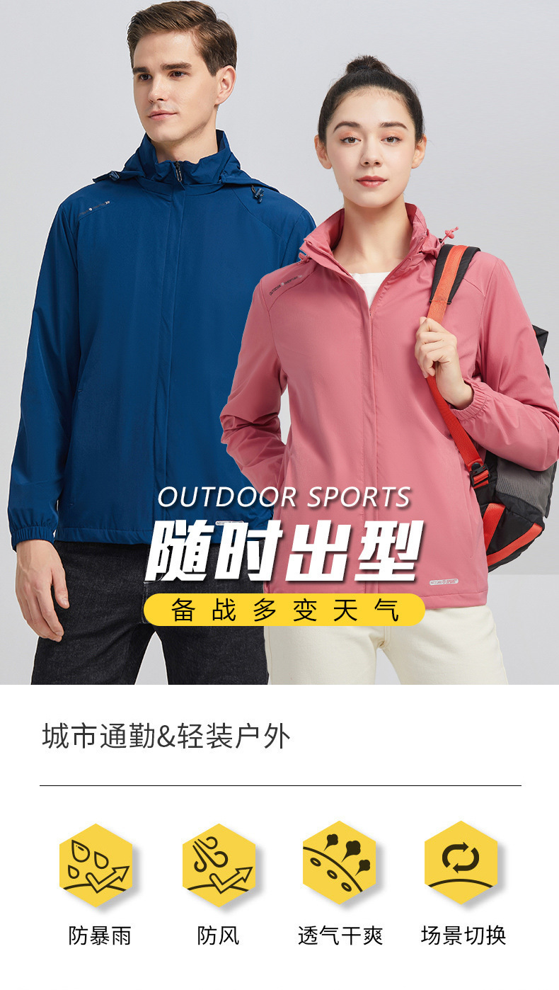 남성과 여성을위한 봄과 가을 야외 러시 워크 의류 남성용 방풍 방수 낚시 세트 경량 통기성 착용 방지 등산 세트