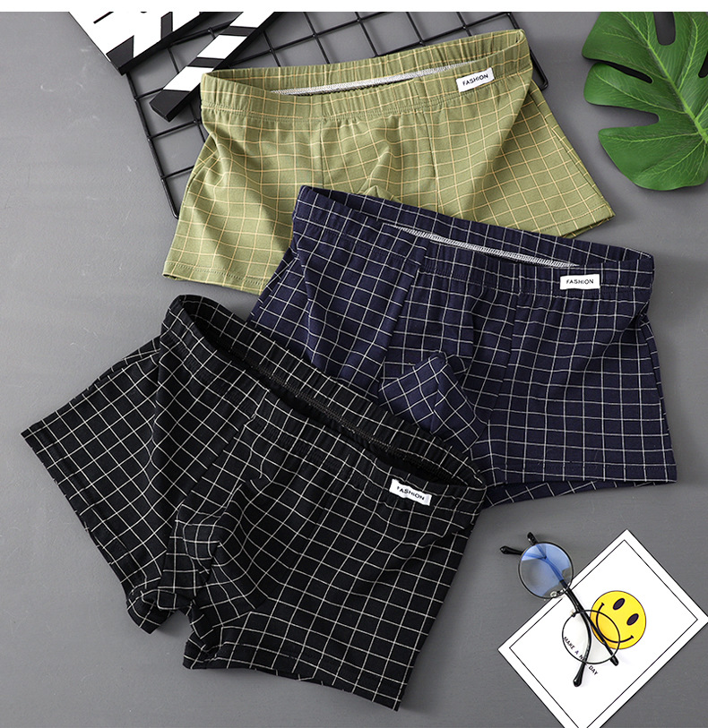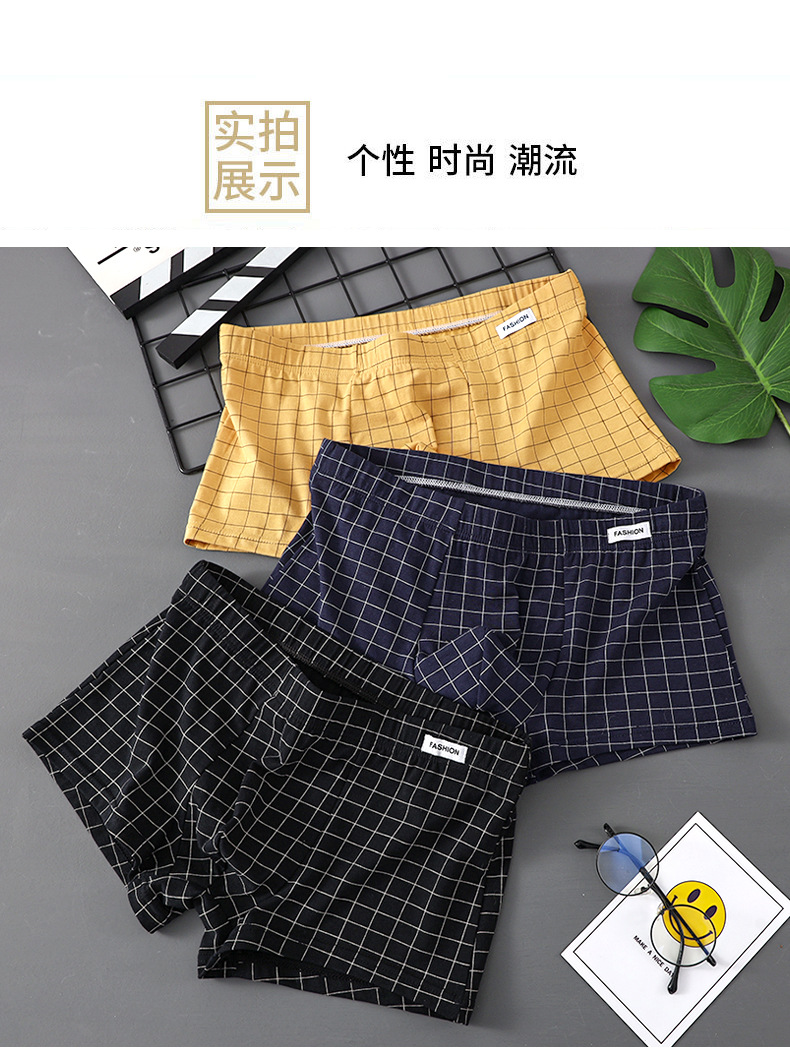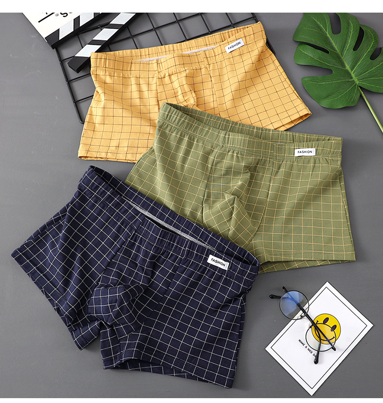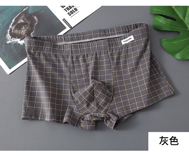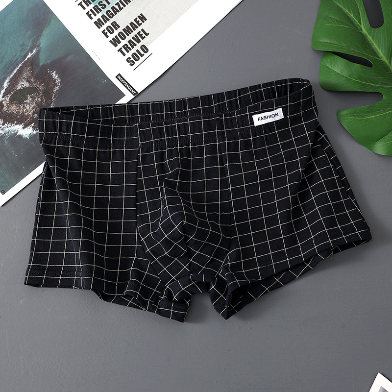 공장 도매 격자 무늬 남성용 속옷 남성용 면화 복서 반바지 어린 소년 복서 반바지 머리 바지 세대 머리카락스토어 가기